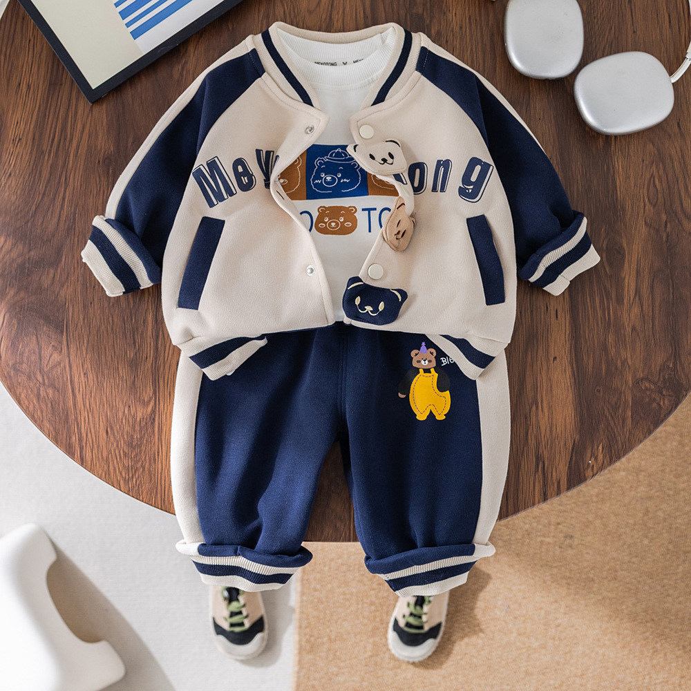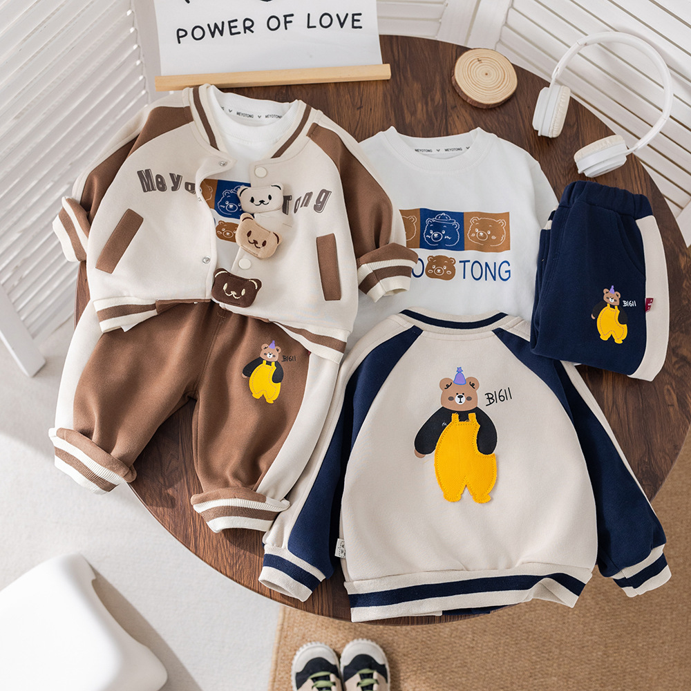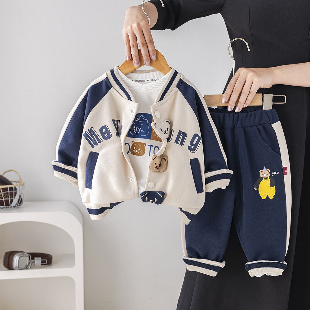 아기 2025 새로운 아기 아동복 봄, 가을 스포츠 의류 유행 소년 세 곰 야구 유니폼 3 피스 세트