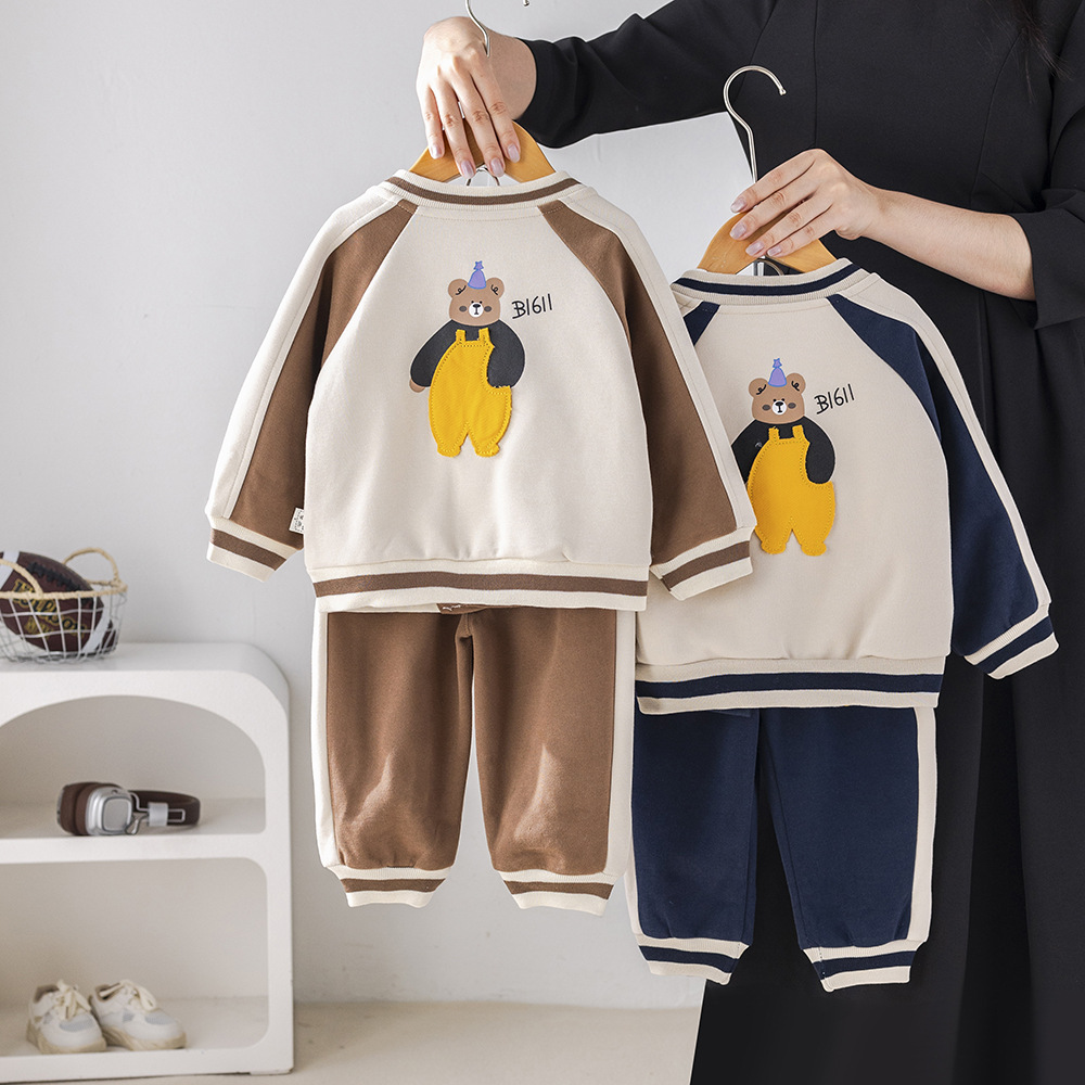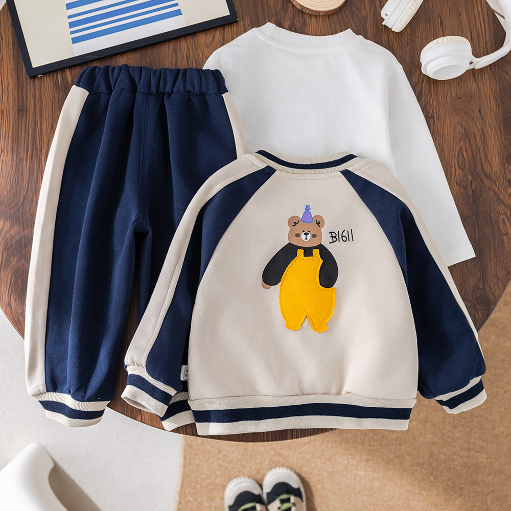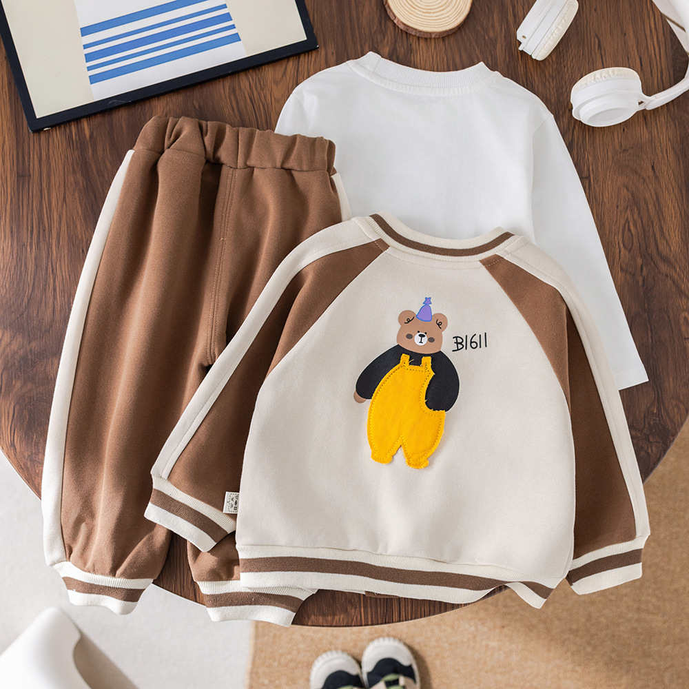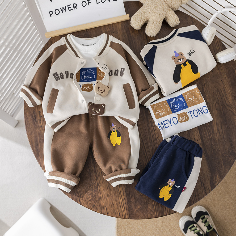 아기 2025 새로운 아기 아동복 봄, 가을 스포츠 의류 유행 소년 세 곰 야구 유니폼 3 피스 세트