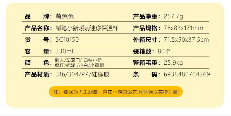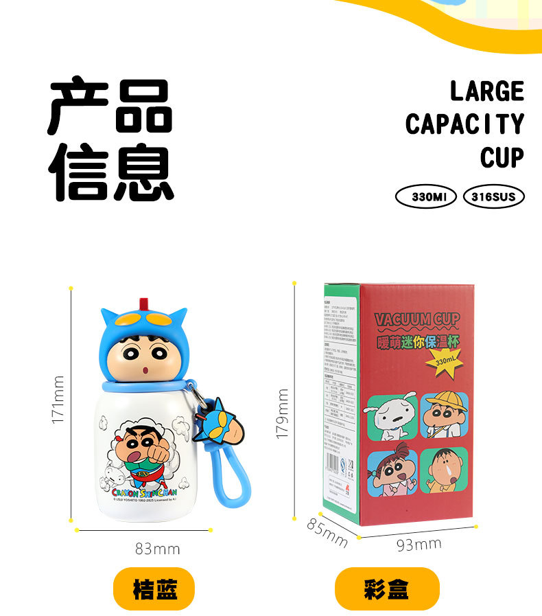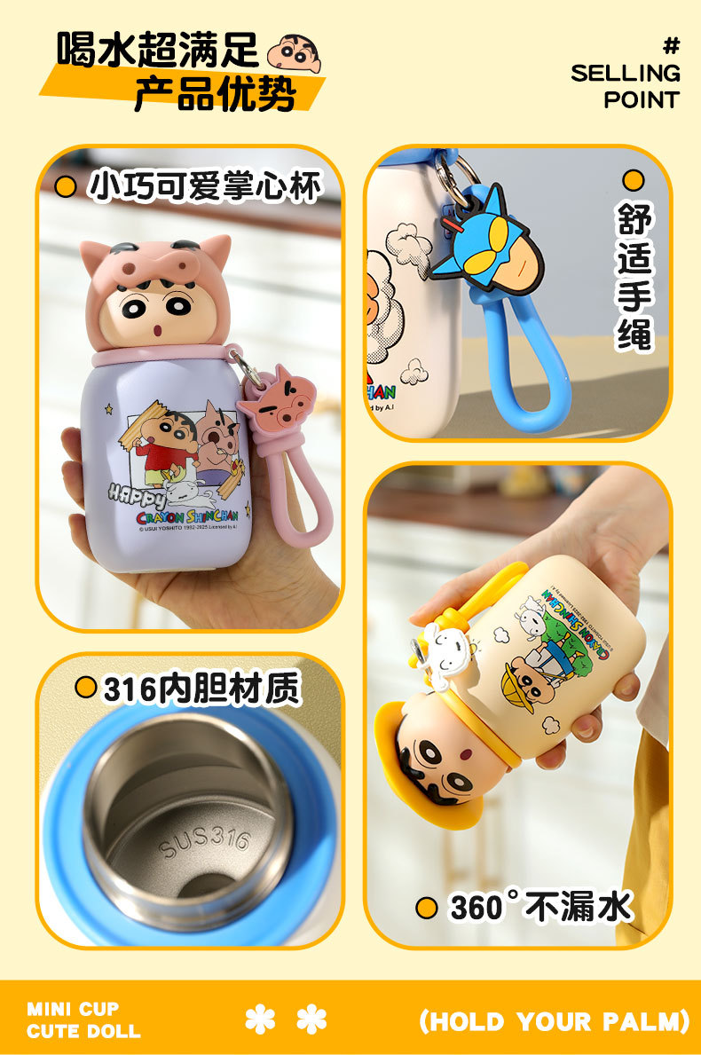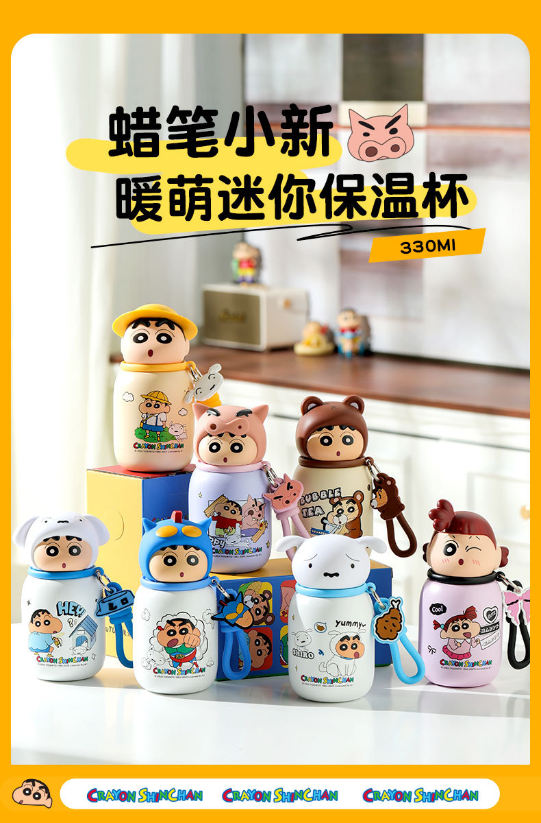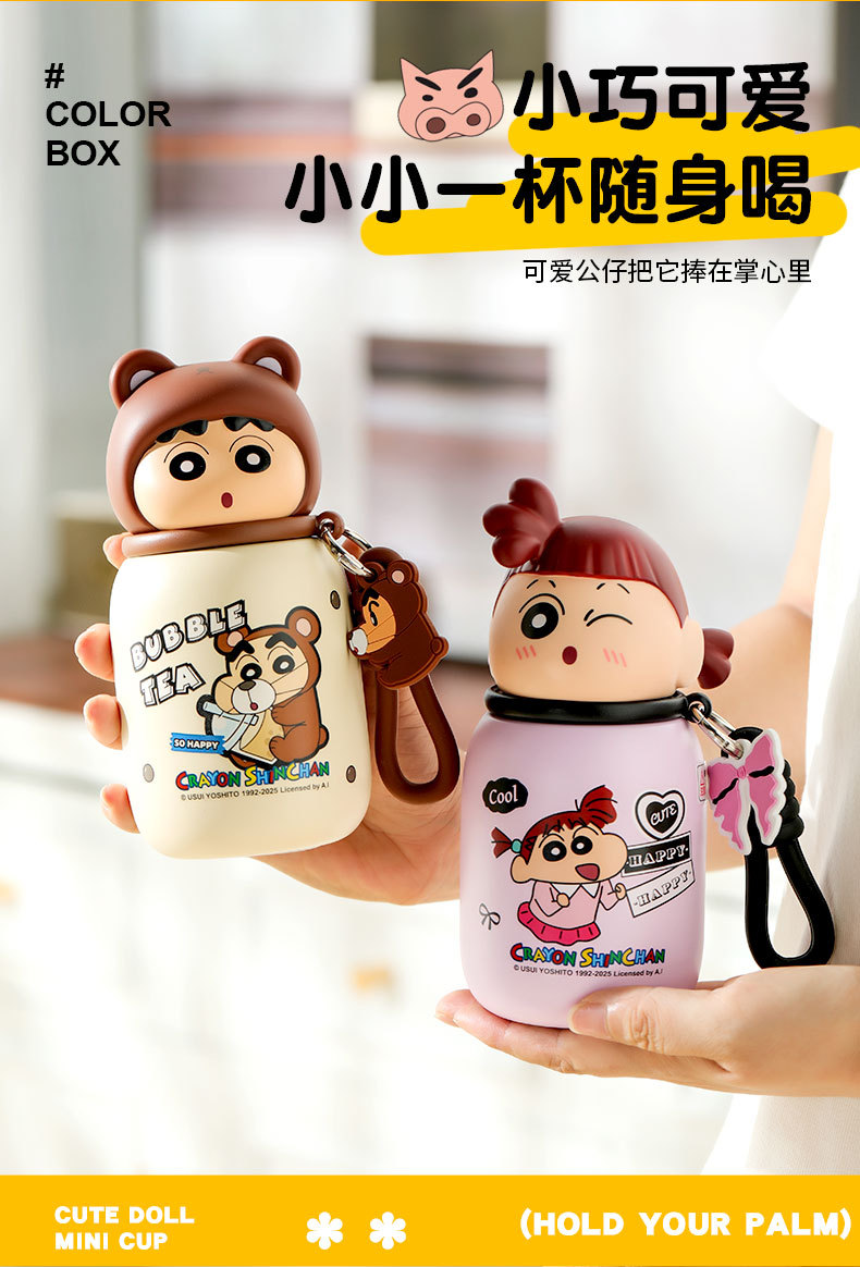 새로운 크레용 신짱 미니 보온병 컵 고급스러운 330ml 컵 귀여운 미니 포켓 컵 드롭 배송