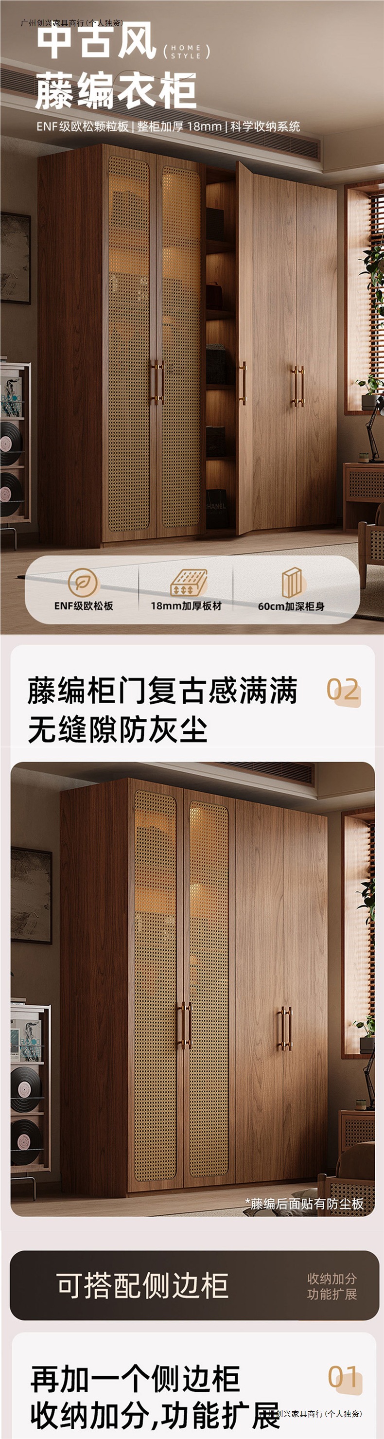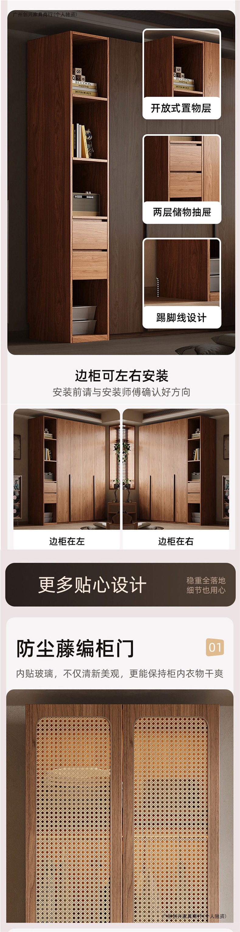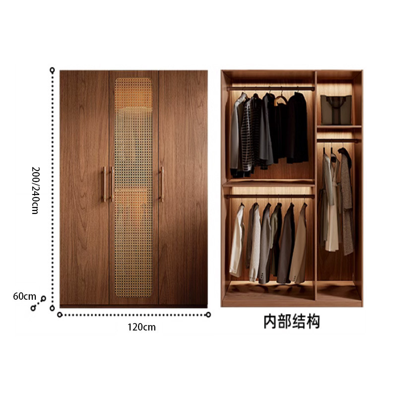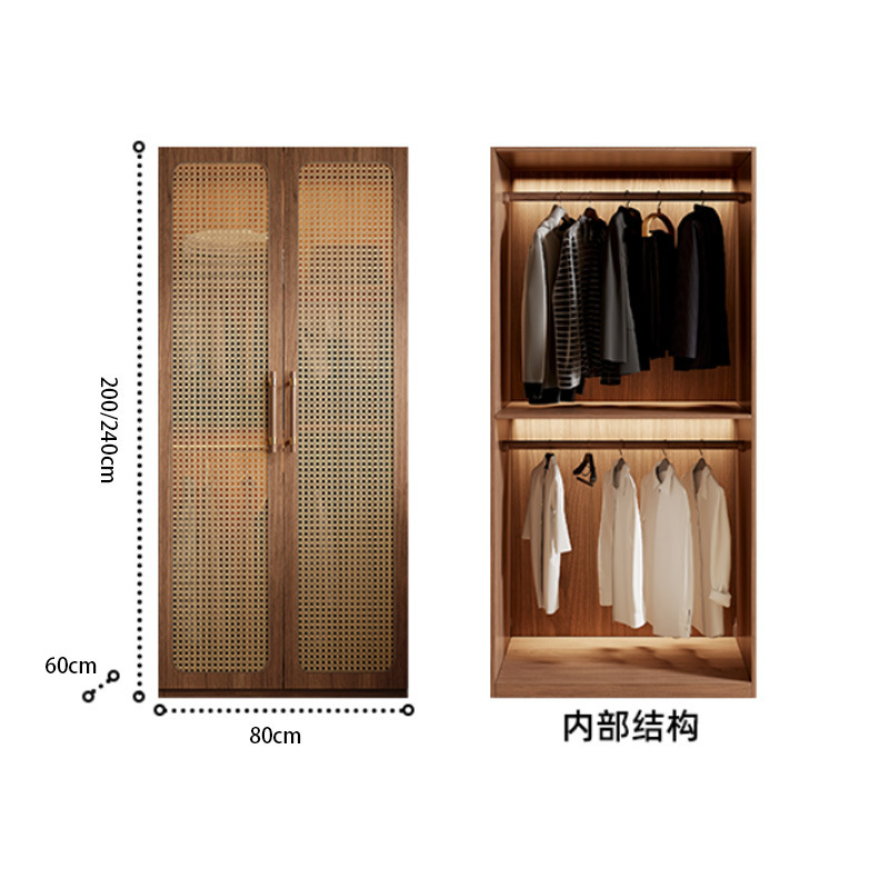 복고풍 등나무 원 도어 옷장 홈 침실 보관 캐비닛 현대적인 간단한 단단한 나무 옷장스토어 가기