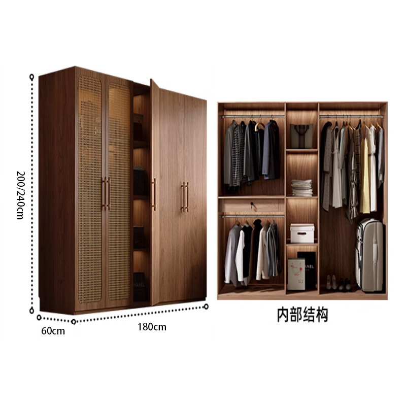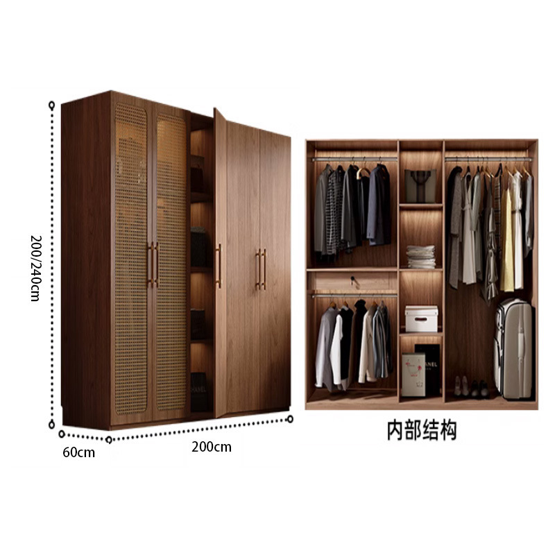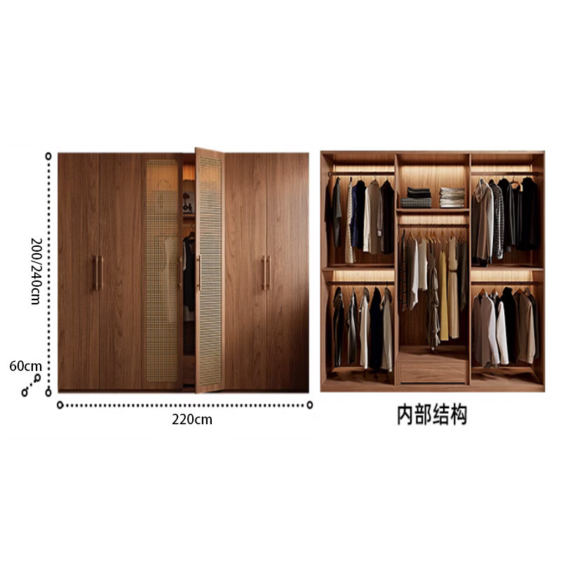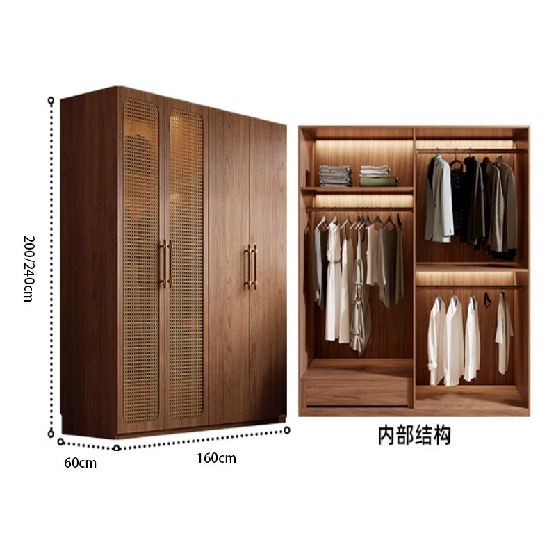 복고풍 등나무 원 도어 옷장 홈 침실 보관 캐비닛 현대적인 간단한 단단한 나무 옷장