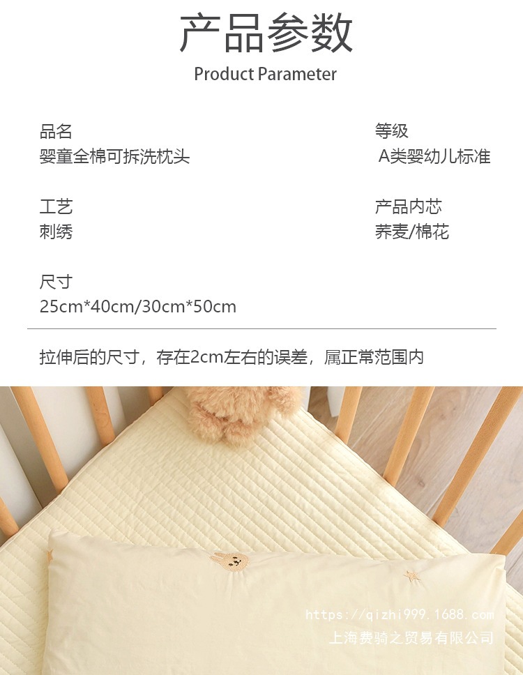 신생아 베개 순면 아기 면 베개 유치원 어린이 낮잠 통기성 메밀 베개 분리형 및 세탁 가능한 베개 커버스토어 가기