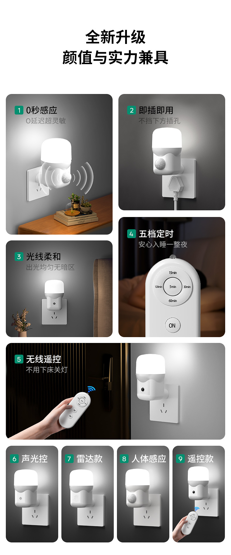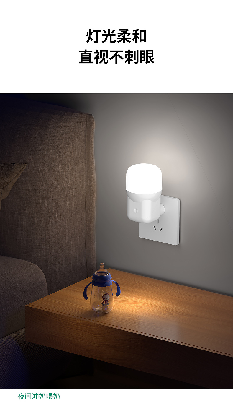 플러그인 LED 센서 야간 조명 침실 머리맡 램프 아기 수유 야간 부드러운 조명 수면 노인 야간 조명