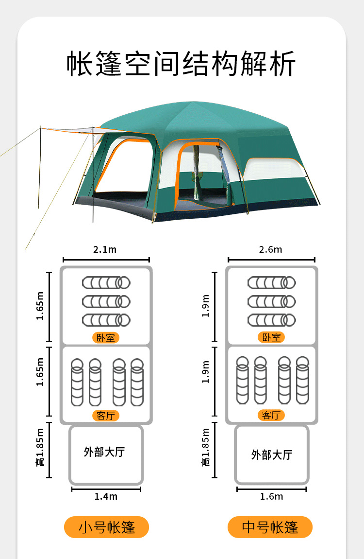 국경 간 인기 판매 캠핑 텐트 야외 3-4인용 2실 1거실 5-8인용 2실 10개 텐트 제조업체 도매 텐트스토어 가기