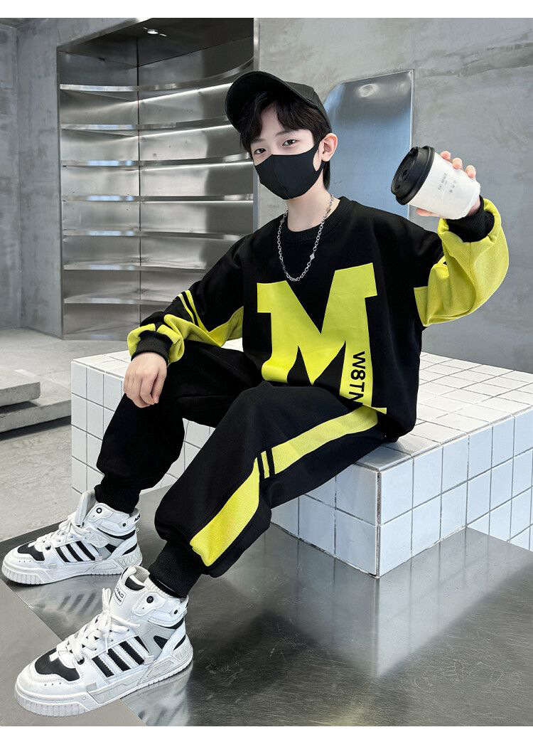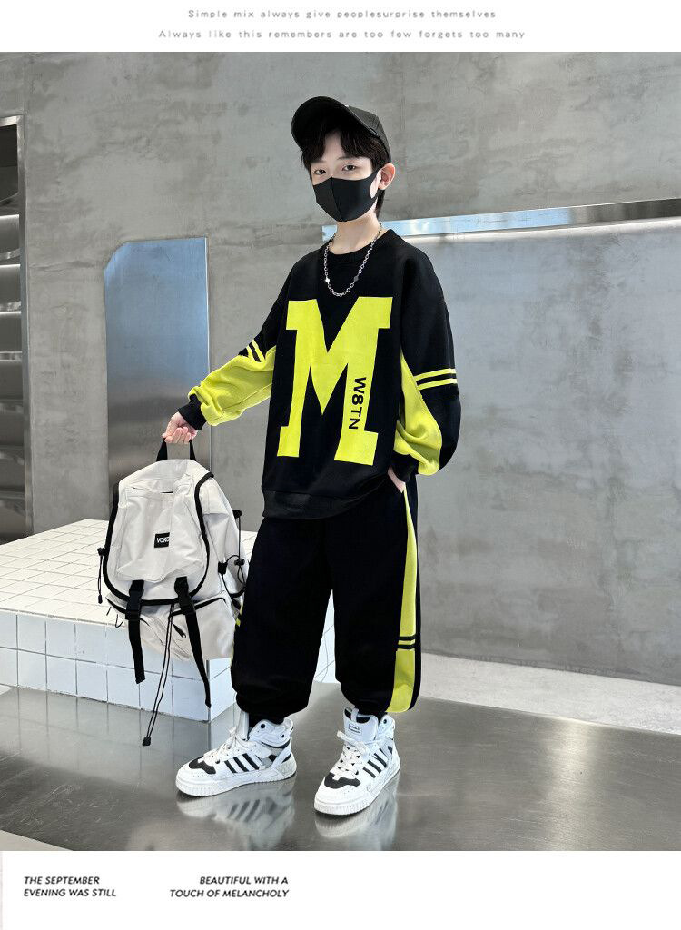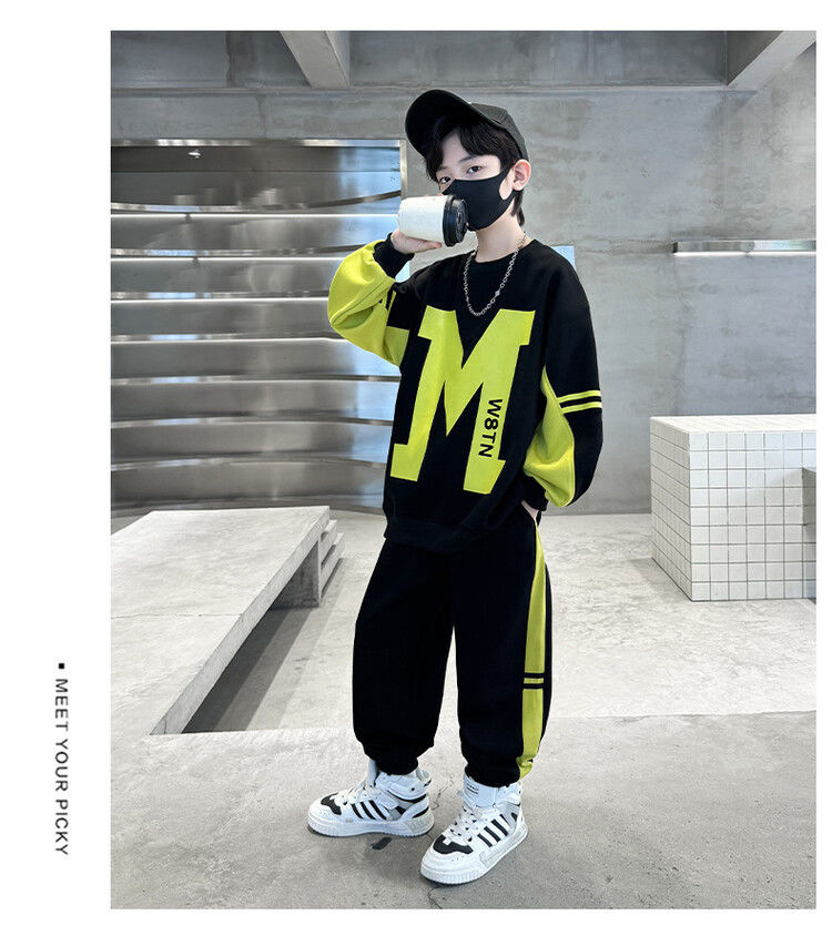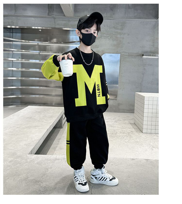 소년 가을 정장 2025 새로운 스타일 중대형 아동 봄, 가을 옷 유행 소년 스포츠 운동복 투피스 세트