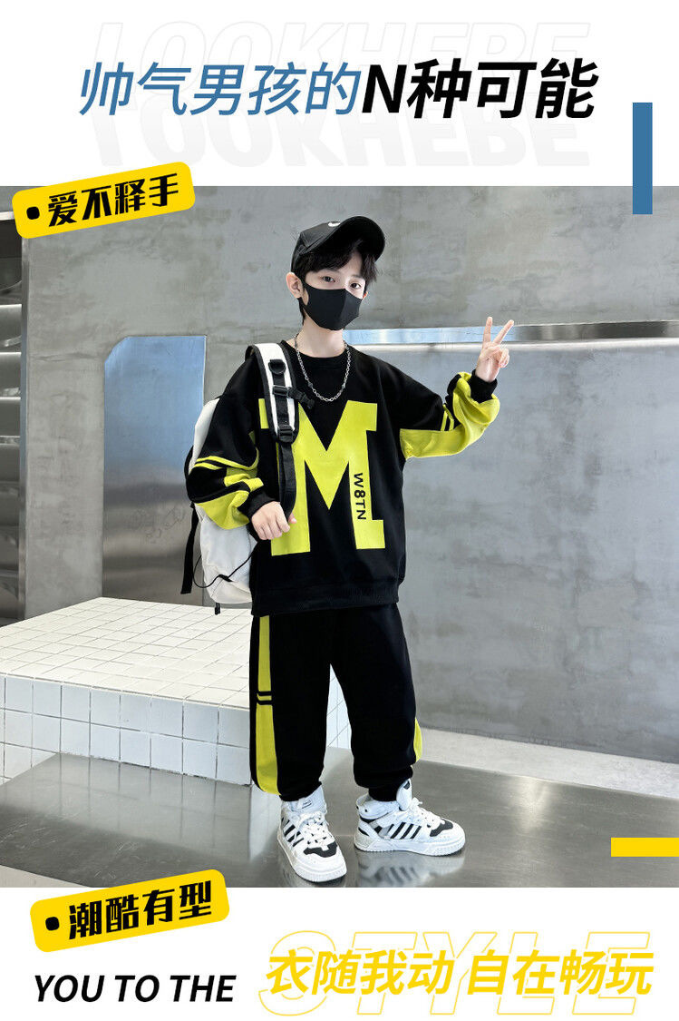 소년 가을 정장 2025 새로운 스타일 중대형 아동 봄, 가을 옷 유행 소년 스포츠 운동복 투피스 세트스토어 가기