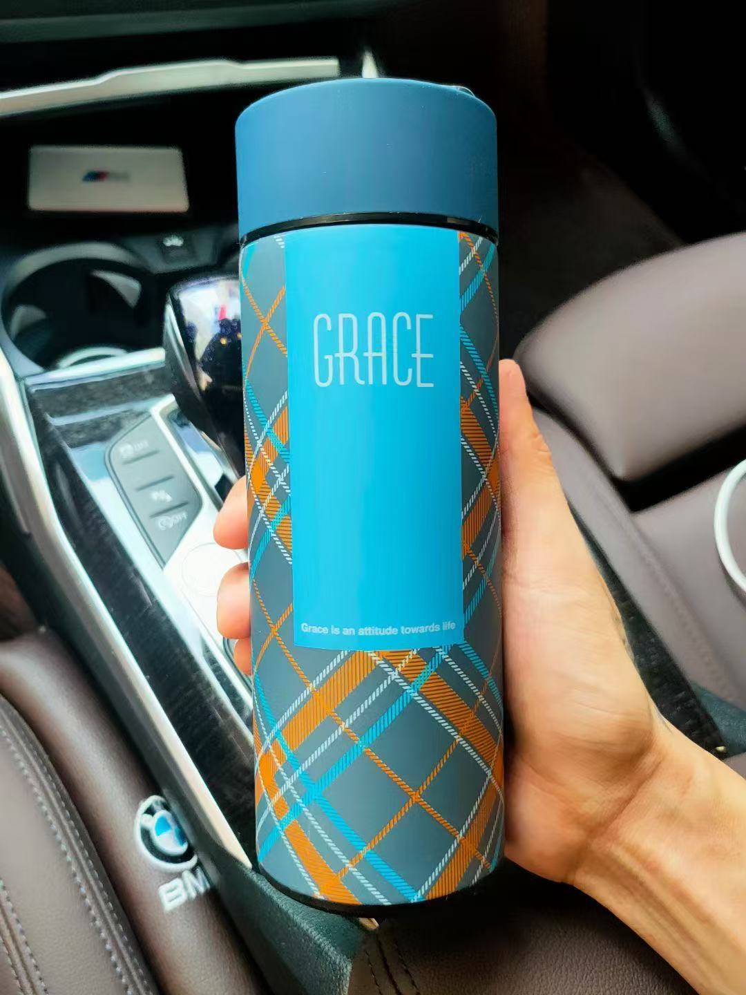 직접 공급되는 격자 무늬 진공 직선 스테인레스 스틸 비즈니스 보온병 컵 자동차 학생 물컵 선물 컵 도매 가능