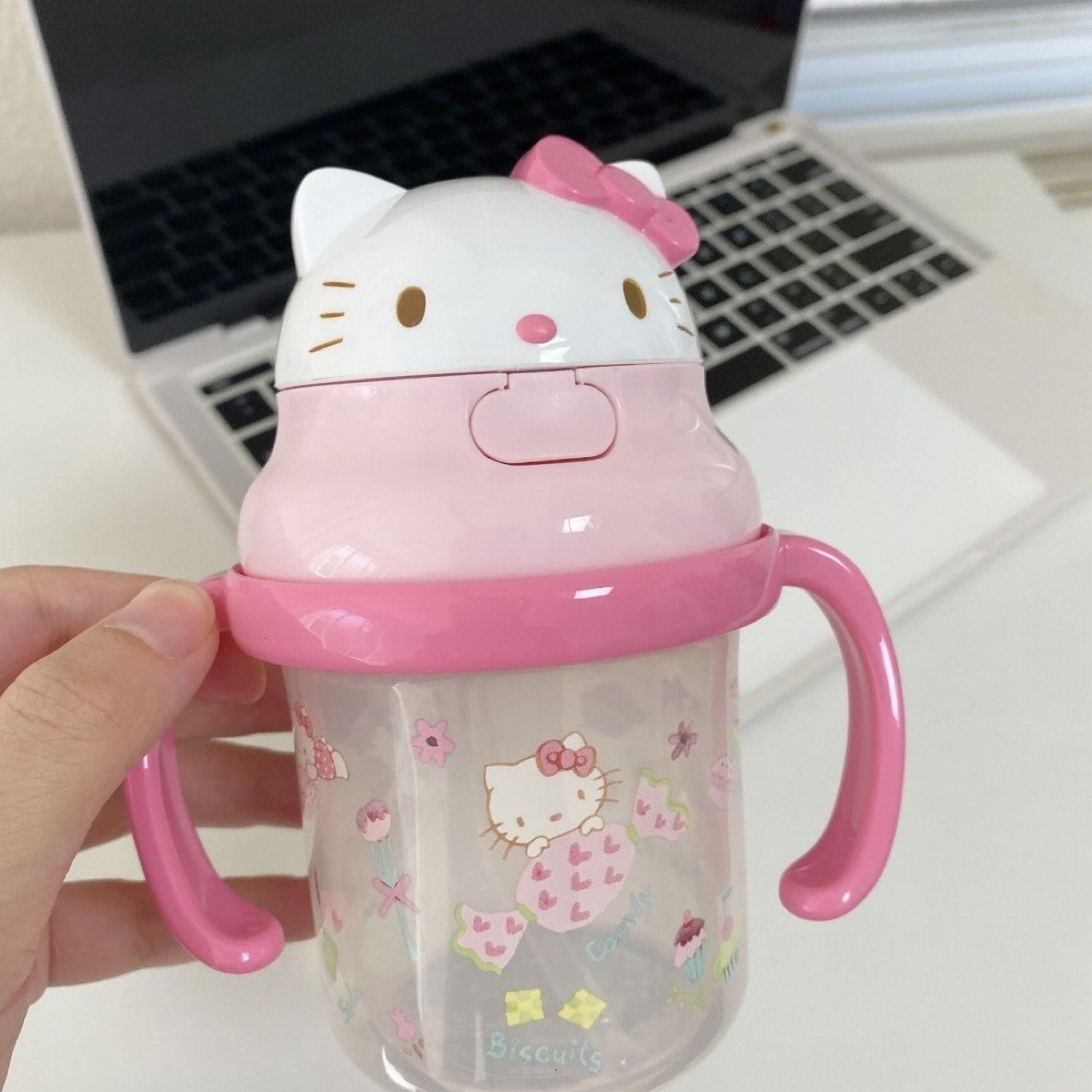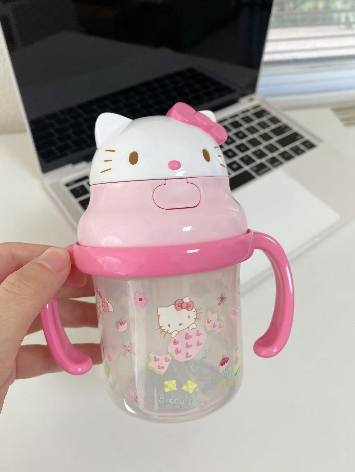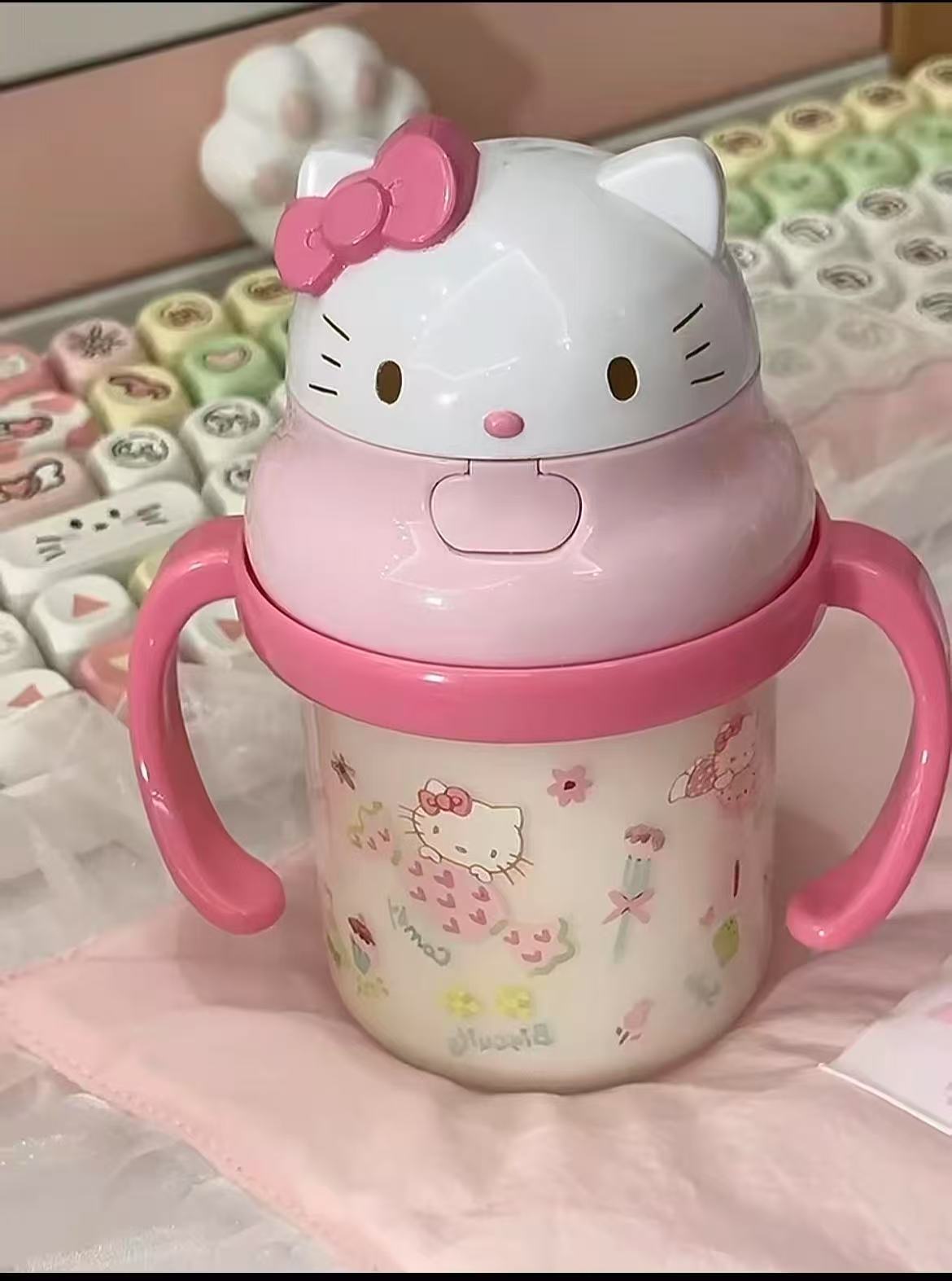 • 핑크색 손잡이 키티 컵