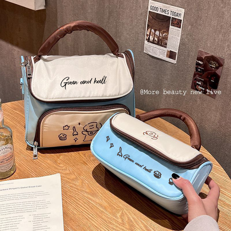 D6H 새로운 휴대용 화장품 가방 대용량 휴대용 귀여운 외출 화장품 보관 가방
