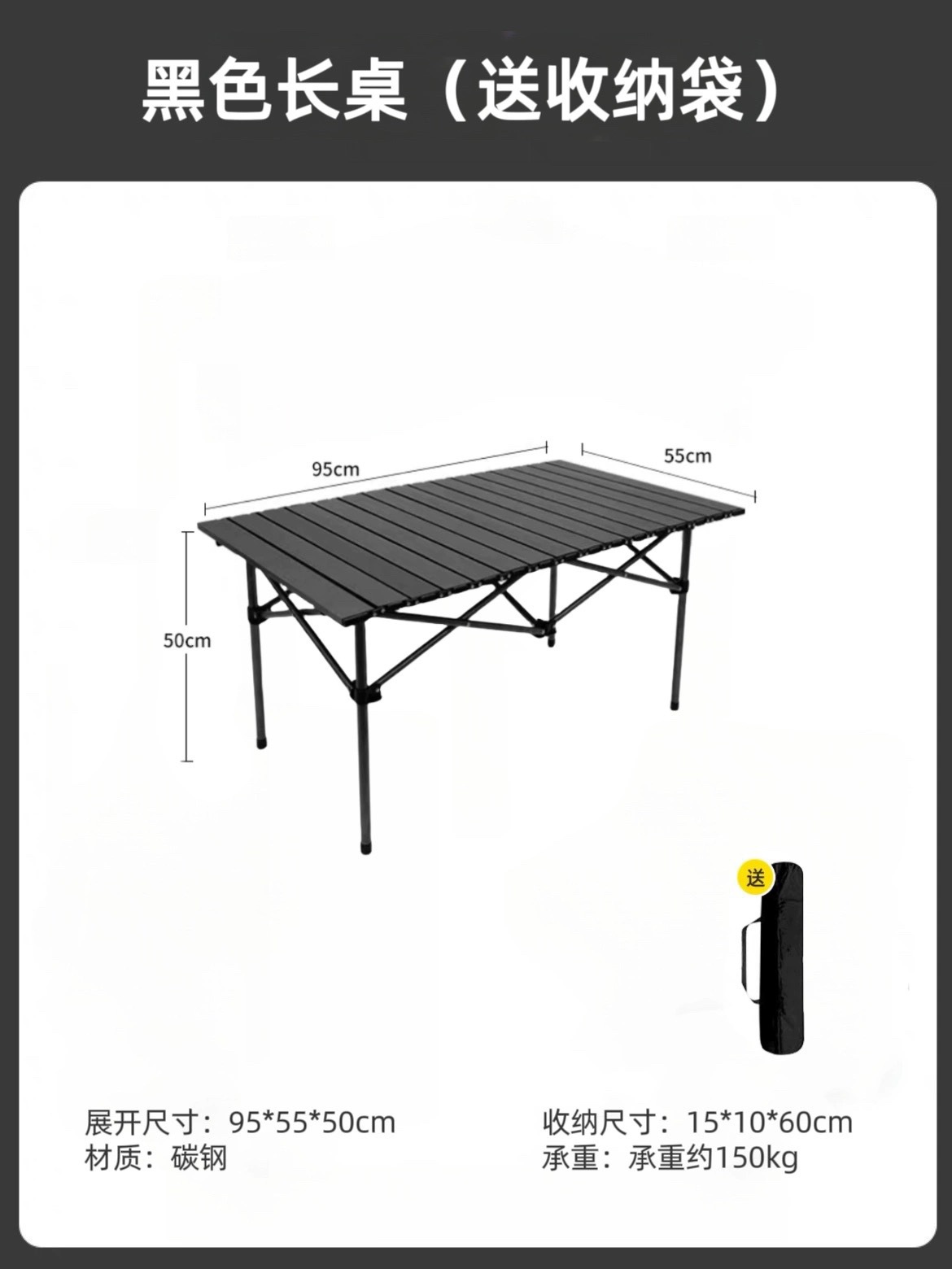 • [업그레이드 및 강화] 95cm 블랙 롱 테이블 (수납 가방 포함)