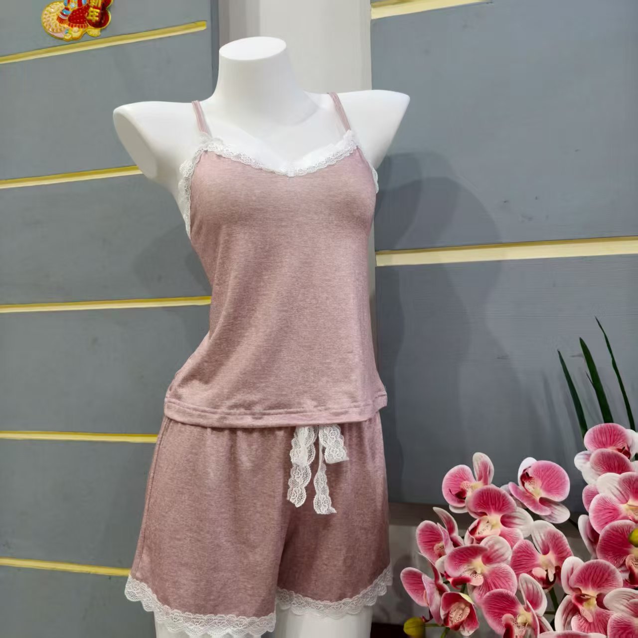 유럽과 미국의 여름 섹시한 잠옷 세트, 여성용 여름 민소매 섹시한 끈 팬티 투피스 세트, 섹시한 잠옷스토어 가기