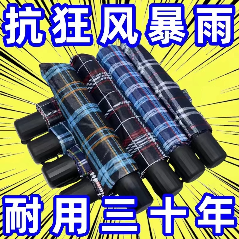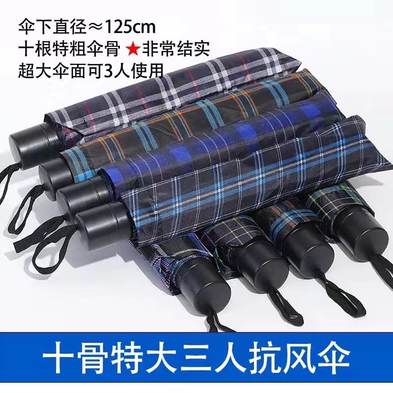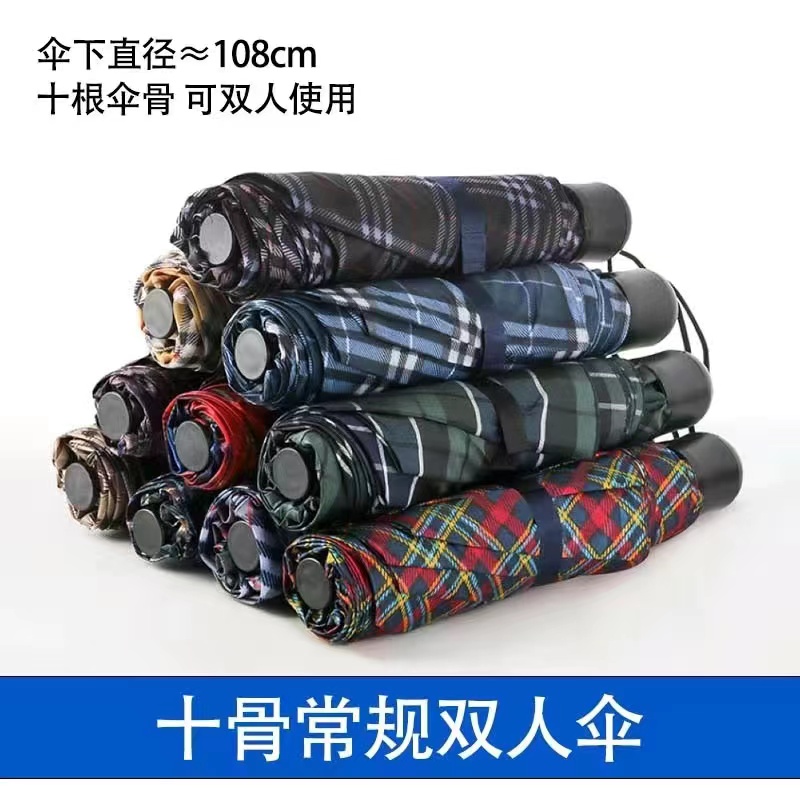 10본 강화 이중 접이식 우산 가정용 초대형 격자 무늬 우산 비즈니스 선물 우산 내구성이 뛰어난 수동 구리