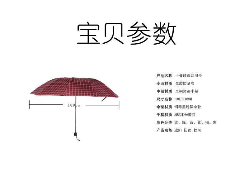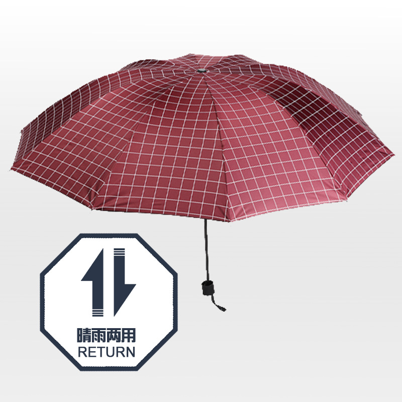 체크무늬 우산 10본 더블 대형 우산 비 또는 빛 강화 비닐 복고풍 자외선 차단제 태양 우산 파라솔