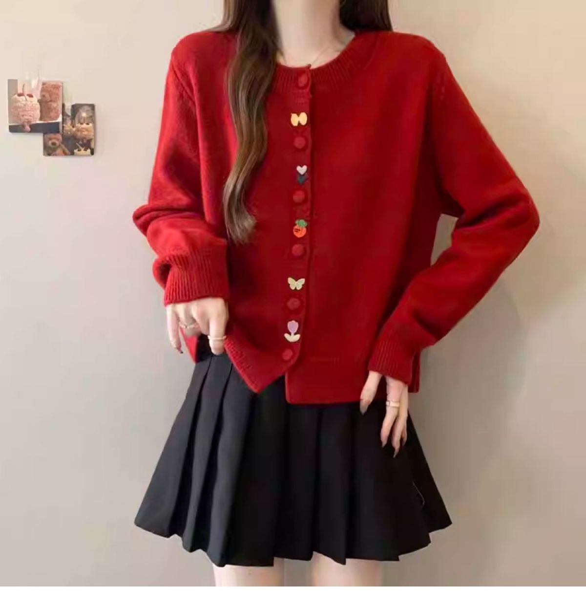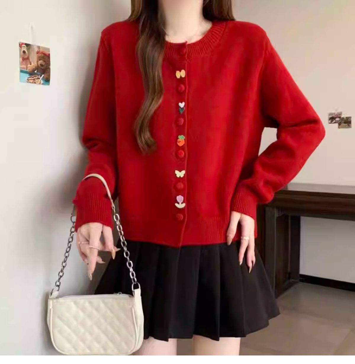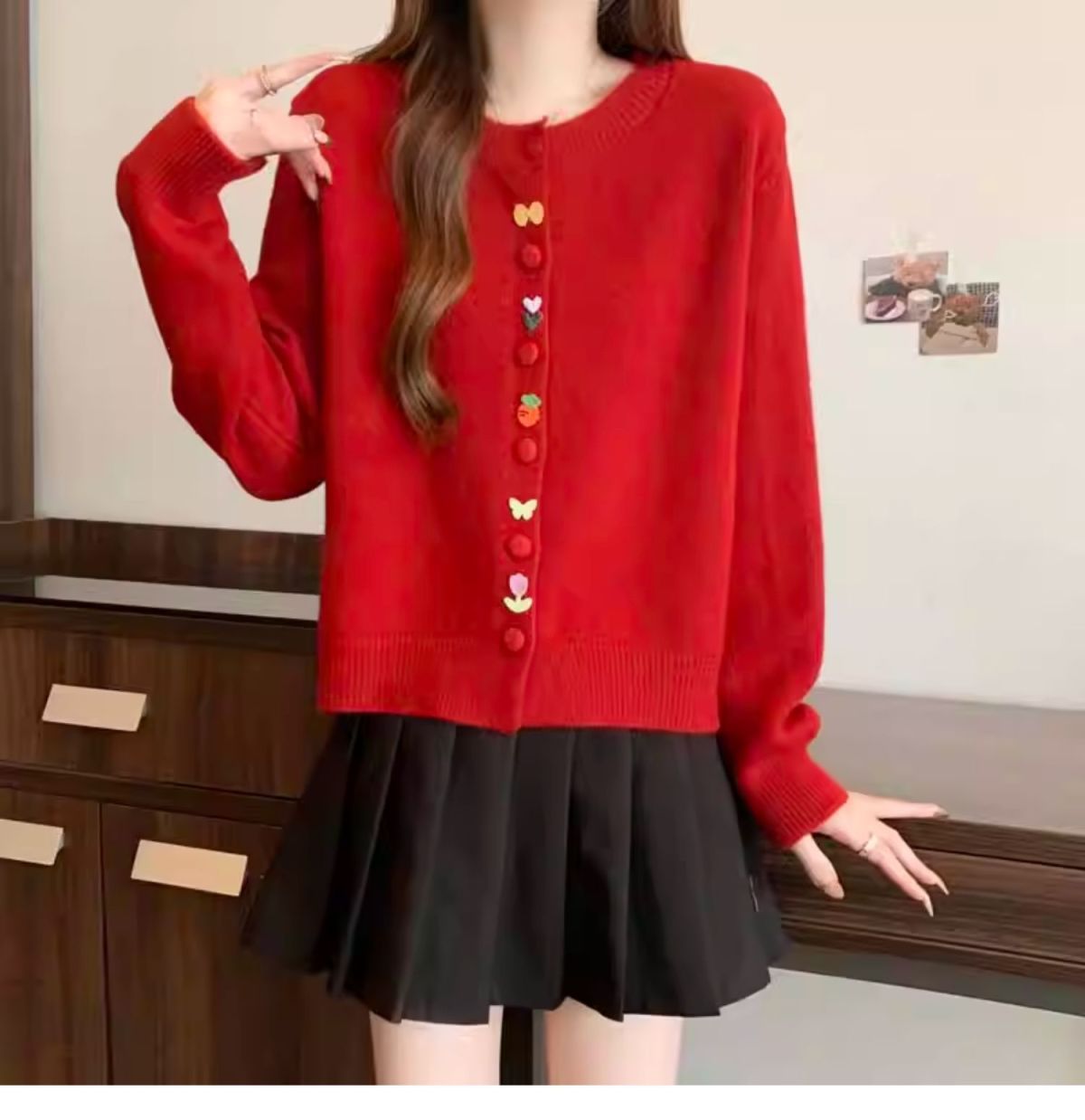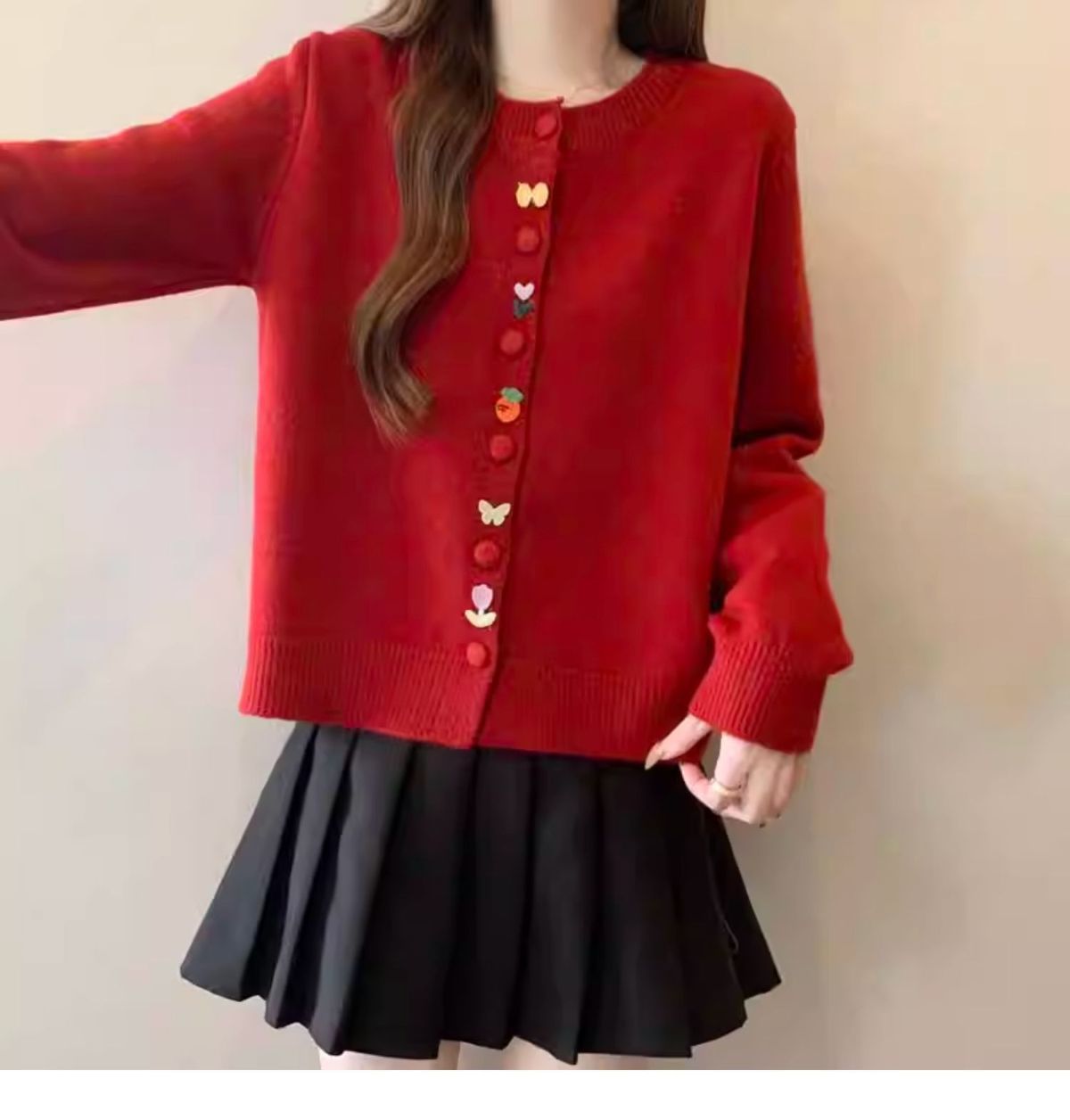 2025春季新款女装春装本命年红色毛衣针织开衫外套女春秋上衣洋气스토어 가기