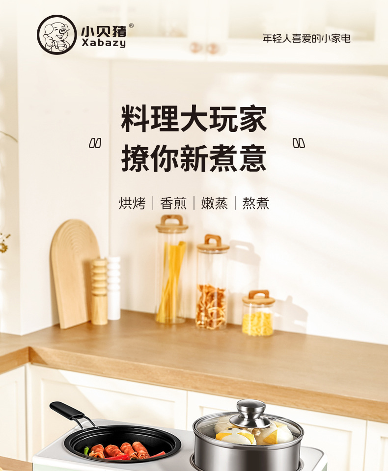 게으른 기숙사 4-in-1 아침 식사 기계 커피 스팀, 구이, 튀김 및 요리 올인원 냄비 다기능 가정용 소형 미니 오븐