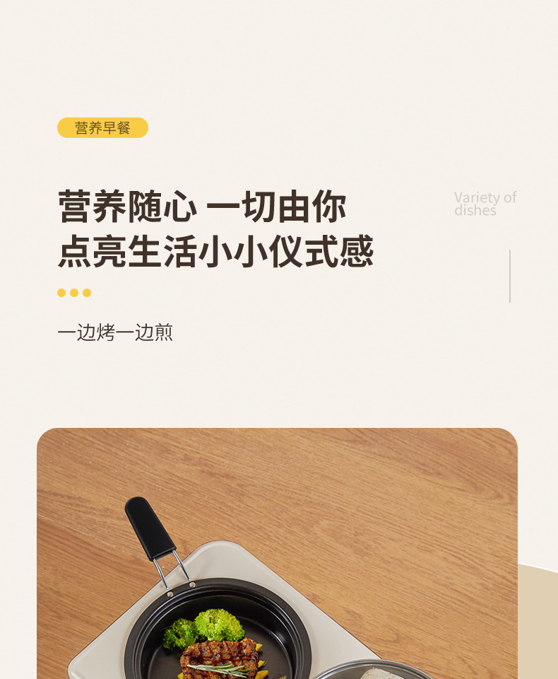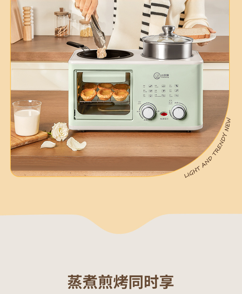 • 튀김, 요리, 구이가 가능한 3-in-1 아침 식사 기계(튀김 팬 포함)
