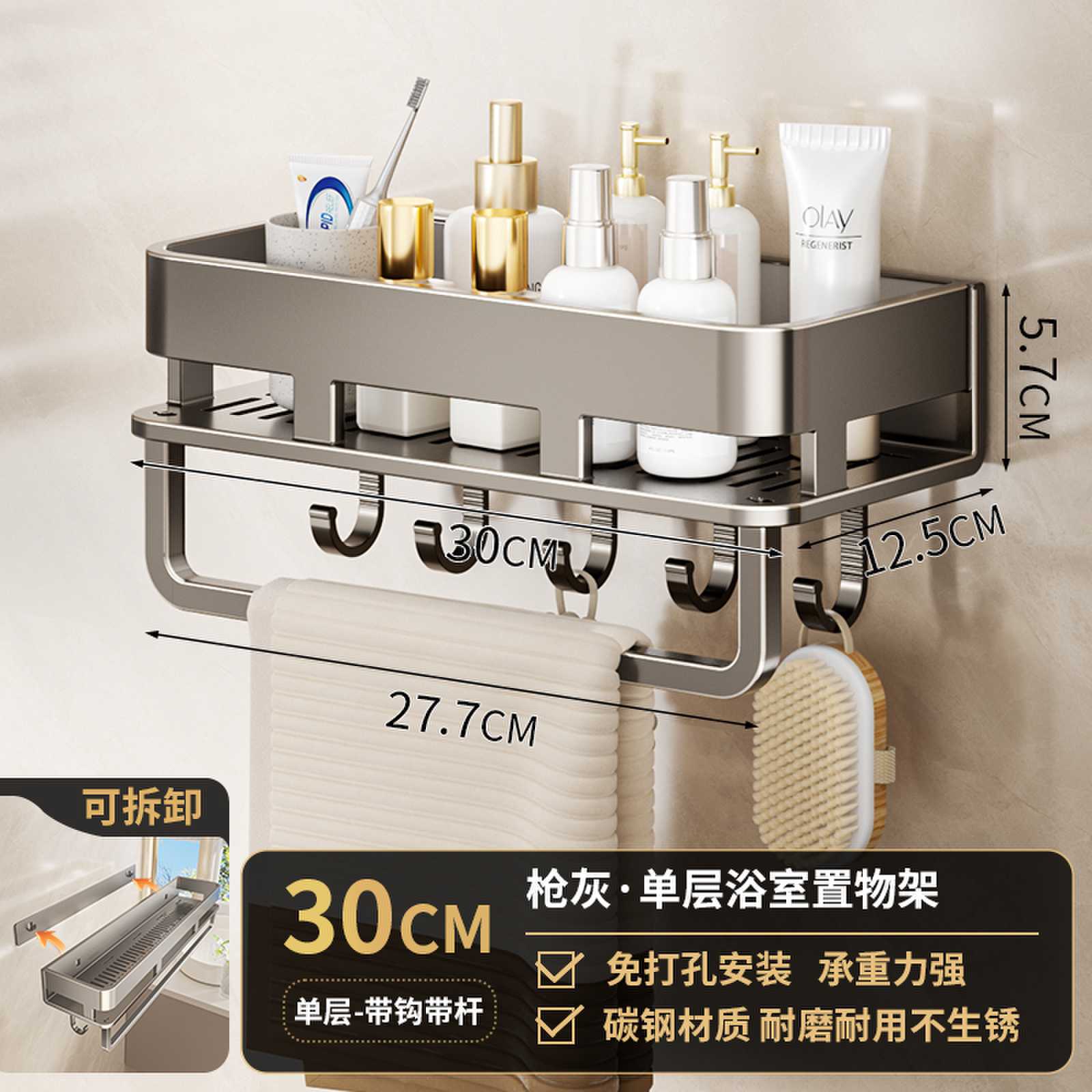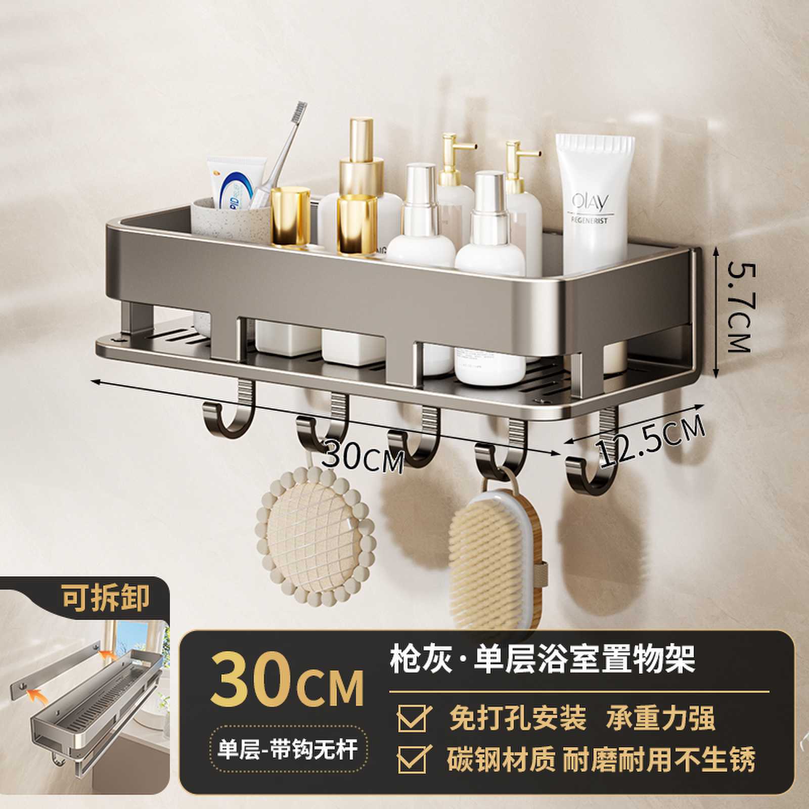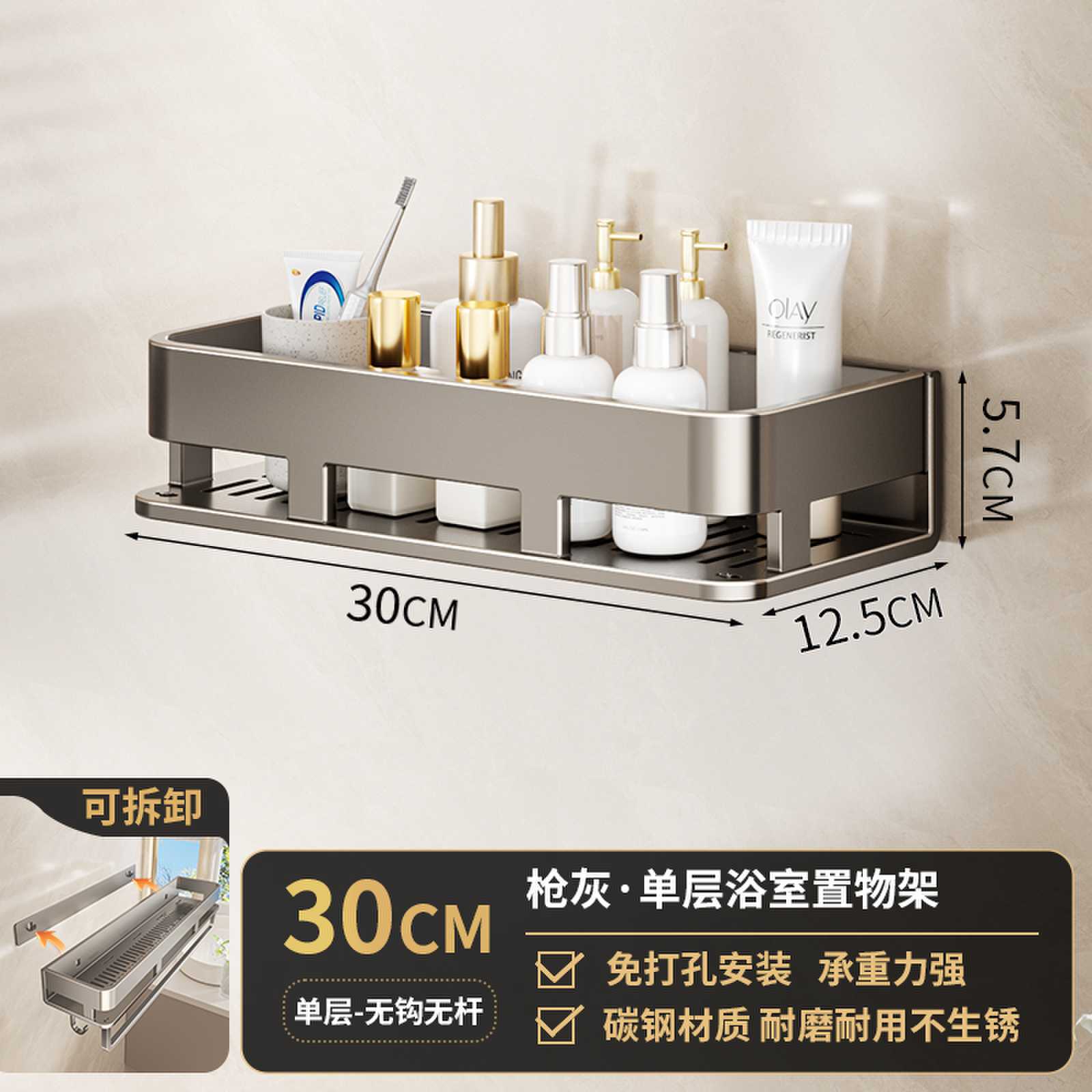 • 후크가 있는 30CM 단일 레이어 분리형 건 그레이 욕실 보관함