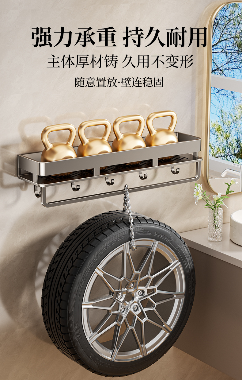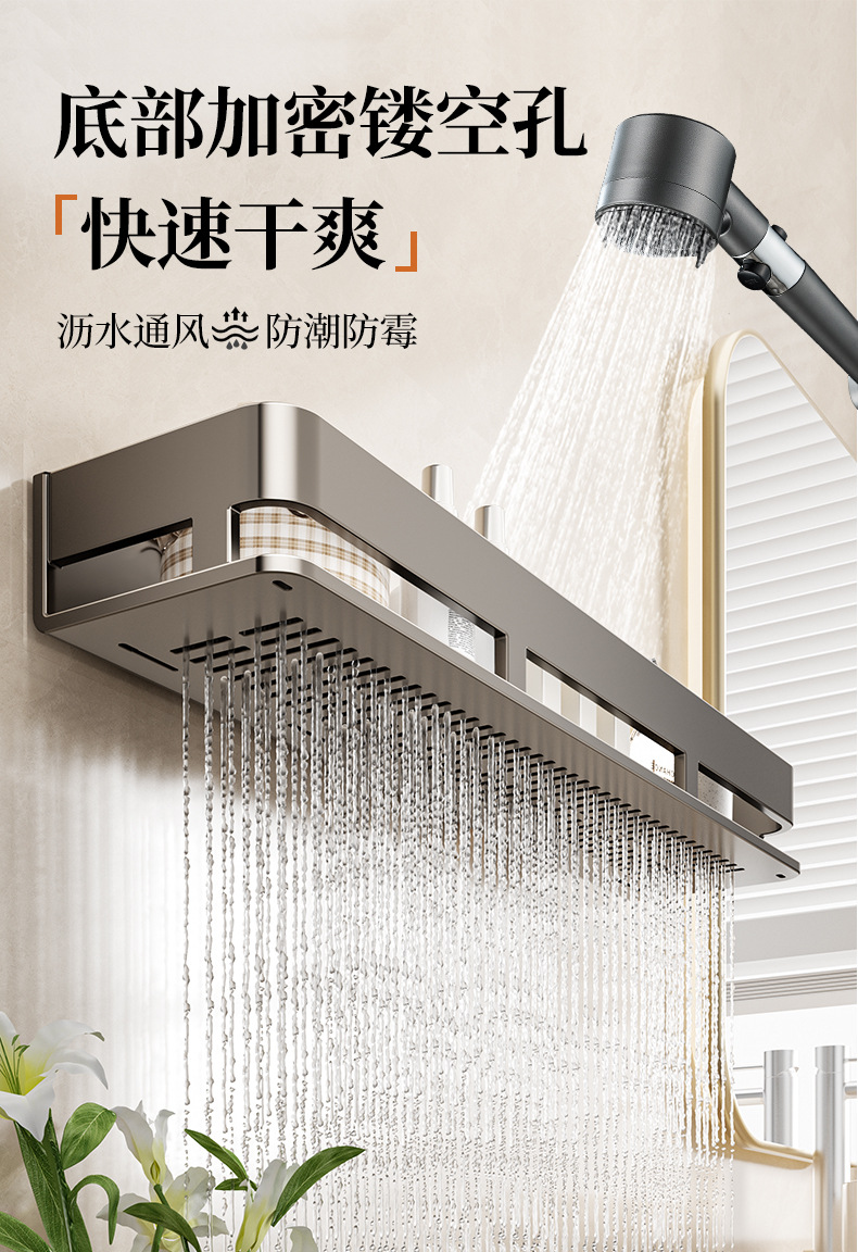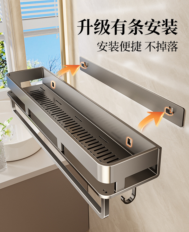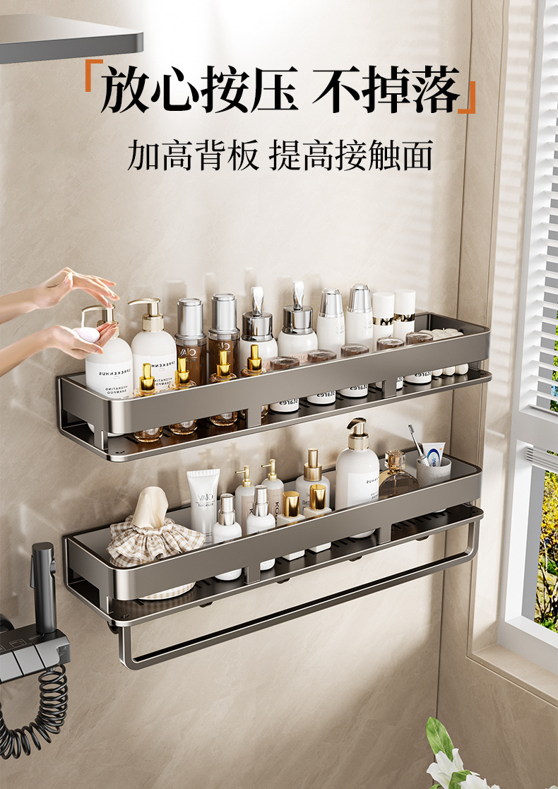 욕실 벽 수납 선반, 펀치 없는 세면도구 벽걸이 수납 선반, 건 그레이 욕실 수납 선반