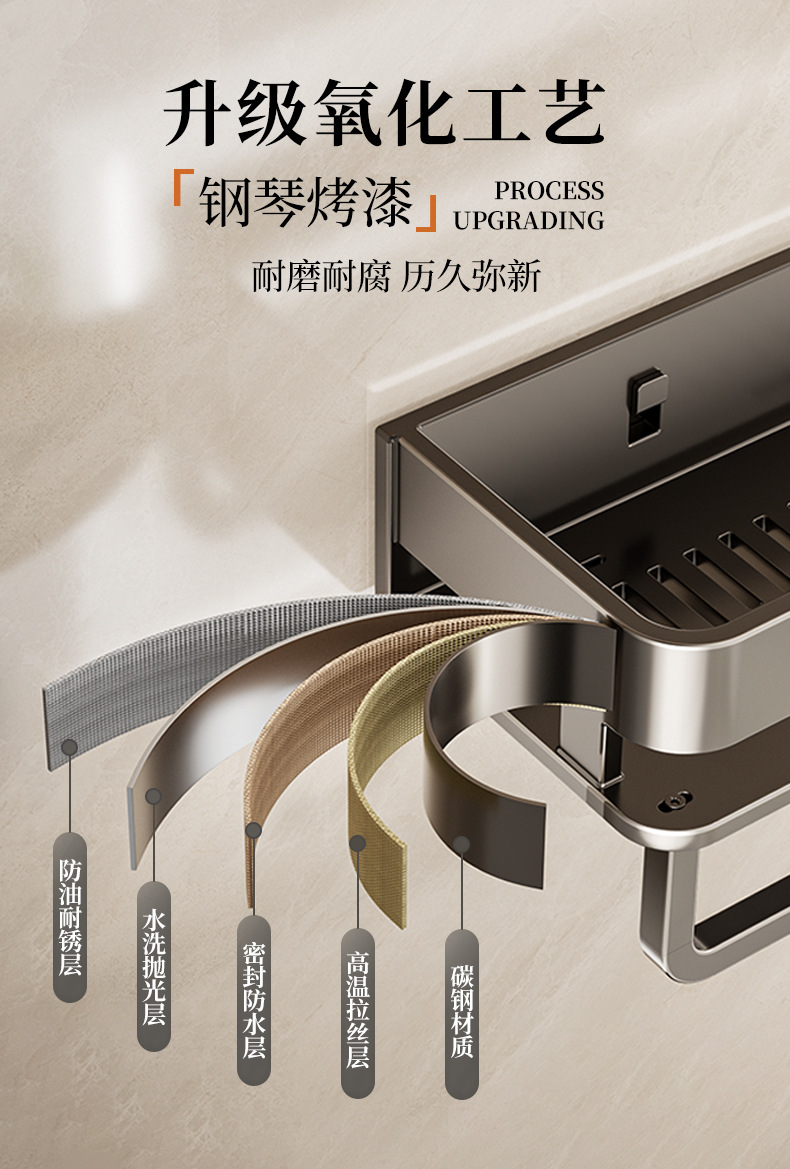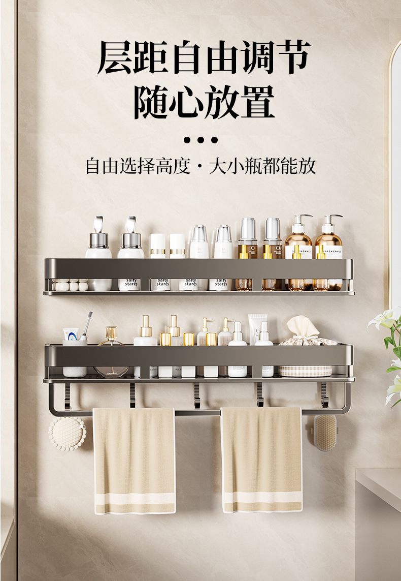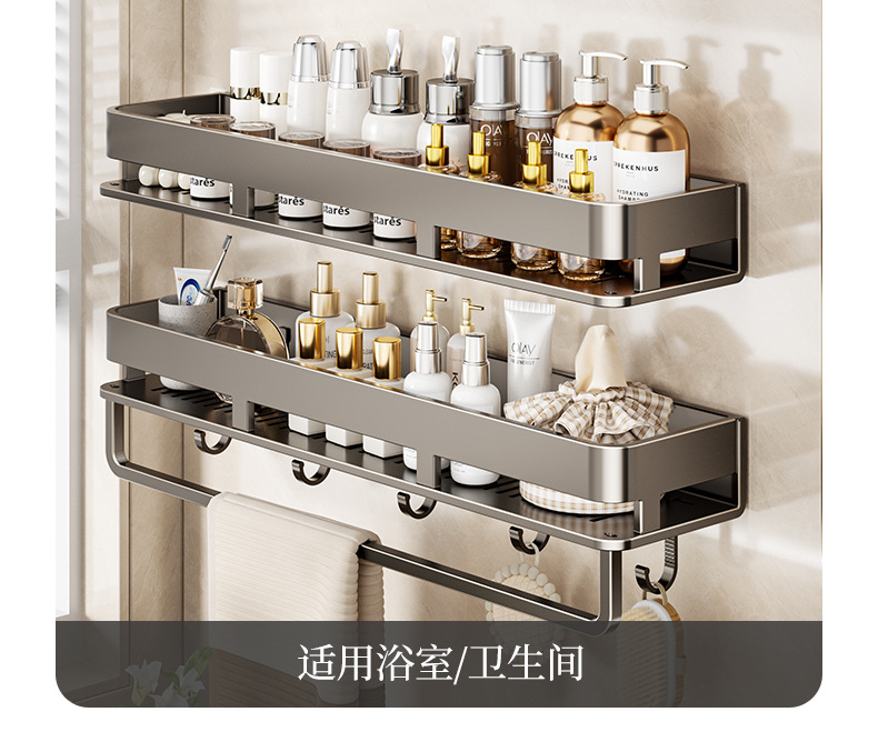 • 50CM 더블 레이어 분리형 건 그레이 욕실 보관함(후크 막대가 있는 1층)