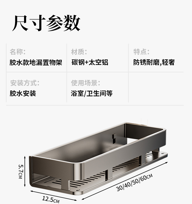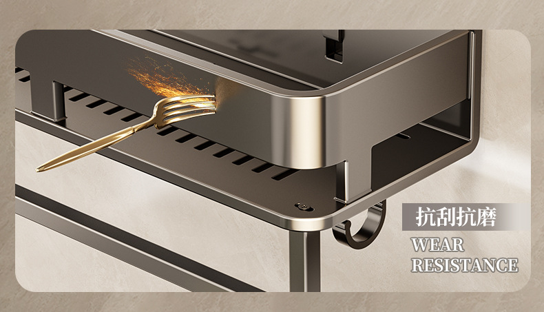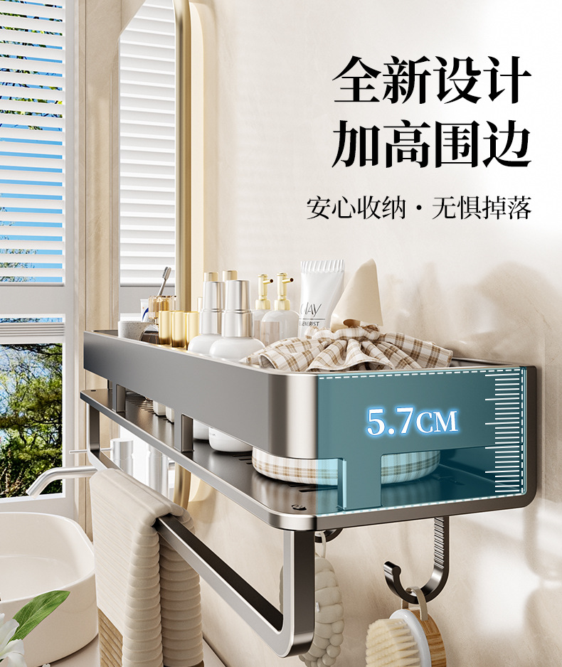 • 60CM 더블 레이어 분리형 건 그레이 욕실 보관함(후크 막대가 있는 1층)