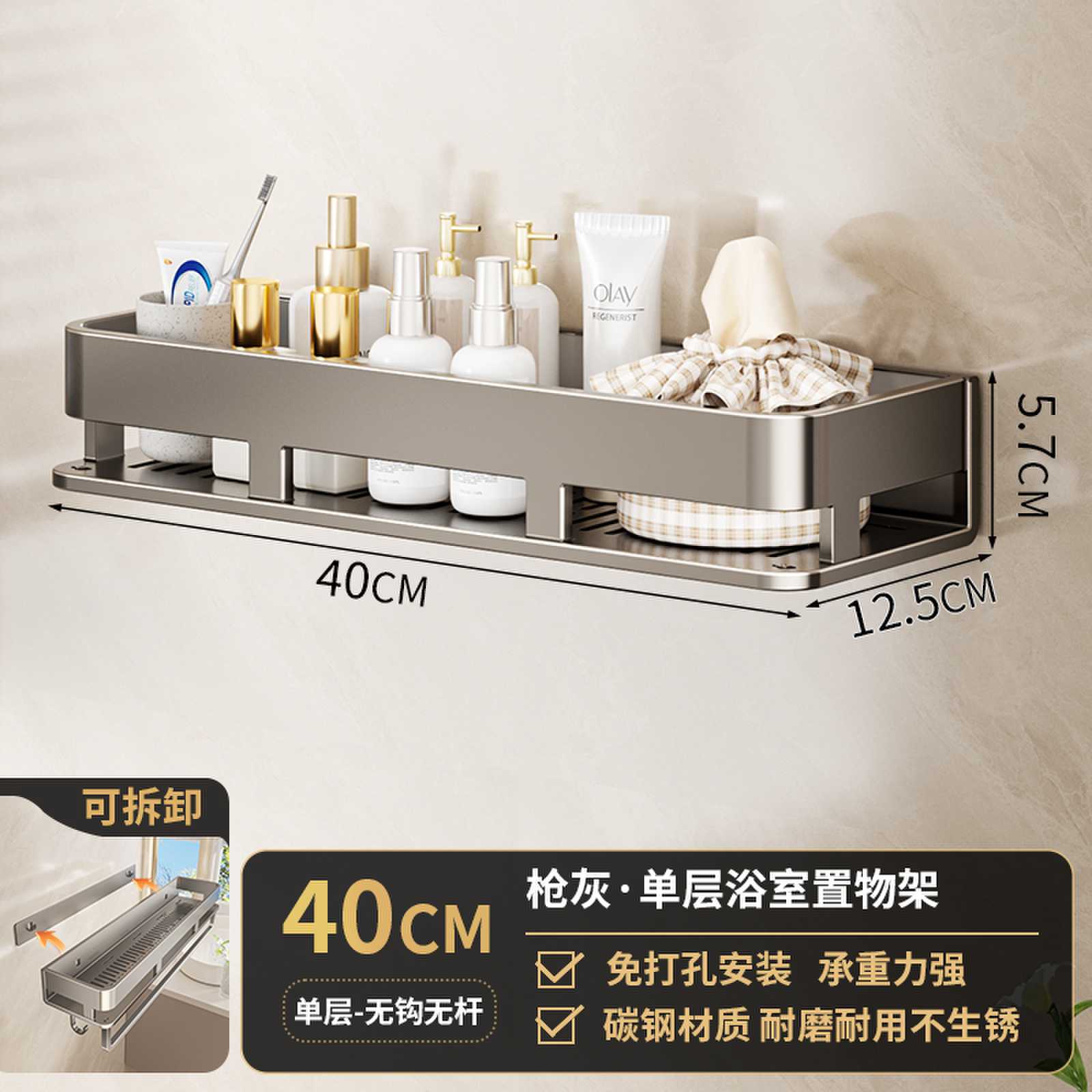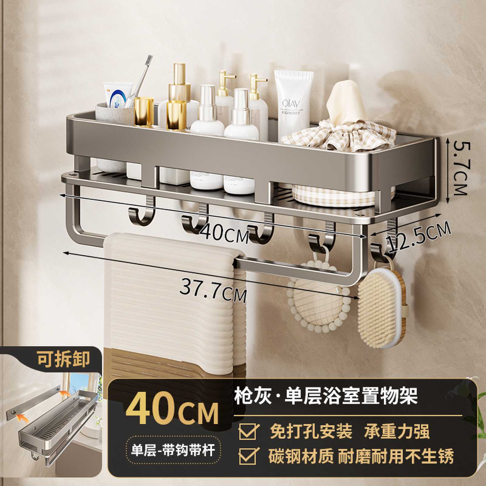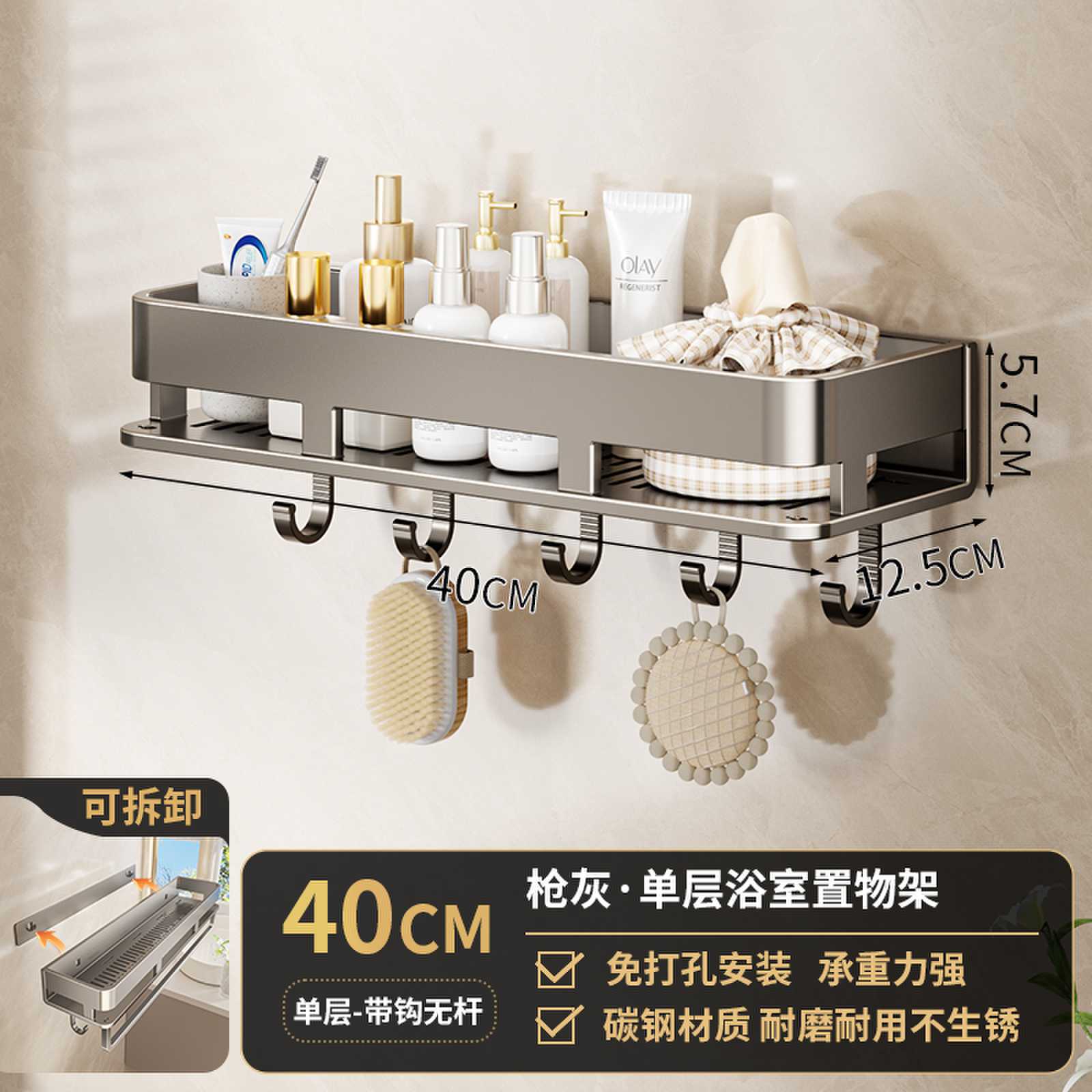 • 후크가 있는 40CM 단일 레이어 분리형 건 그레이 욕실 보관함