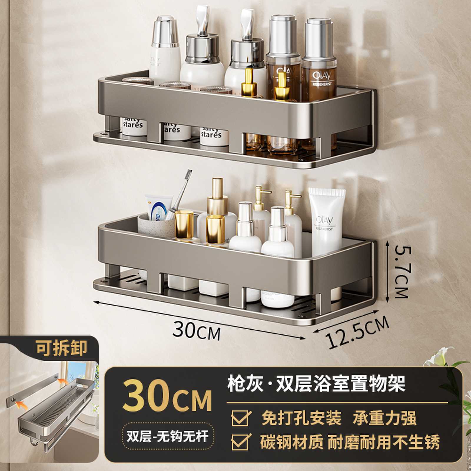 • 30CM 더블 레이어 분리형 건 그레이 욕실 보관함