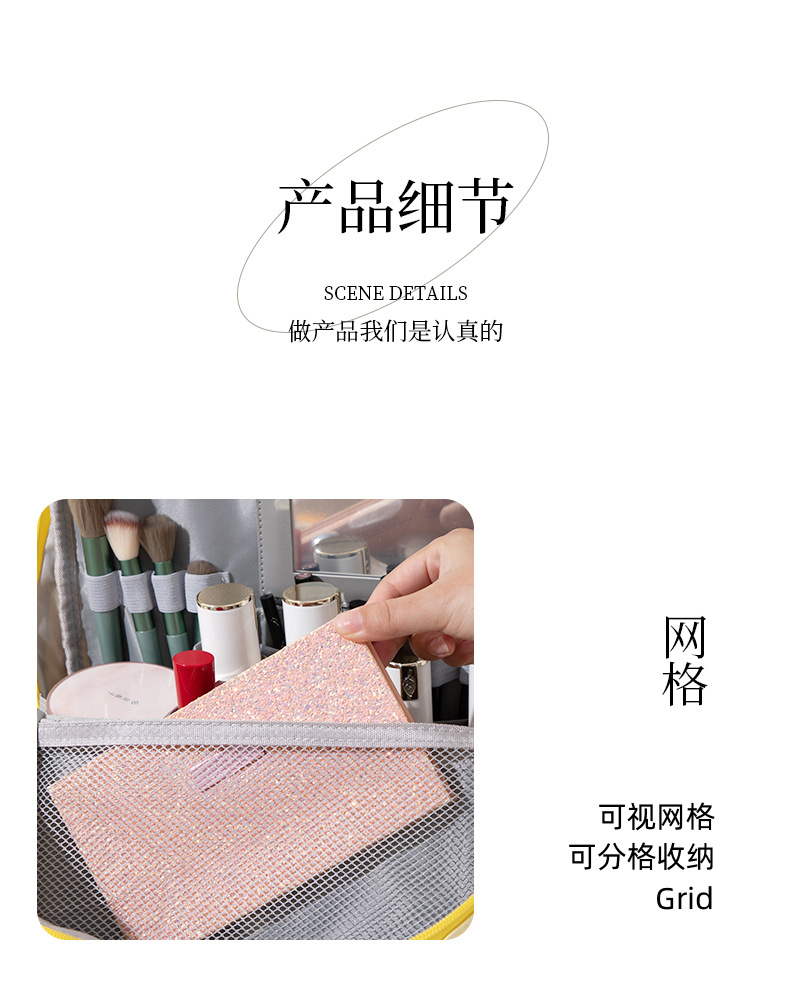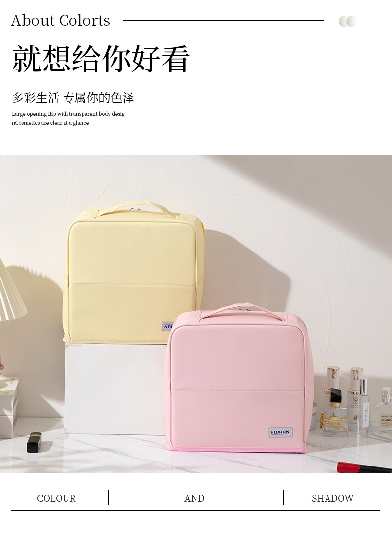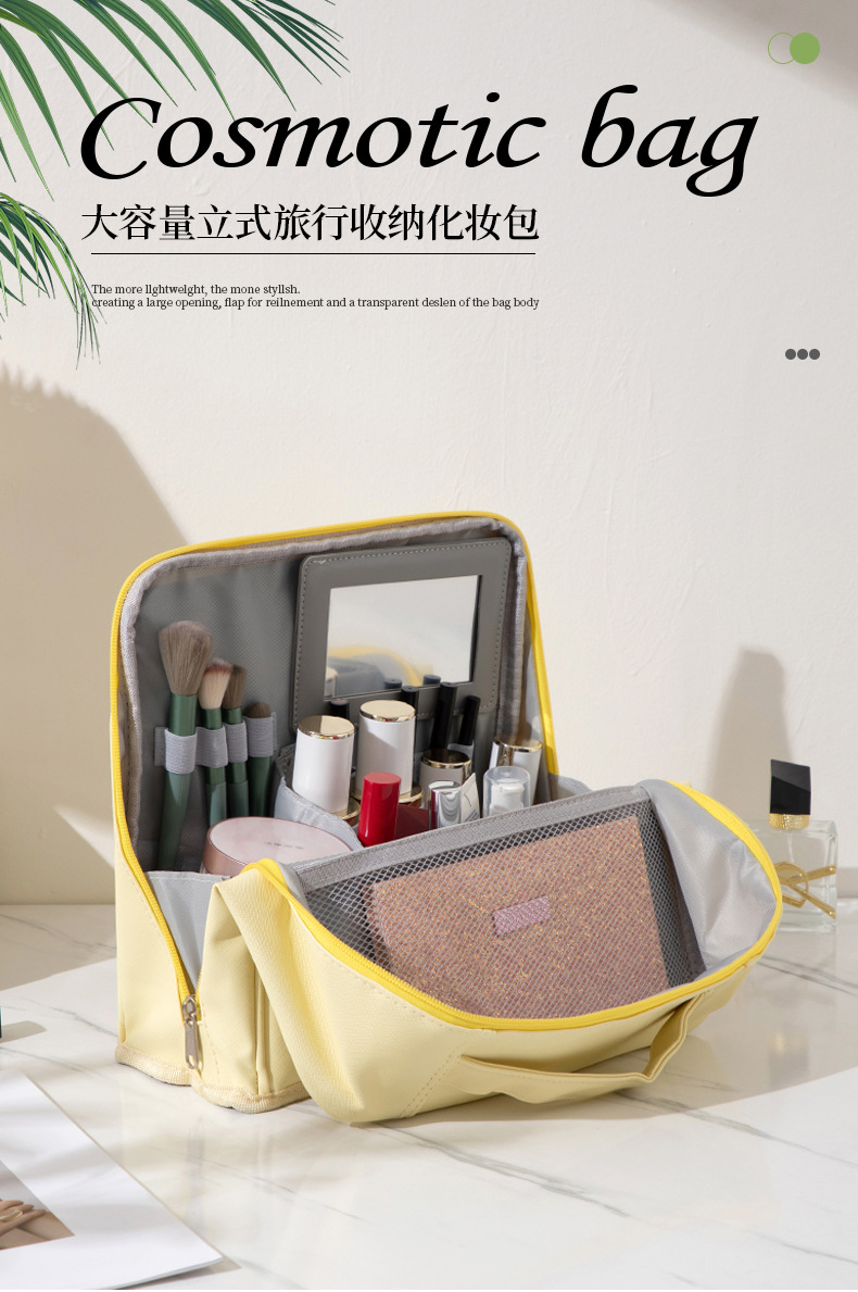 새로운 스타일의 화장품 가방, 대용량, 체크무늬, 초경량, 내마모성, 세워둘 수 있고, 여행 가방에 걸어둘 수 있는, 수납용 화장품 가방스토어 가기
