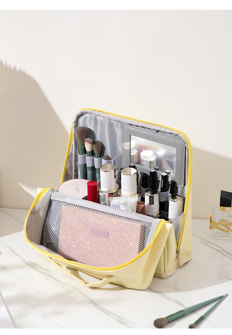 새로운 스타일의 화장품 가방, 대용량, 체크무늬, 초경량, 내마모성, 세워둘 수 있고, 여행 가방에 걸어둘 수 있는, 수납용 화장품 가방