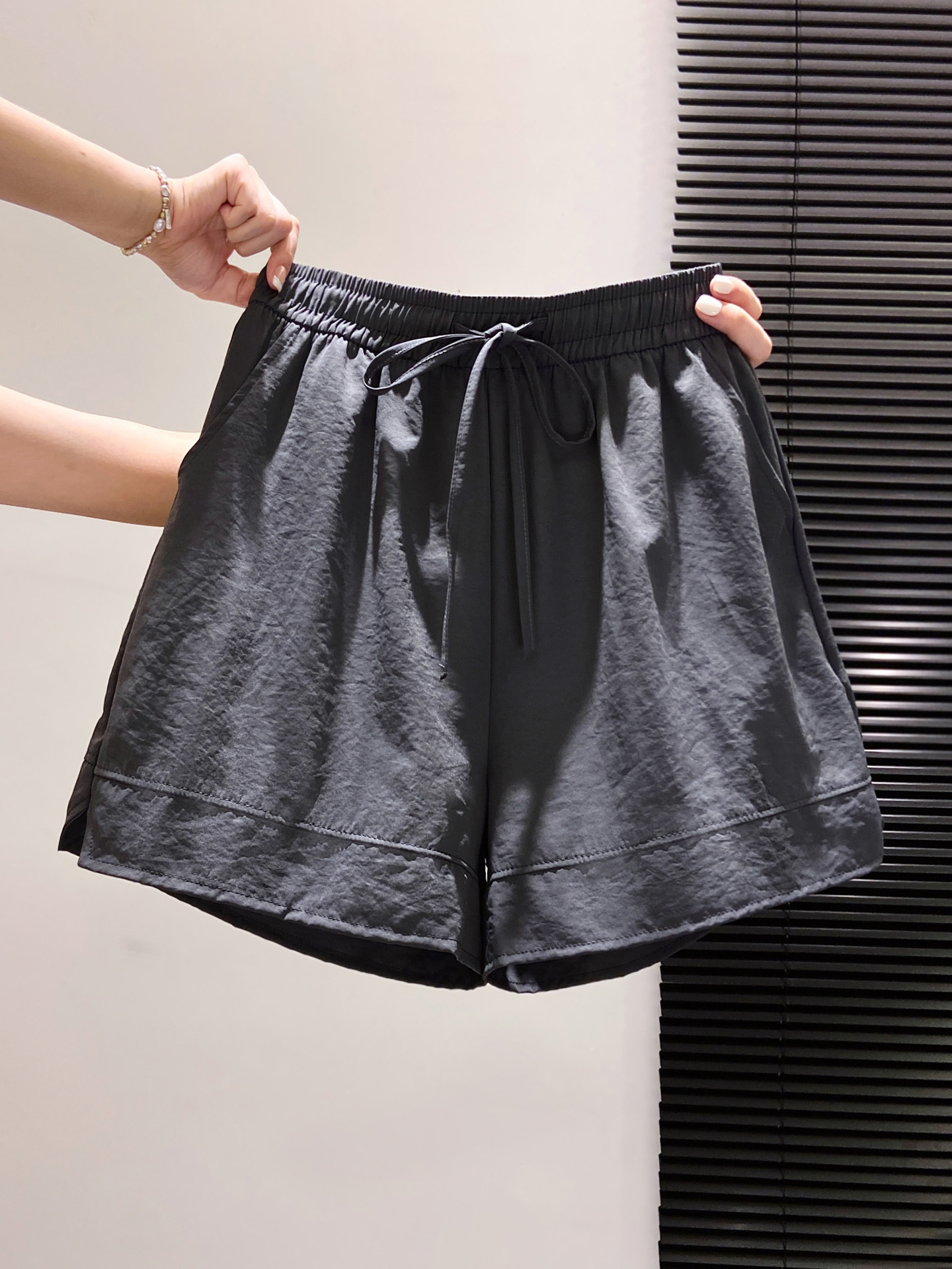 여름 여성을 위한 아이스 실크 얇은 와이드 레그 야마모토 반바지 새로운 루즈 캐주얼 힙 커버 슬리밍 하이 웨이스트 5점 스포츠 바지스토어 가기