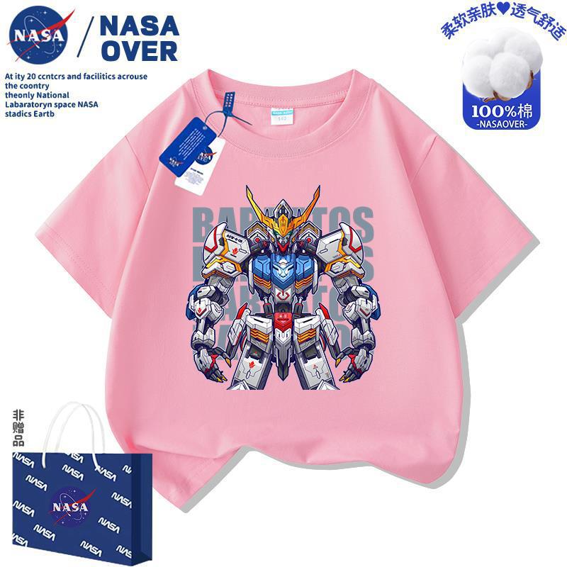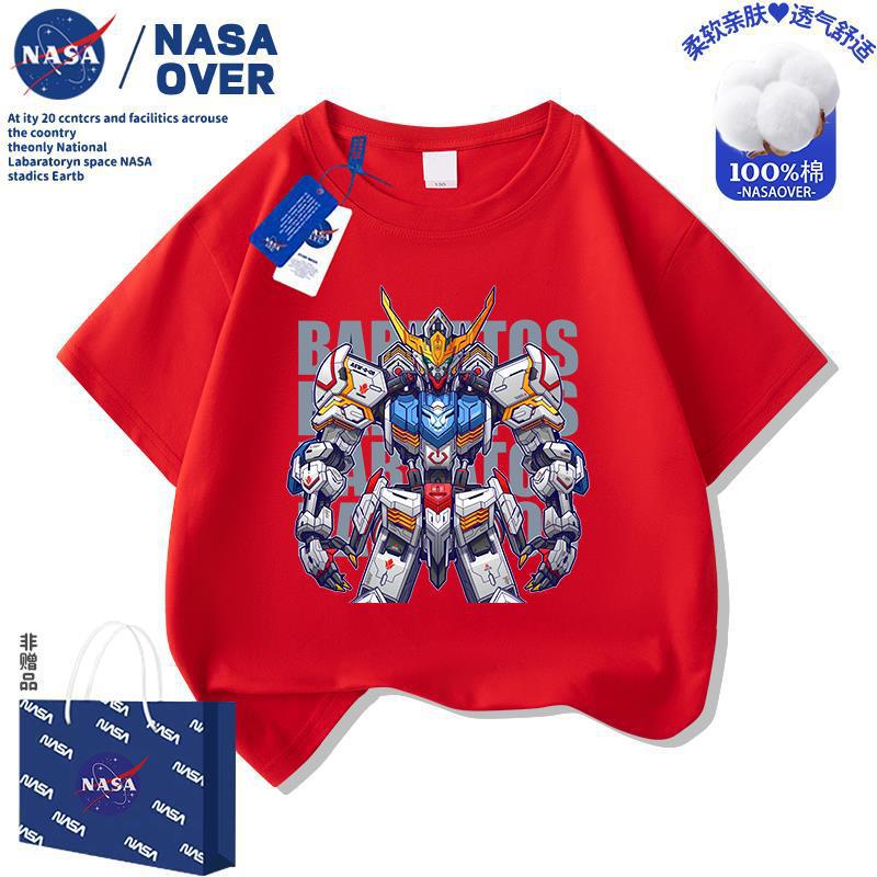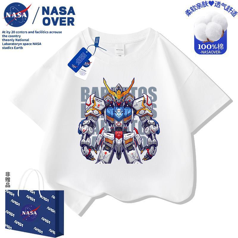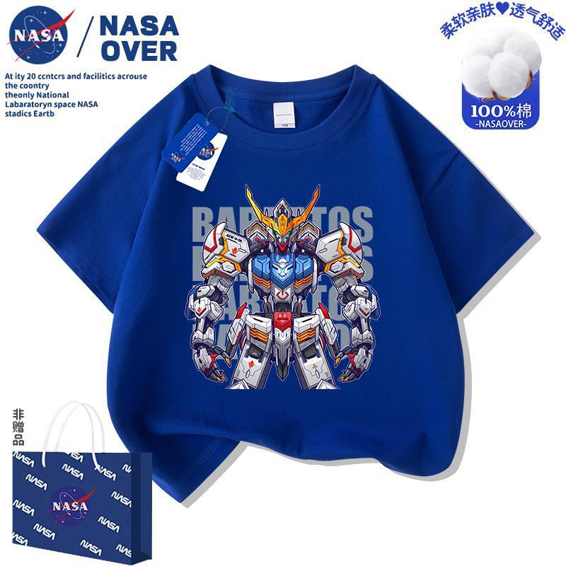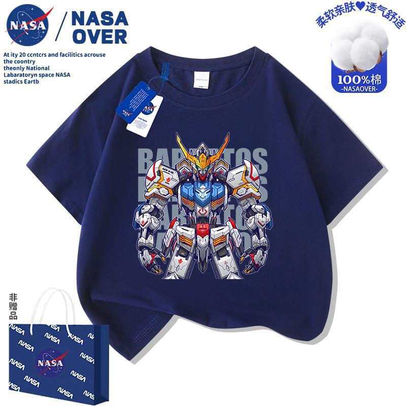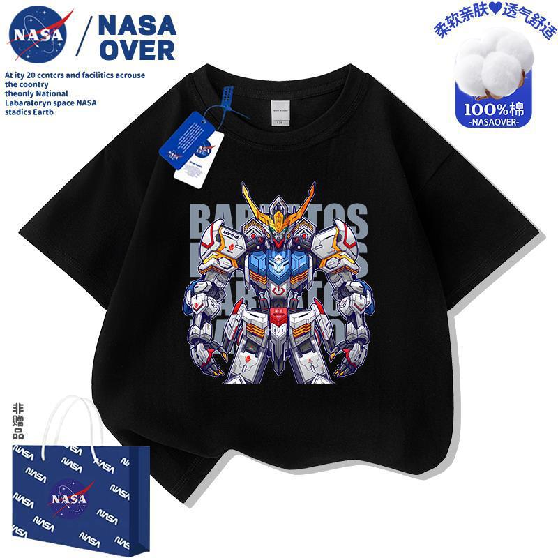 NASA 여름 만화 건담 아동용 순면 티셔츠 중대형 아동복 반팔 잘 생긴 유행 패션 라운드 넥 탑스토어 가기