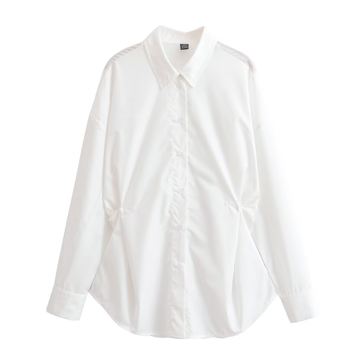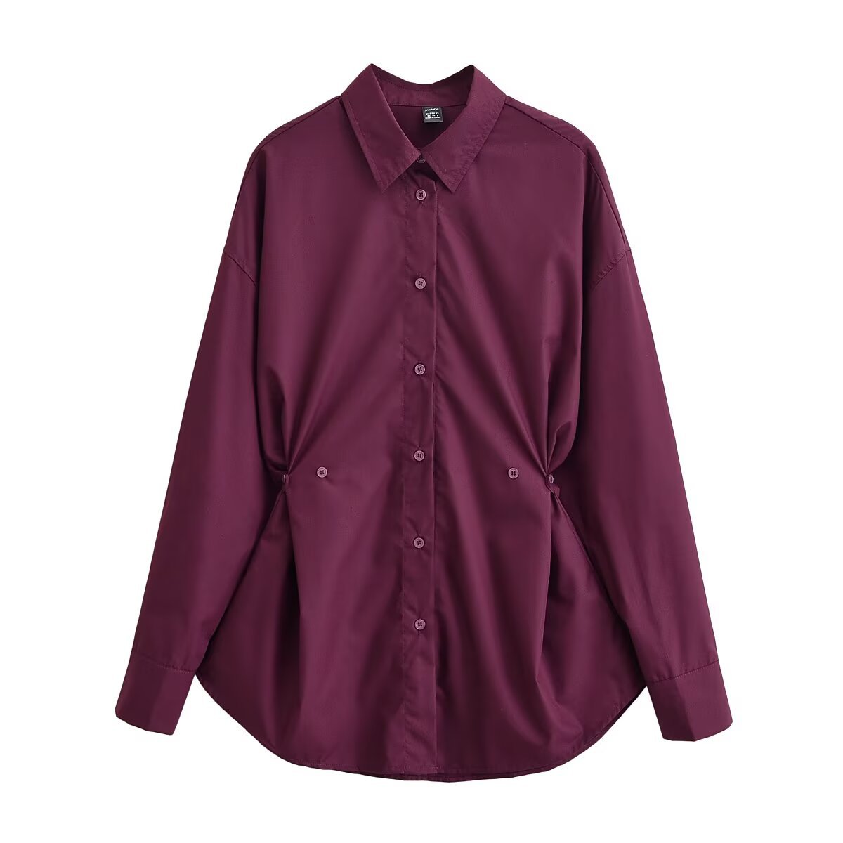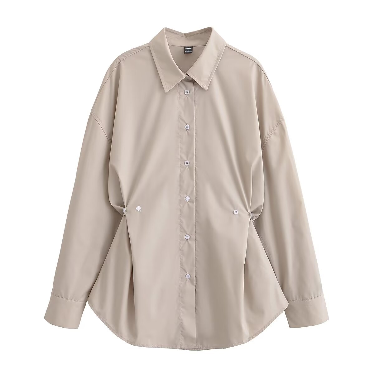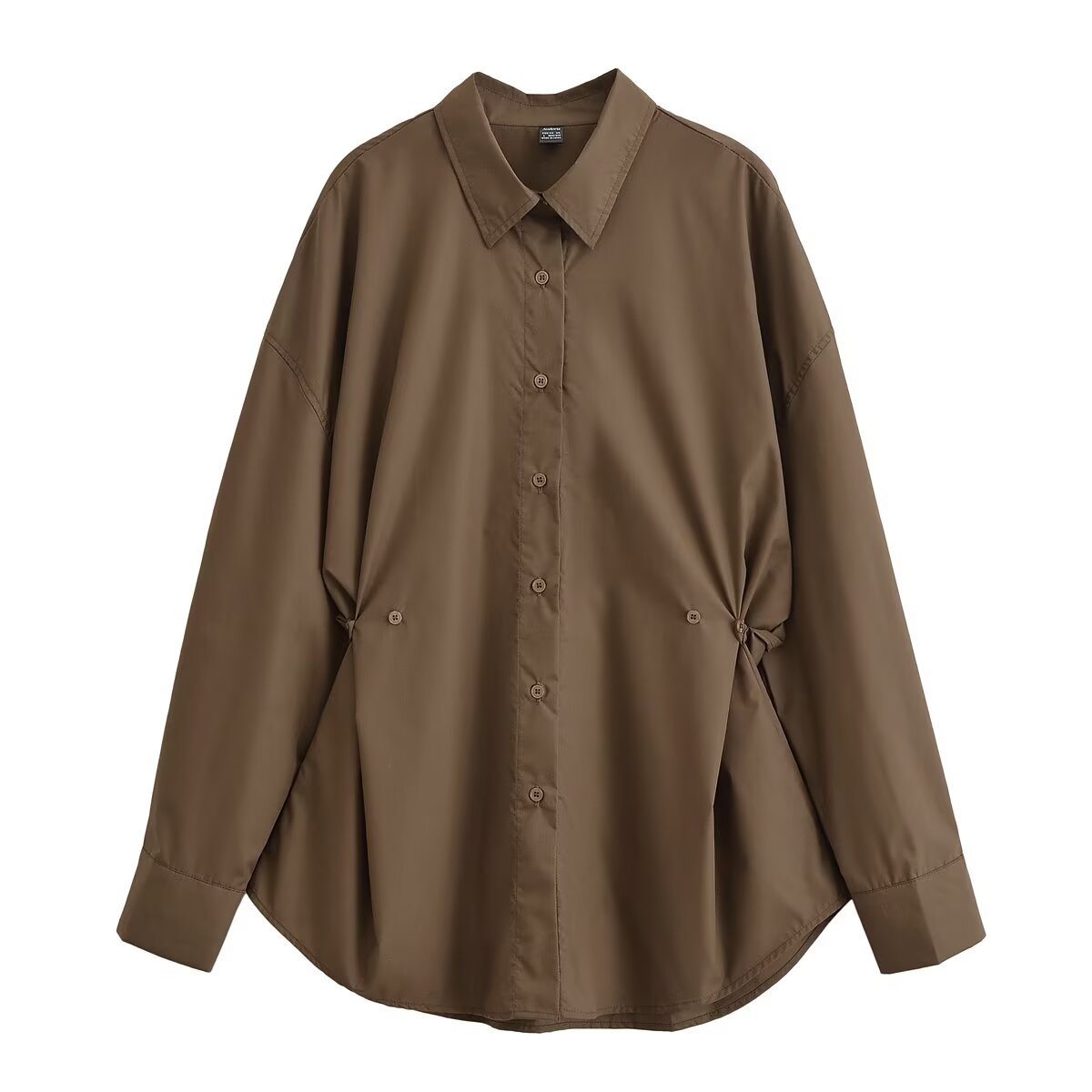 PB&ZA 여성 2025 가을 새로운 스타일 심플 라펠 불규칙한 편안한 긴팔 조절 가능한 루즈 셔츠스토어 가기