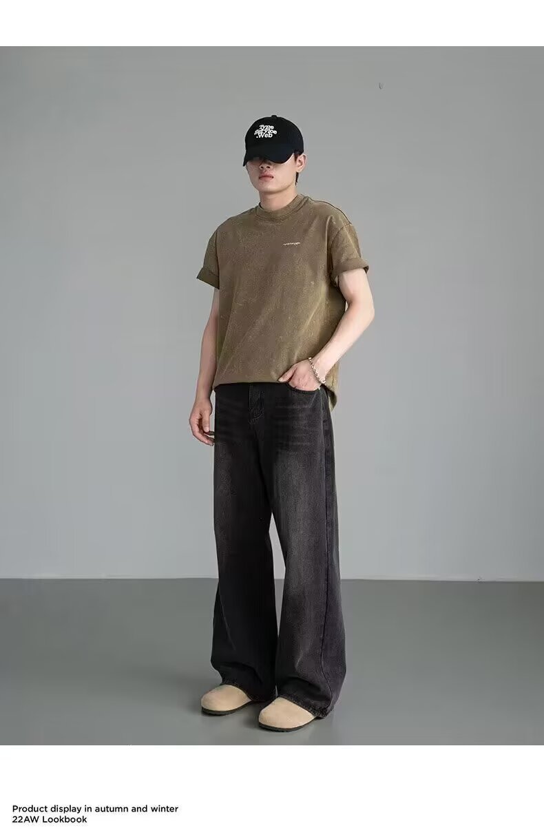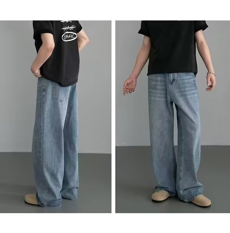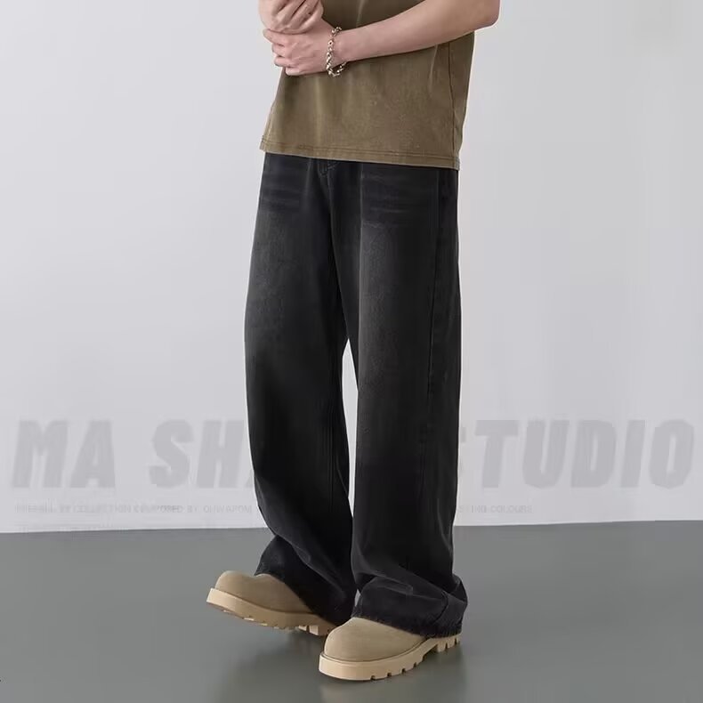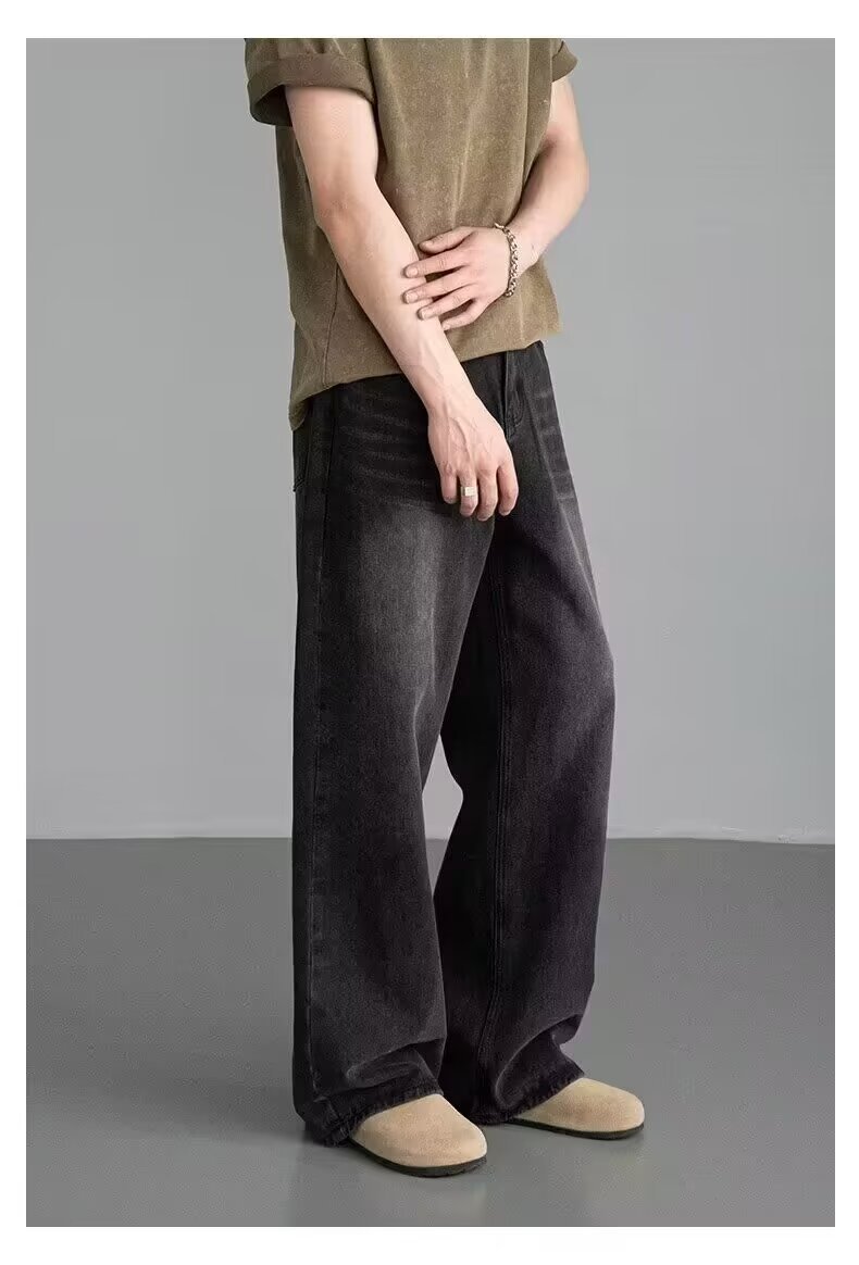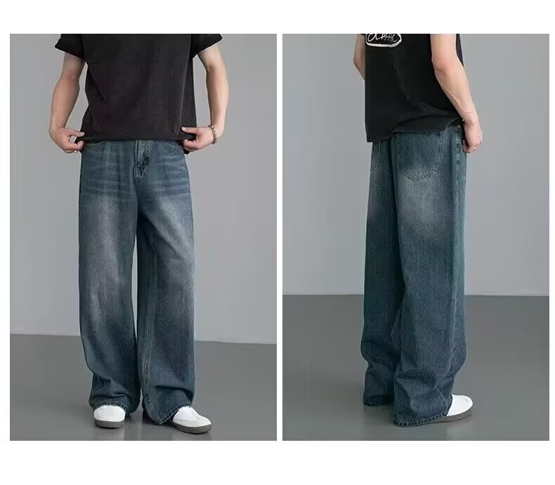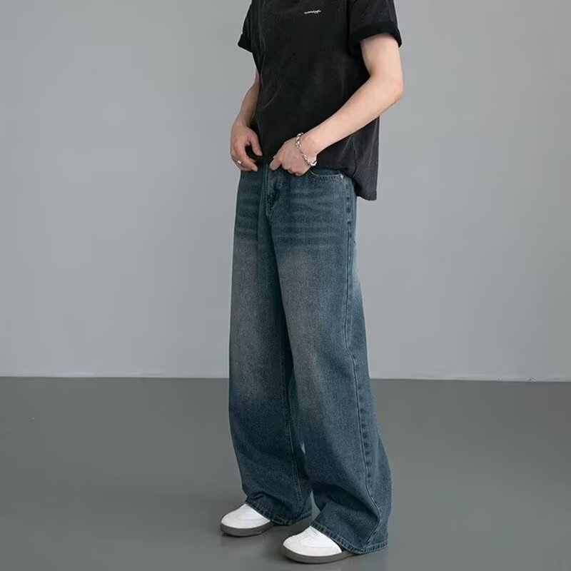 남성용 아메리칸 레트로 블루 청바지 봄, 가을 새로운 스타일 스트레이트 루즈 헤비 워시 올드 데님 롱 팬츠 남성용스토어 가기