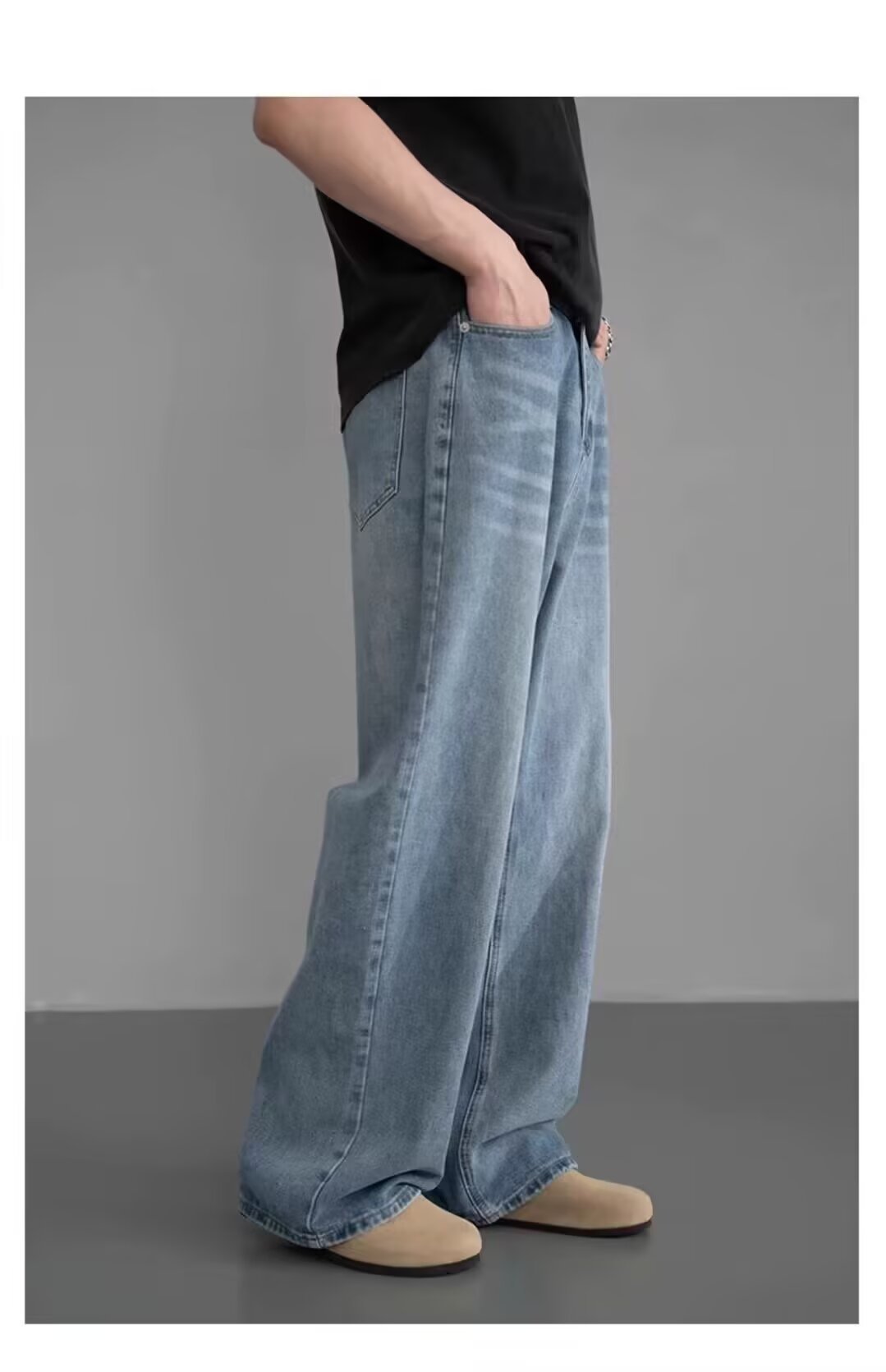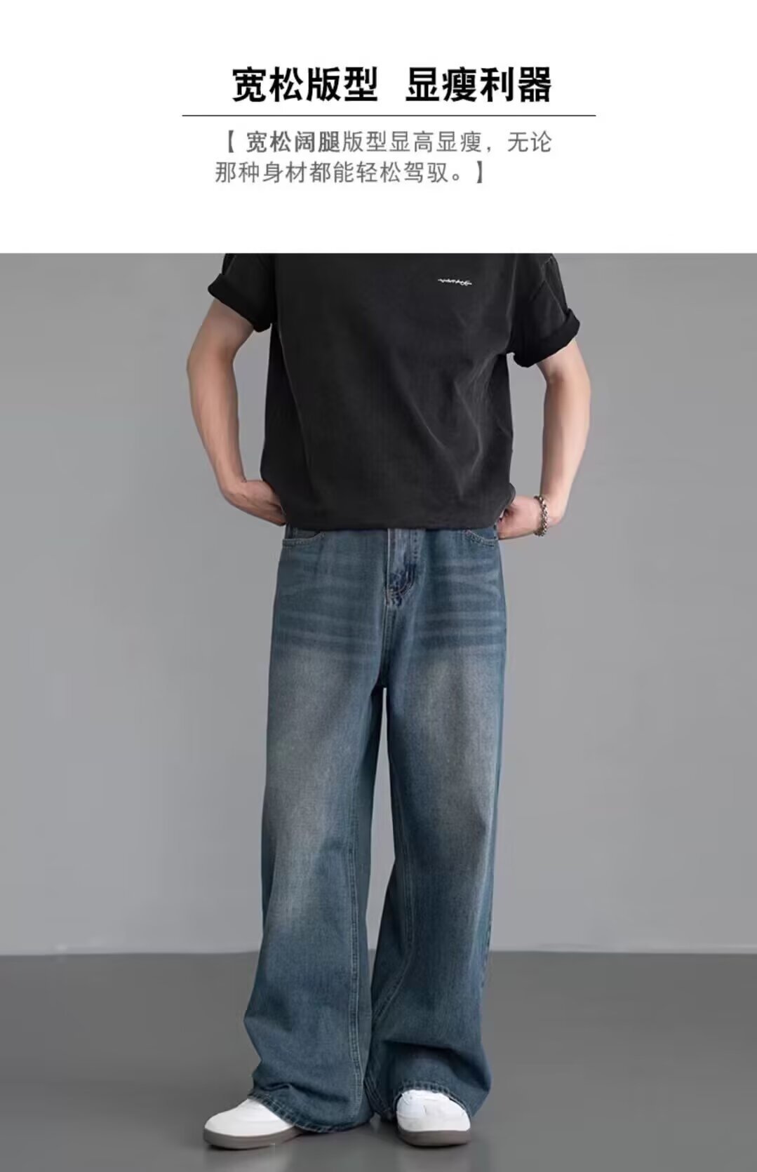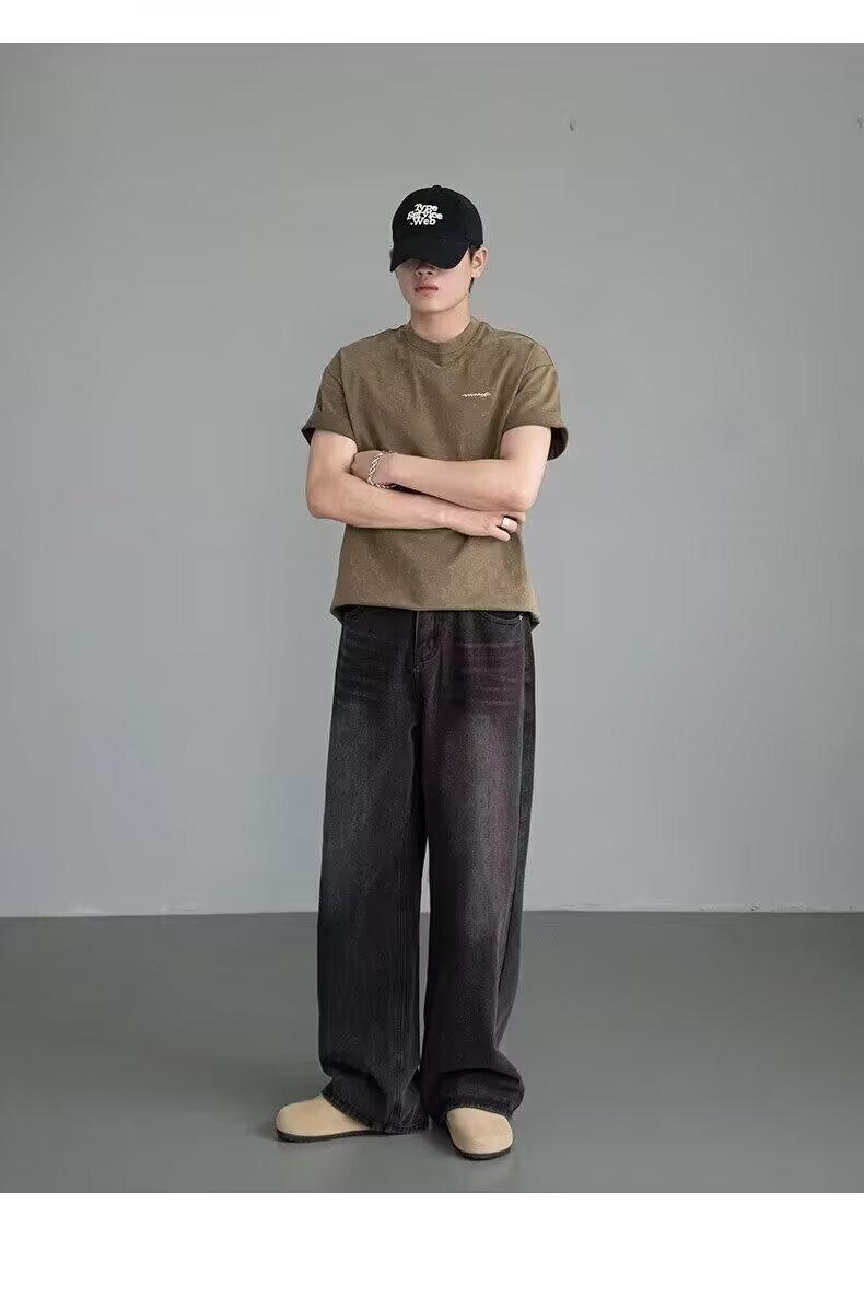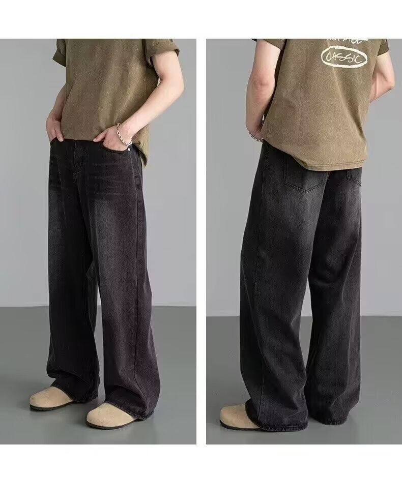 남성용 아메리칸 레트로 블루 청바지 봄, 가을 새로운 스타일 스트레이트 루즈 헤비 워시 올드 데님 롱 팬츠 남성용스토어 가기