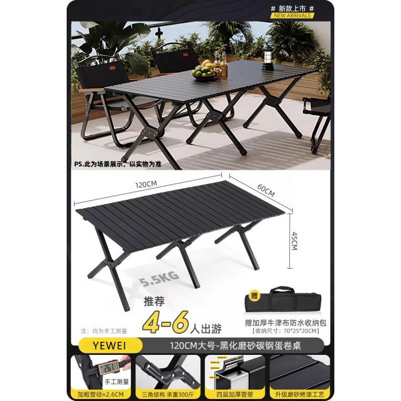 M6X 야외 캠핑 접이식 테이블 휴대용 에그롤 테이블 풀 세트 장비