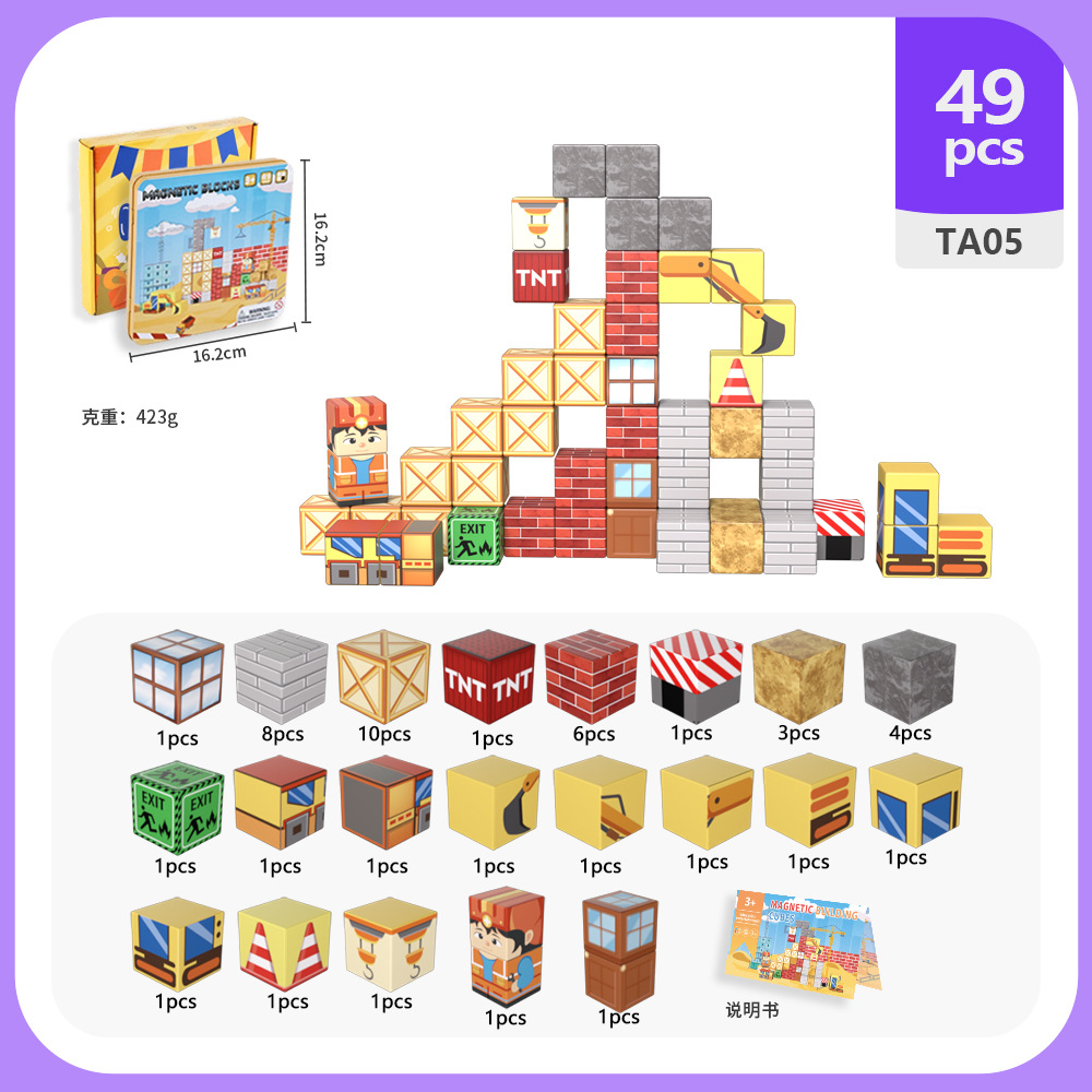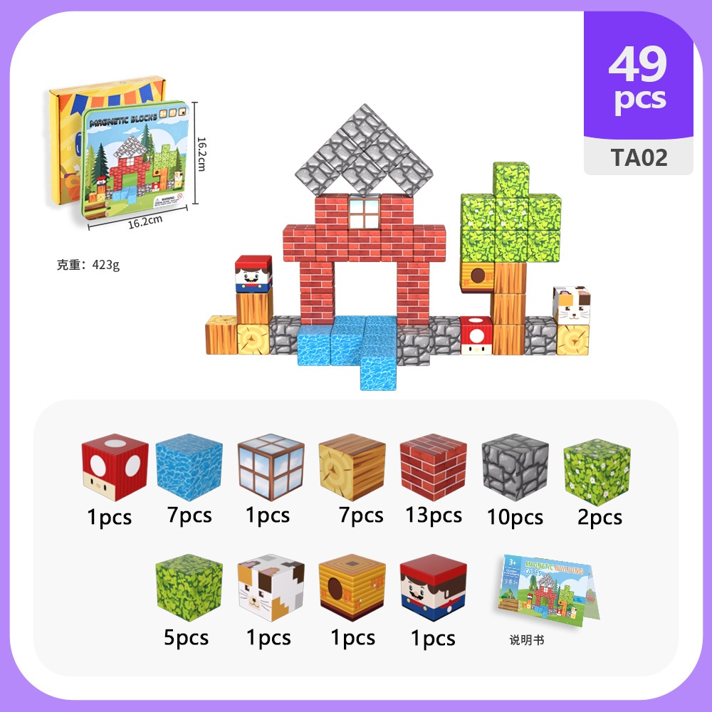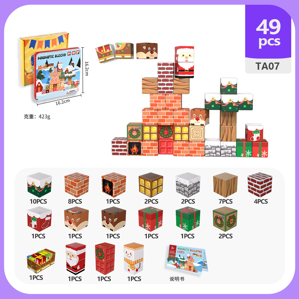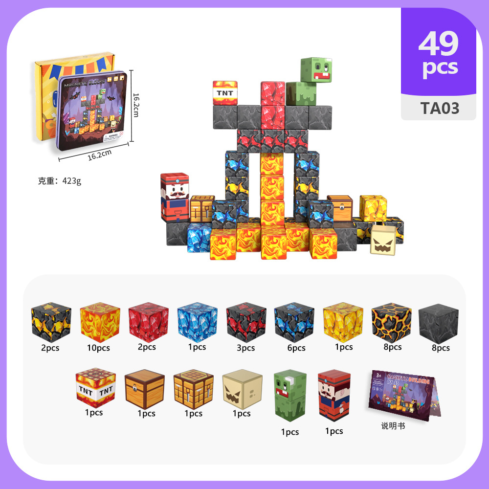 국경 간 새로운 자기 블록 빌딩 블록 자기 흡입 장난감 어린이 교육 빌딩 선물 49P 철 상자 블록 세트