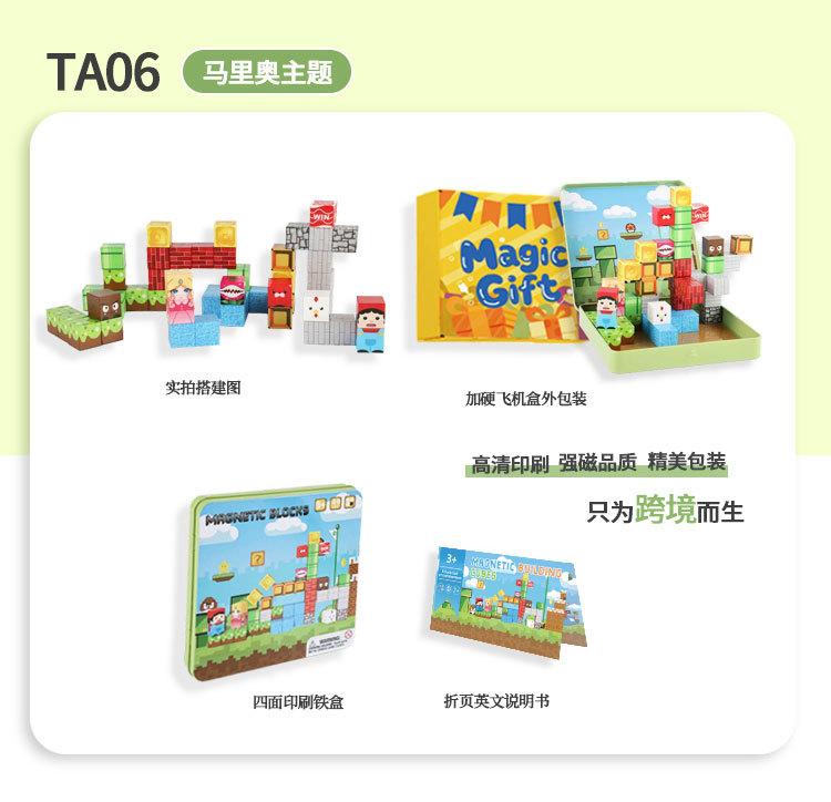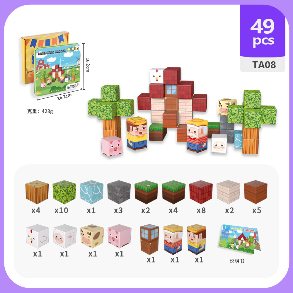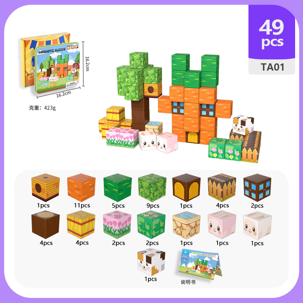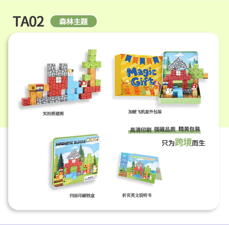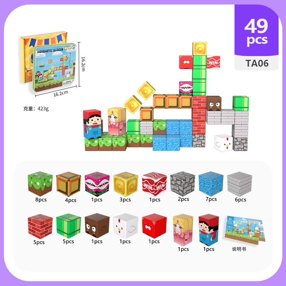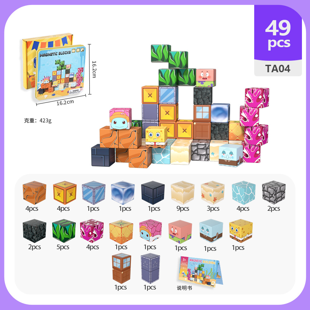 국경 간 새로운 자기 블록 빌딩 블록 자기 흡입 장난감 어린이 교육 빌딩 선물 49P 철 상자 블록 세트