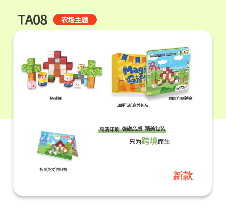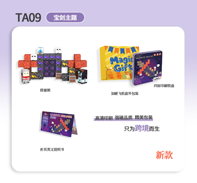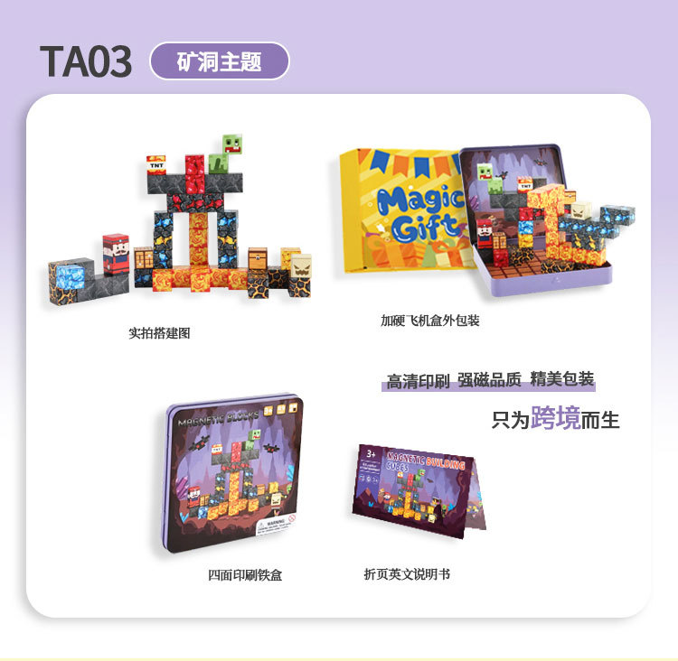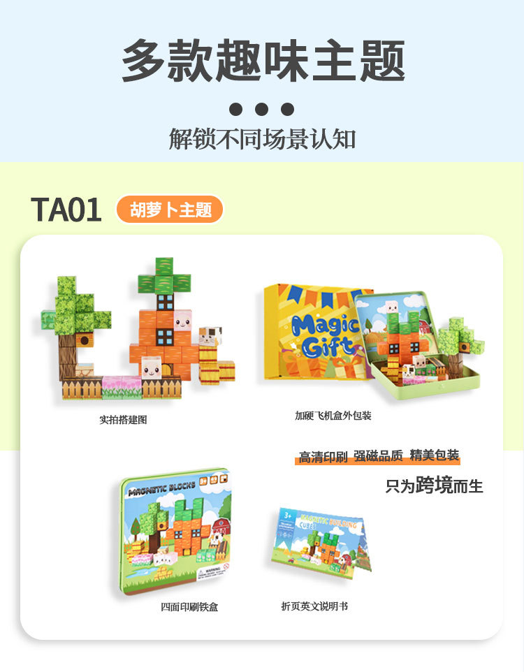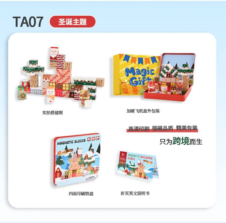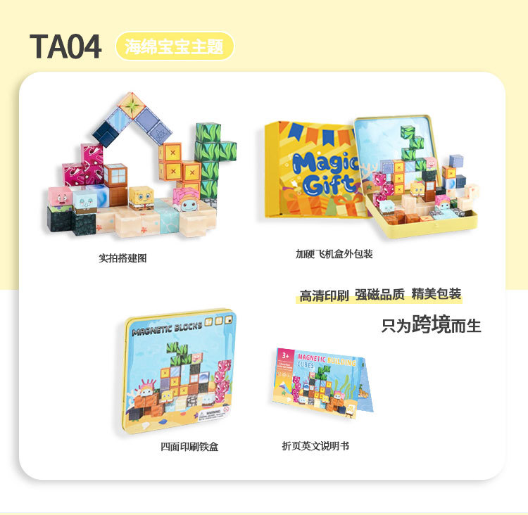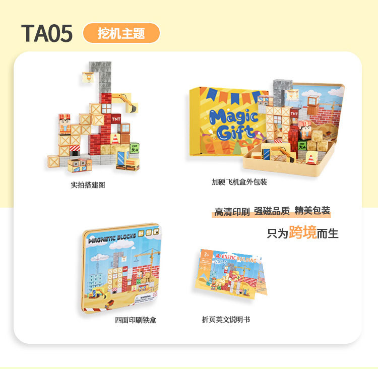 국경 간 새로운 자기 블록 빌딩 블록 자기 흡입 장난감 어린이 교육 빌딩 선물 49P 철 상자 블록 세트