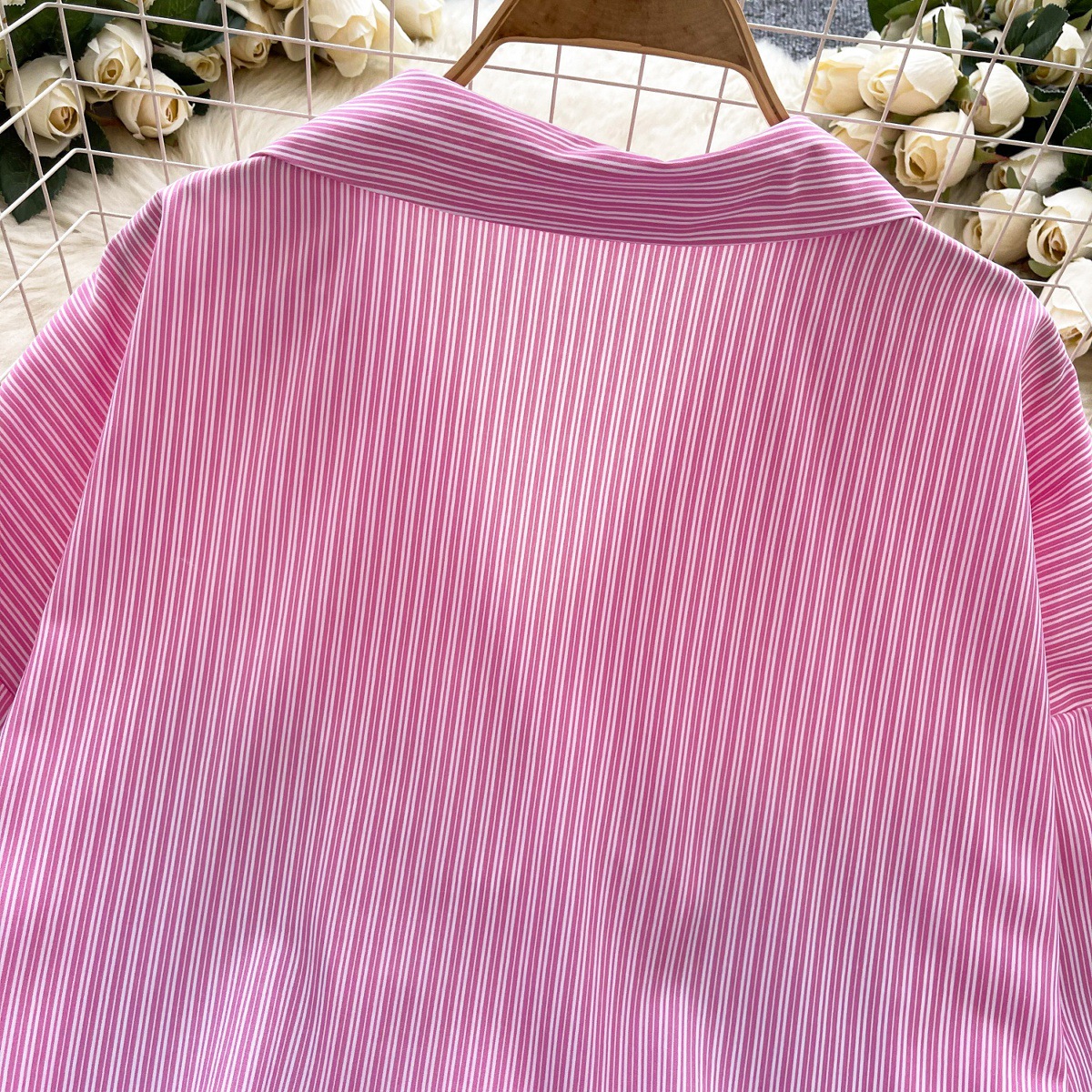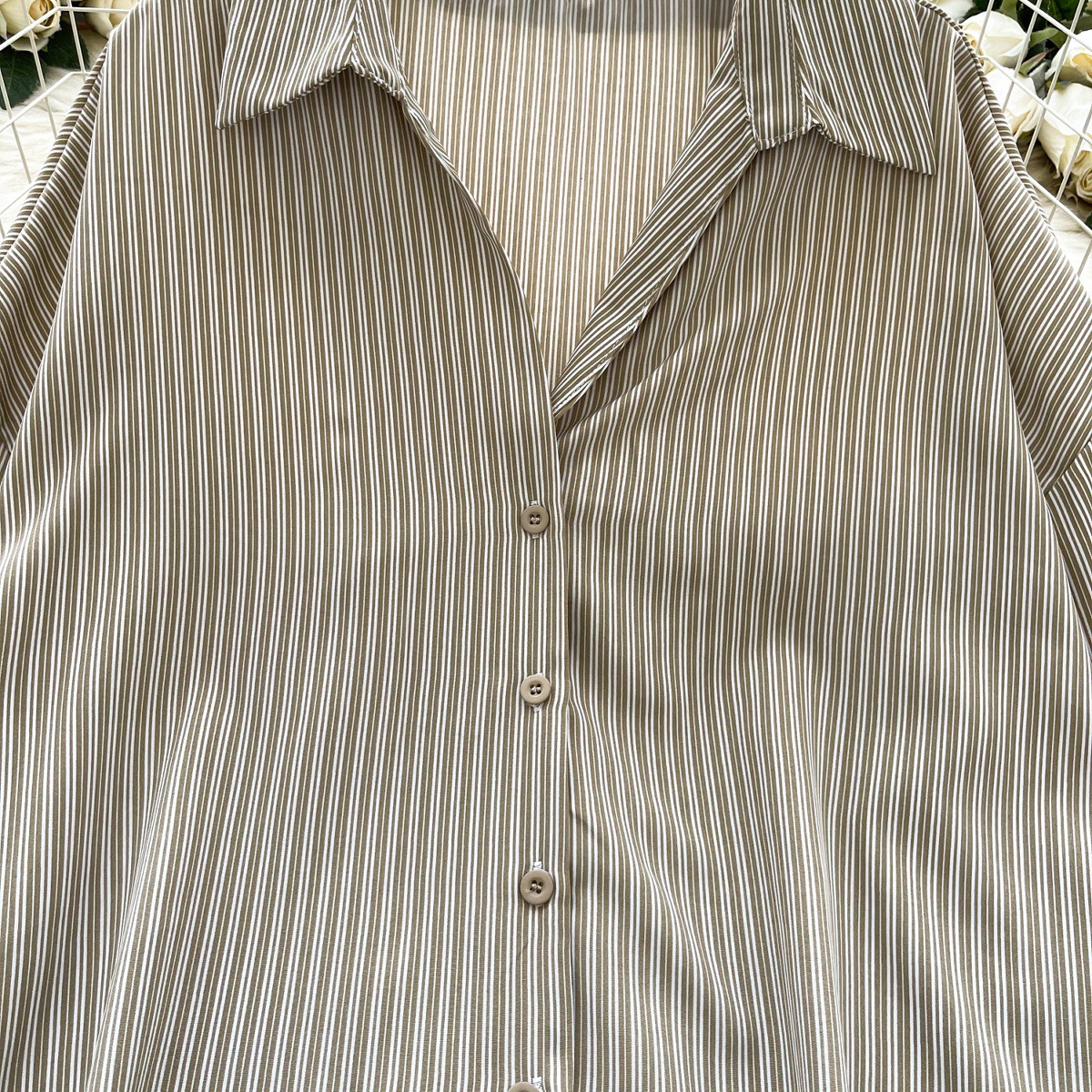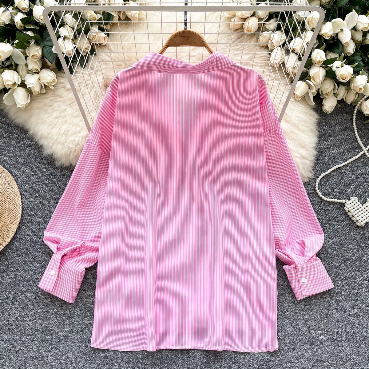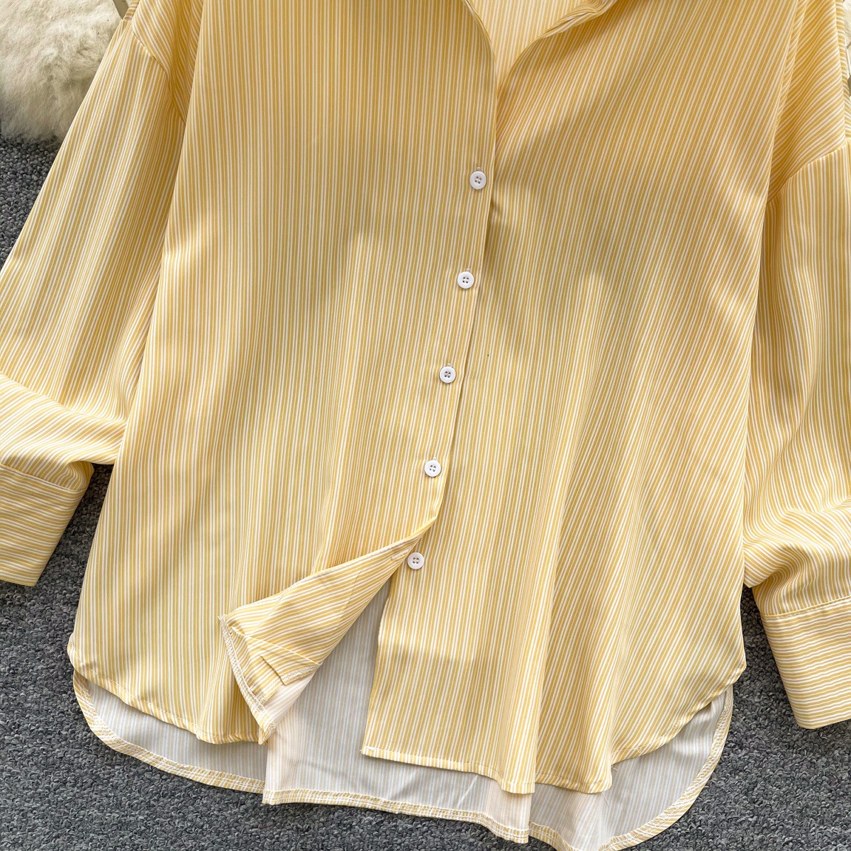 가볍고 성숙한 여성 셔츠 2025 새로운 통근 다목적 옷깃 싱글 브레스트 카디건 스트라이프 셔츠 여성 캐주얼 탑
