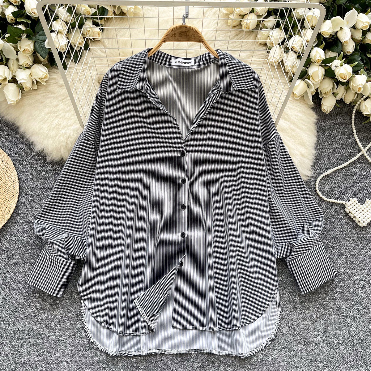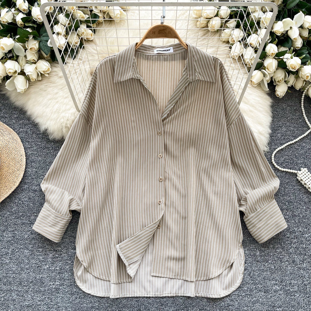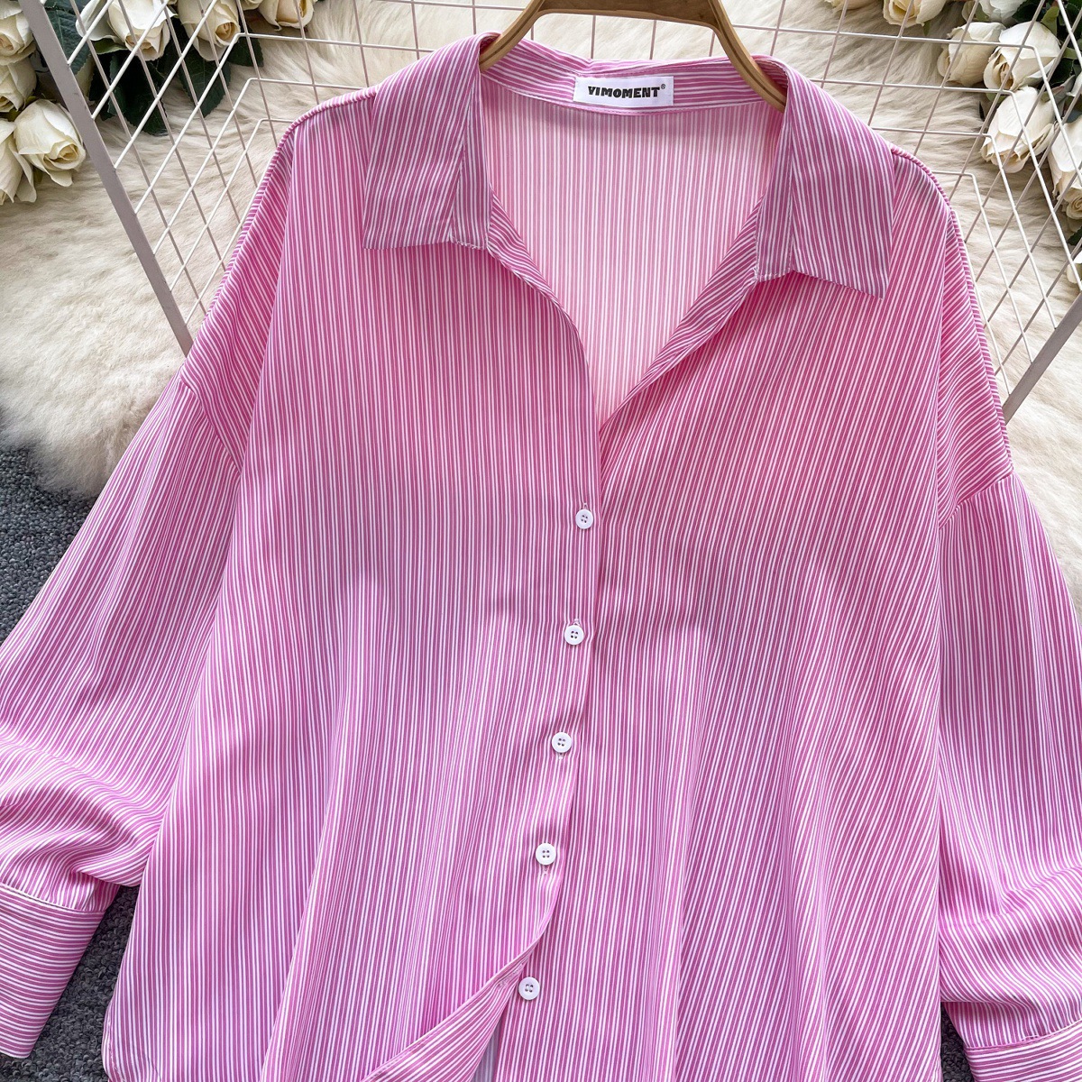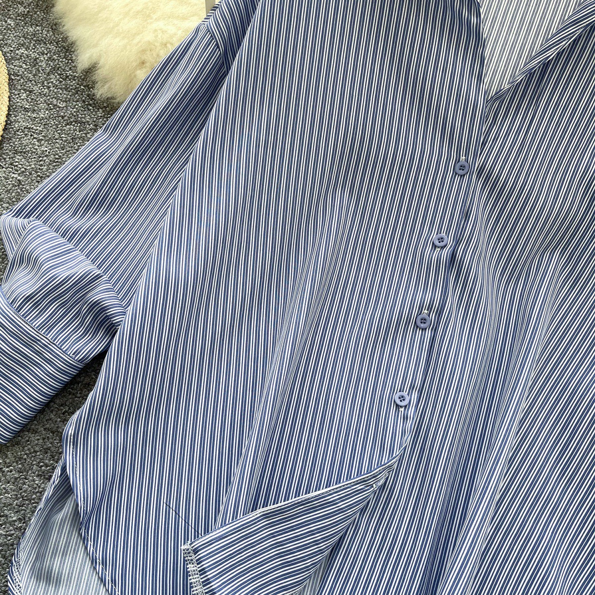 가볍고 성숙한 여성 셔츠 2025 새로운 통근 다목적 옷깃 싱글 브레스트 카디건 스트라이프 셔츠 여성 캐주얼 탑