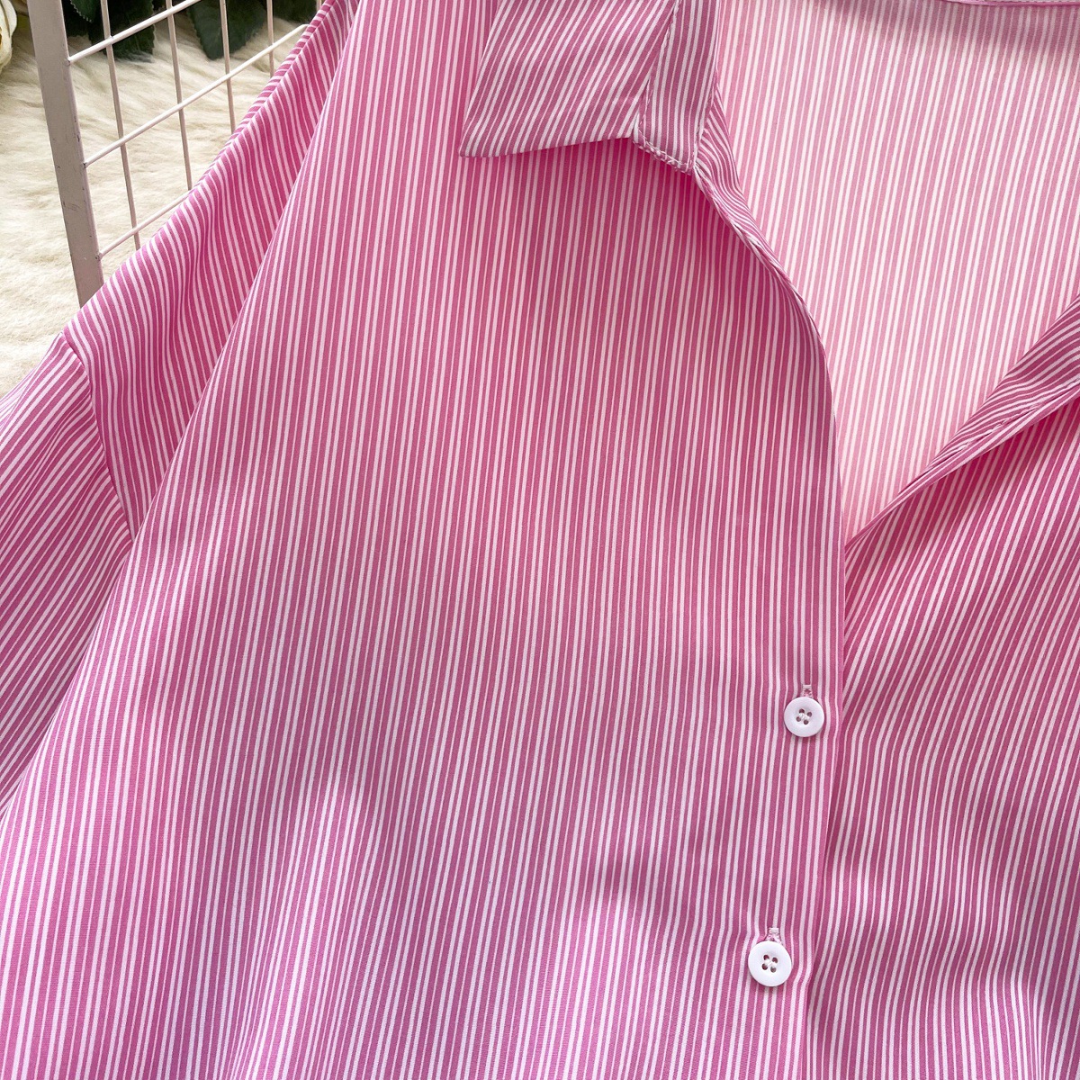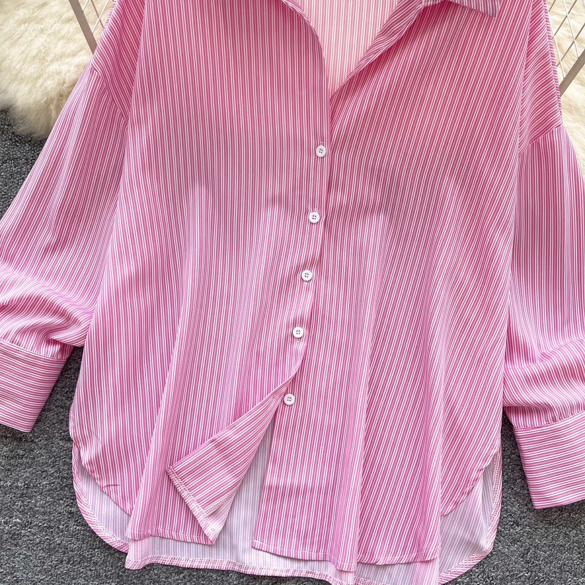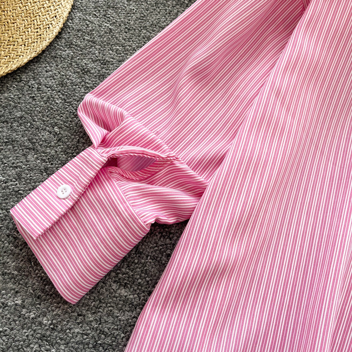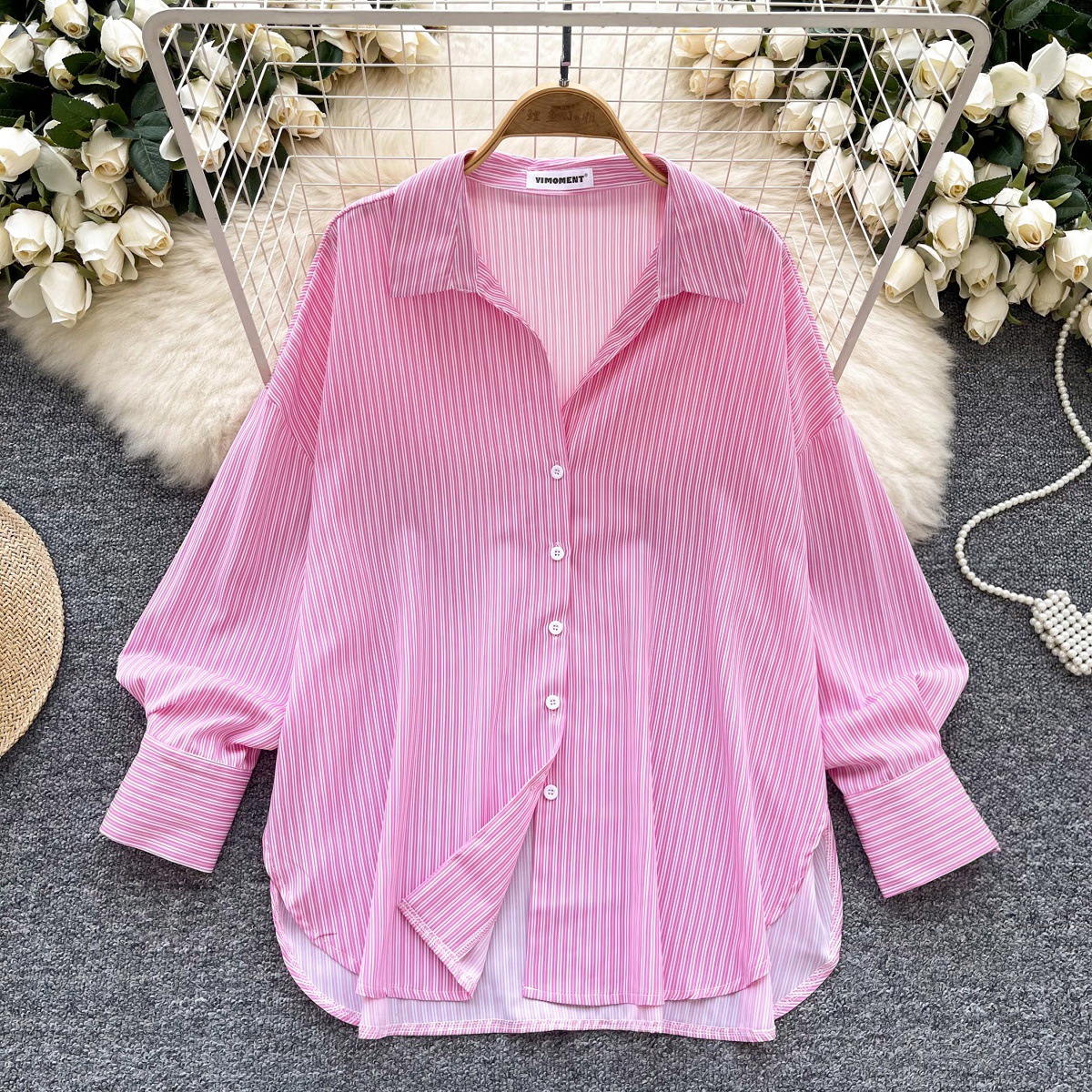 가볍고 성숙한 여성 셔츠 2025 새로운 통근 다목적 옷깃 싱글 브레스트 카디건 스트라이프 셔츠 여성 캐주얼 탑