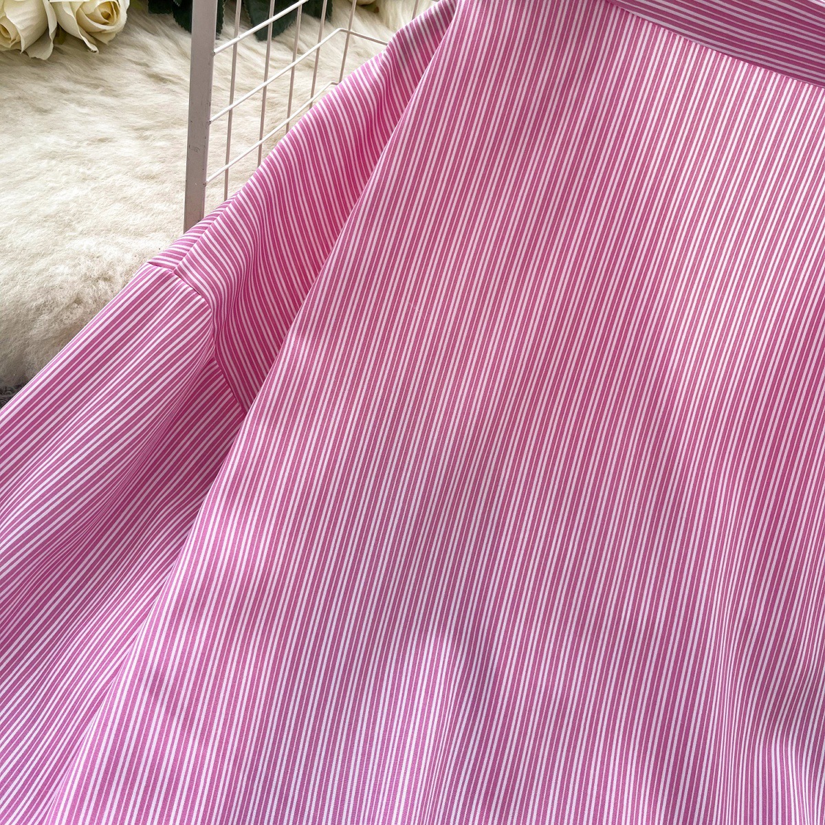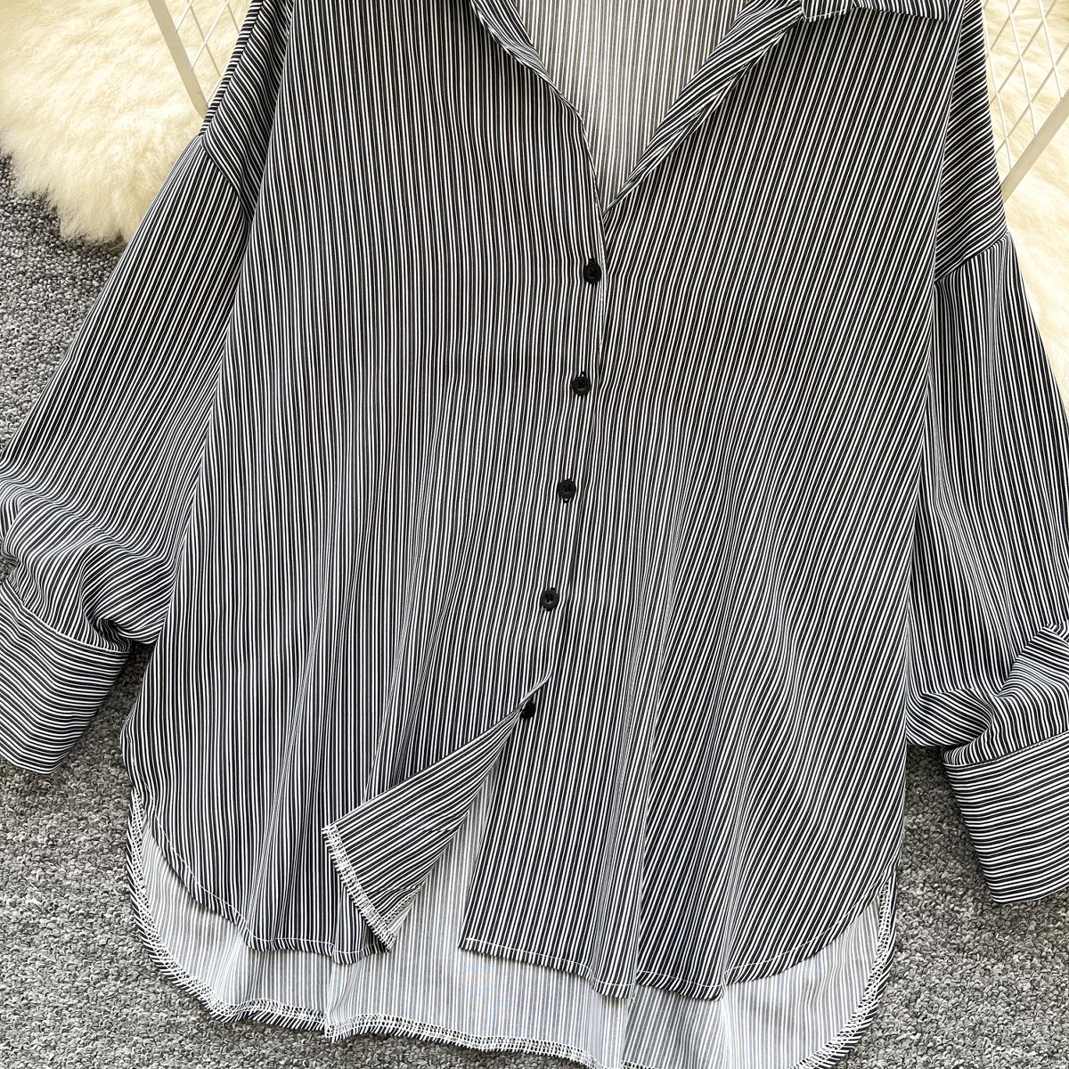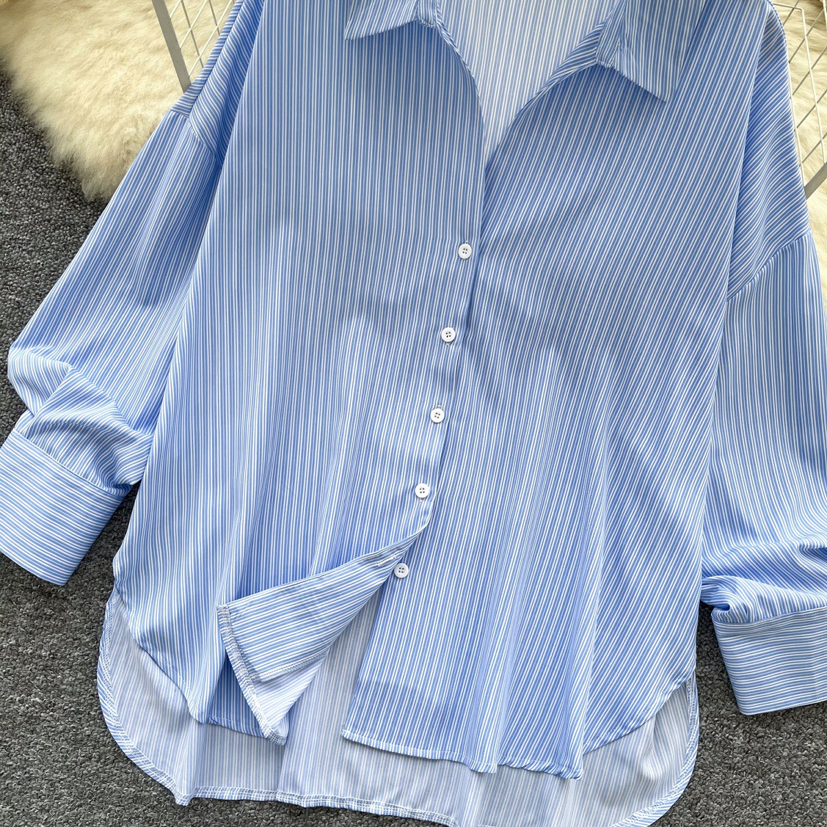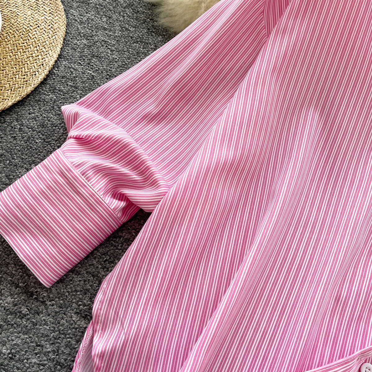가볍고 성숙한 여성 셔츠 2025 새로운 통근 다목적 옷깃 싱글 브레스트 카디건 스트라이프 셔츠 여성 캐주얼 탑