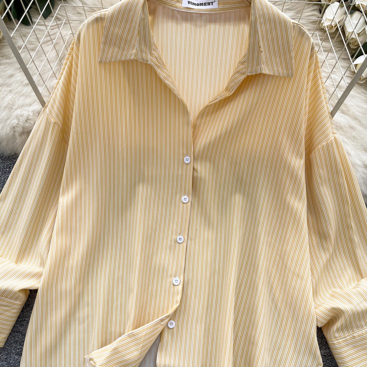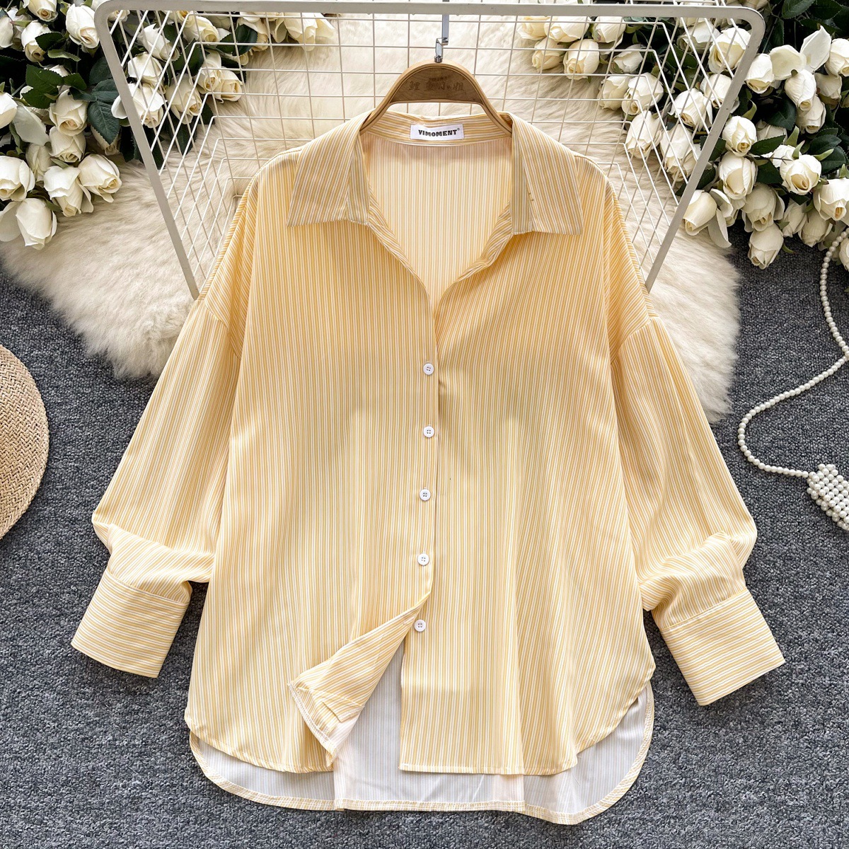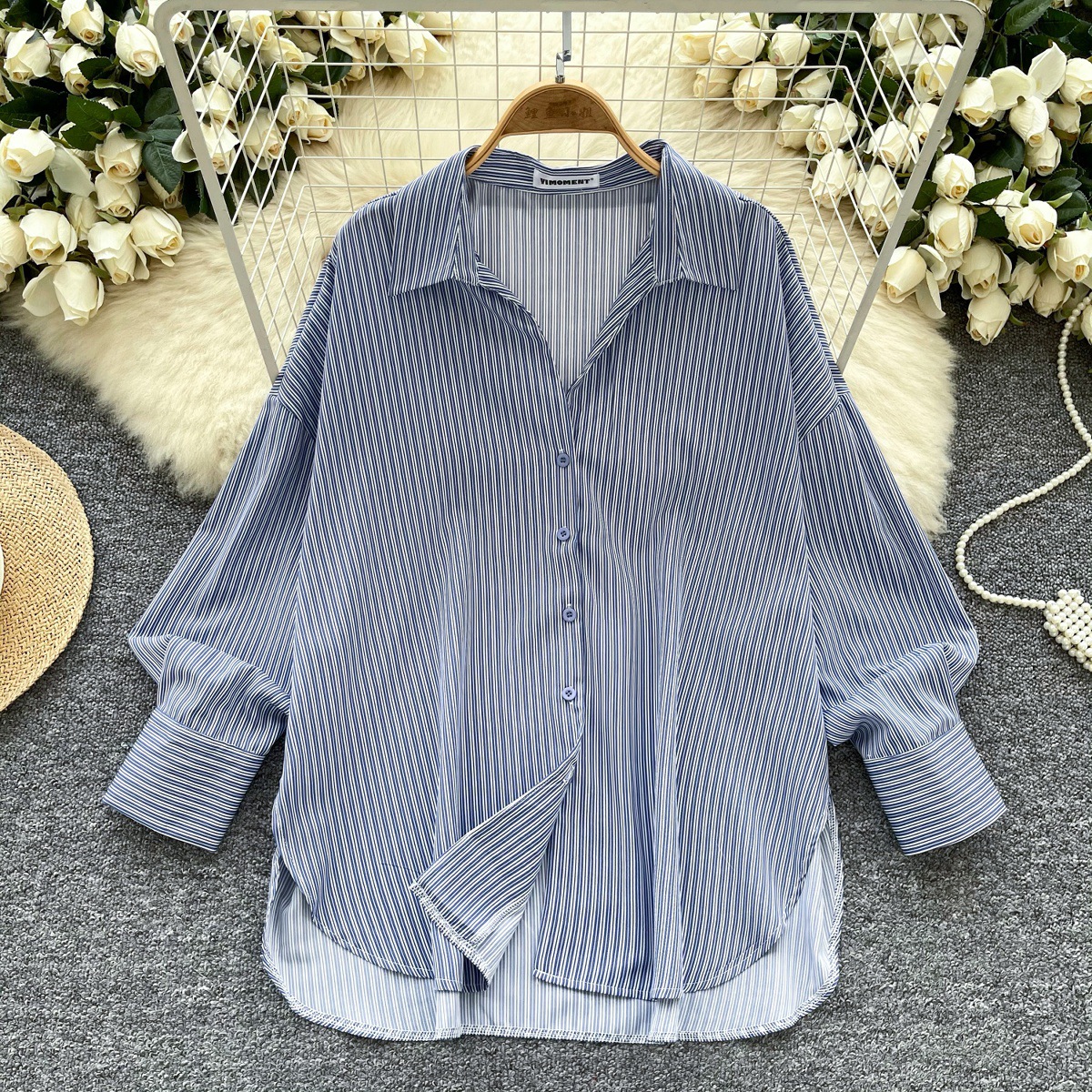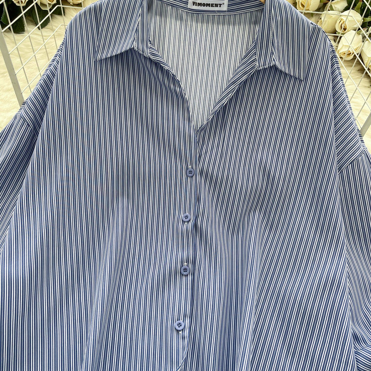 가볍고 성숙한 여성 셔츠 2025 새로운 통근 다목적 옷깃 싱글 브레스트 카디건 스트라이프 셔츠 여성 캐주얼 탑스토어 가기