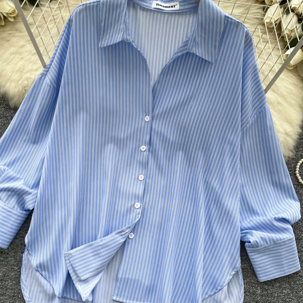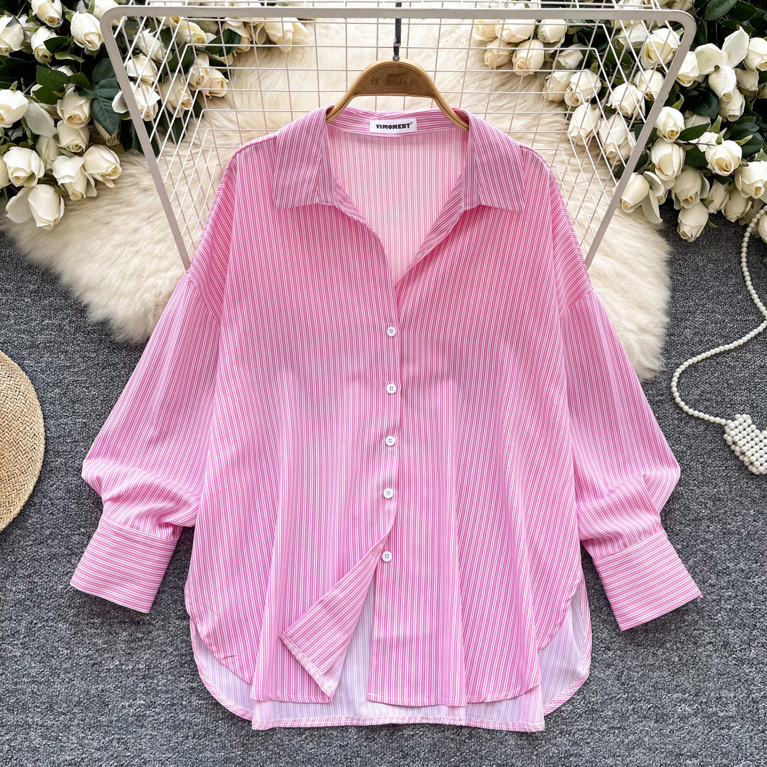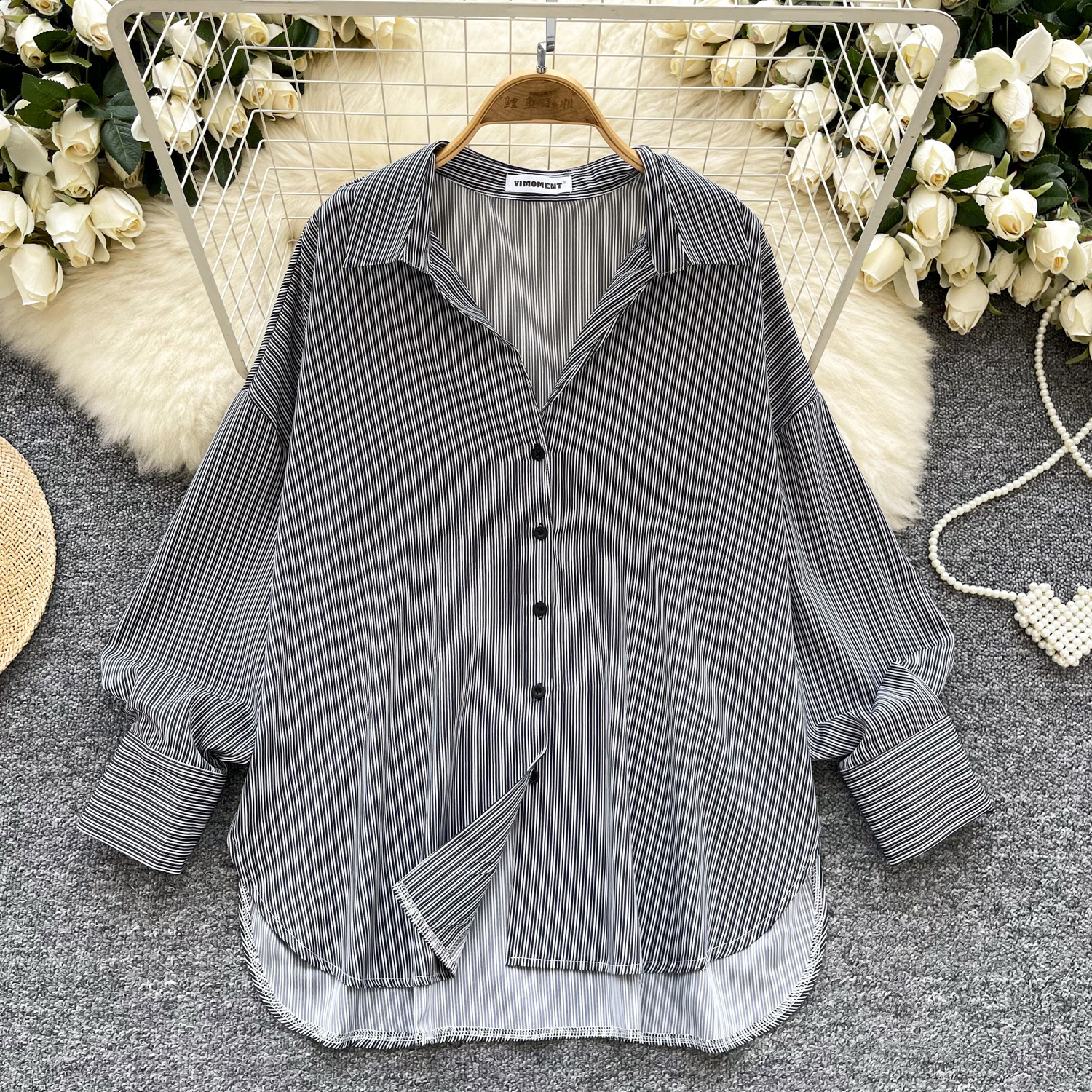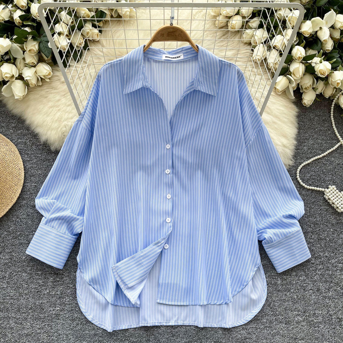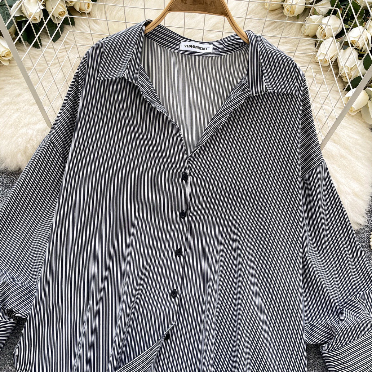 가볍고 성숙한 여성 셔츠 2025 새로운 통근 다목적 옷깃 싱글 브레스트 카디건 스트라이프 셔츠 여성 캐주얼 탑스토어 가기