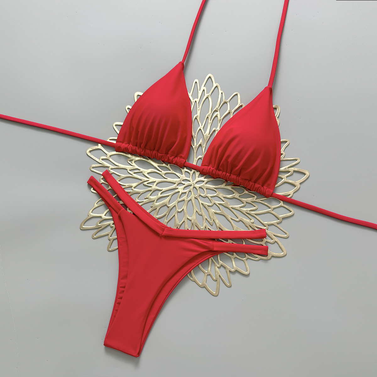 브라질 섹시 비키니 여성용 2026 신상 끈 묶는 홀터넥 삼각컵 비치 팬츠 솔리드 컬러 비키니스토어 가기