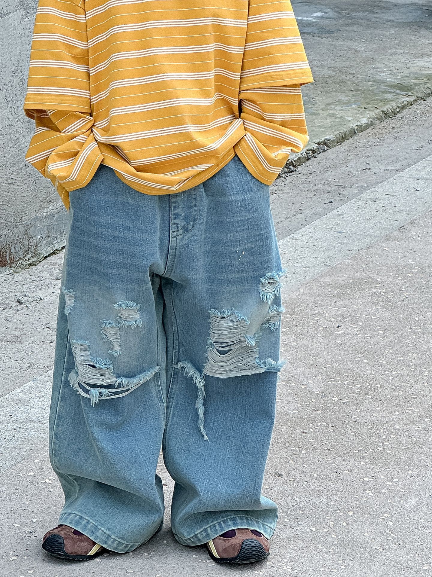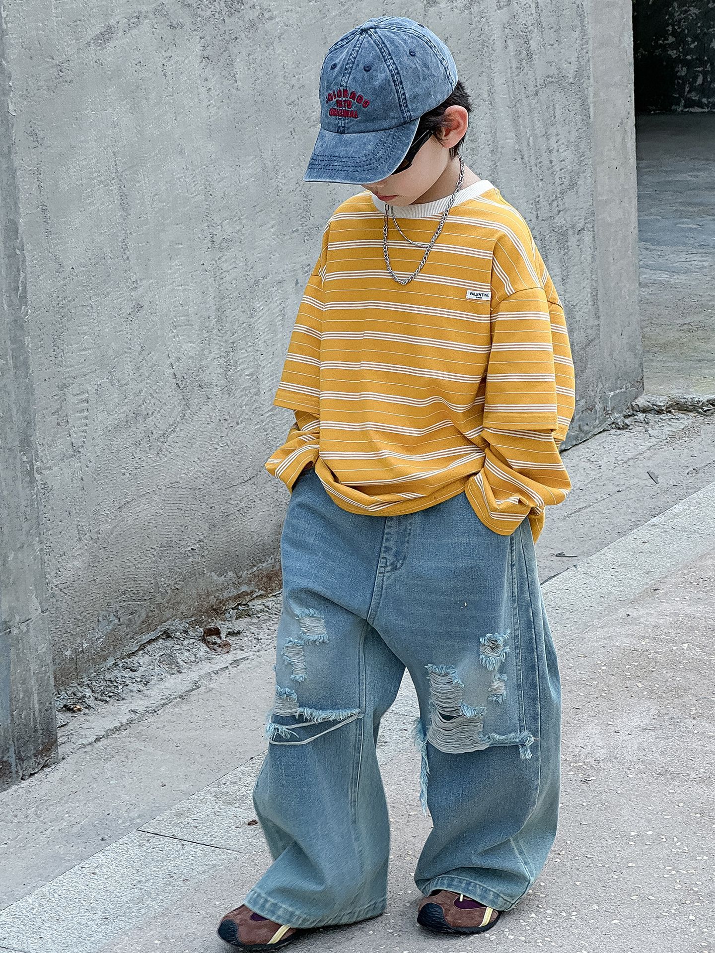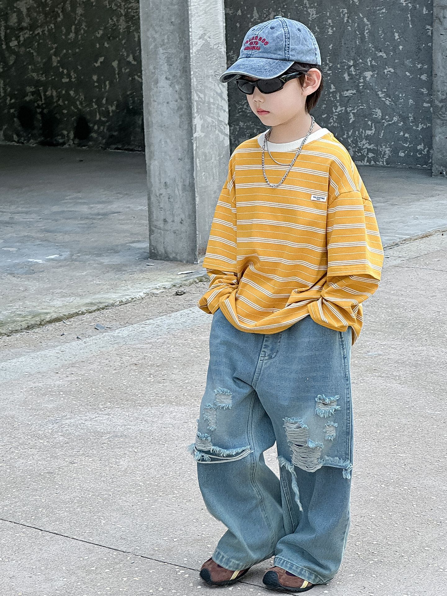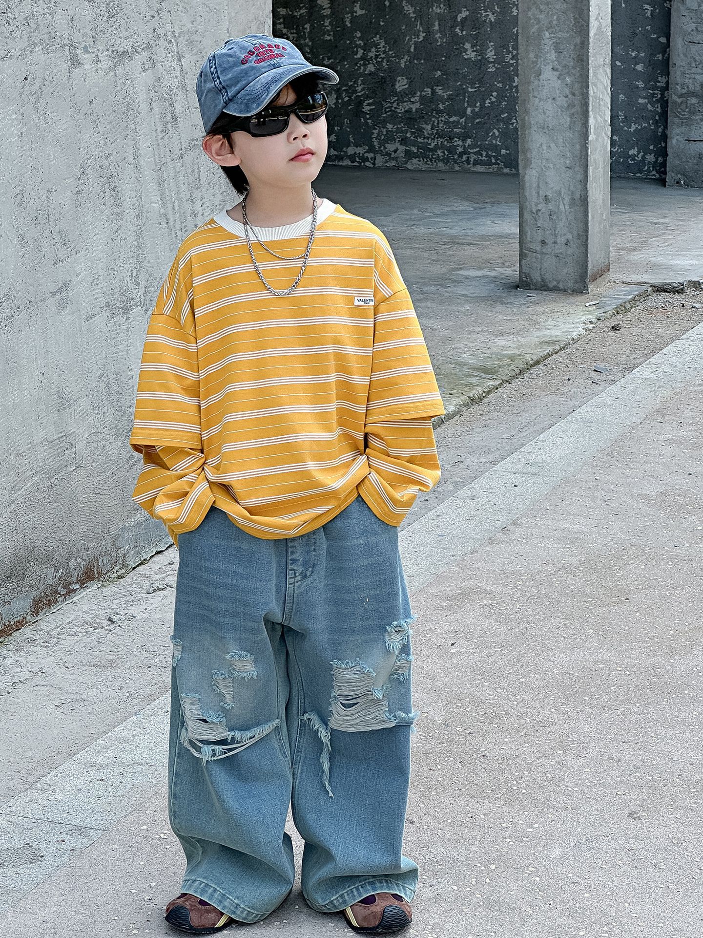 소년 가을 청바지 어린이 한국어 버전 2025 새로운 찢어진 소년 아기 아동복 유행 와이드 레그 팬츠 다용도