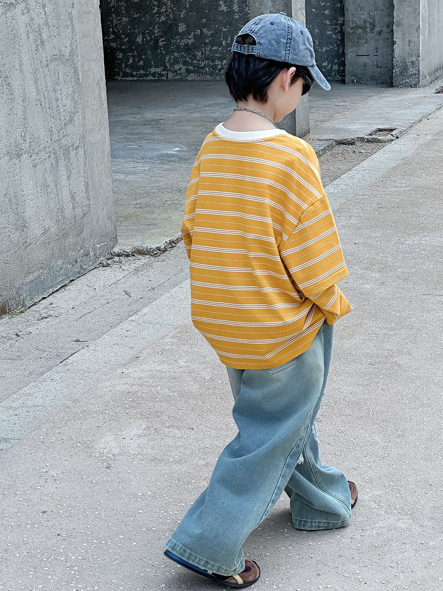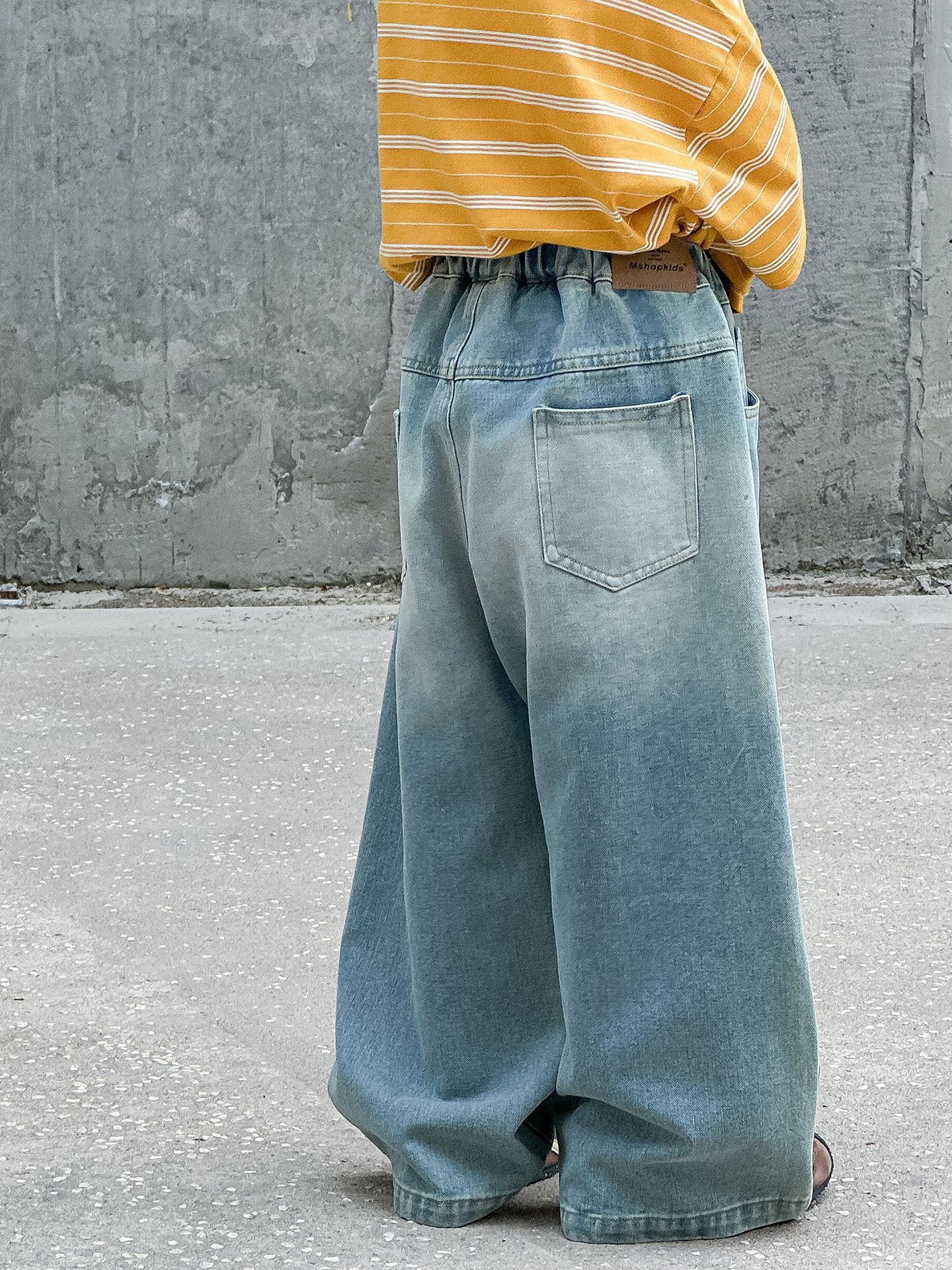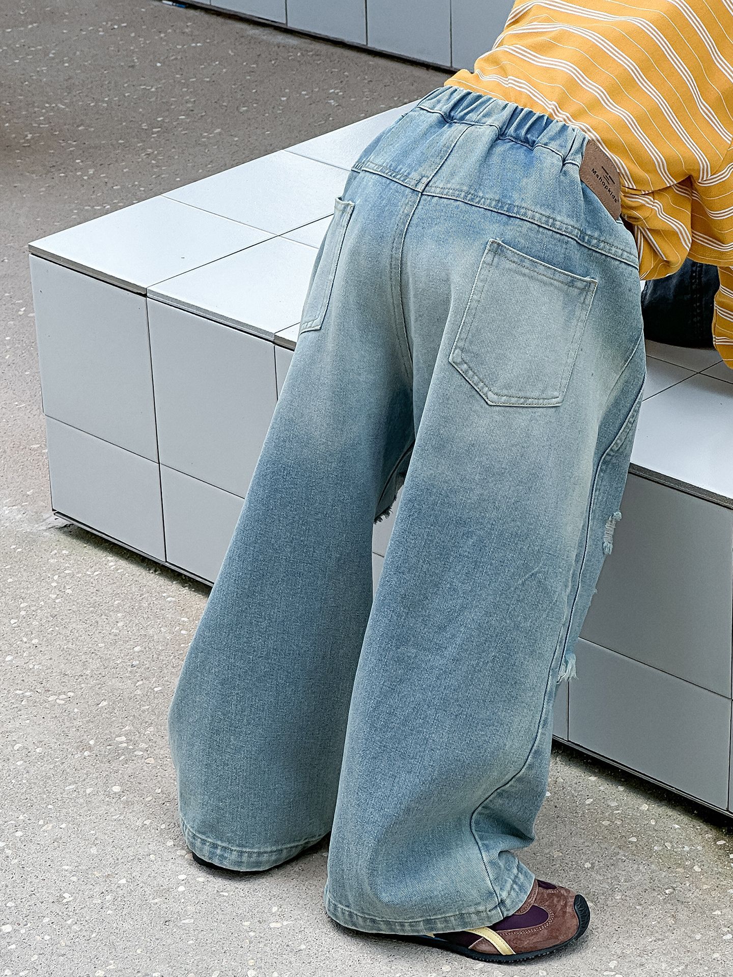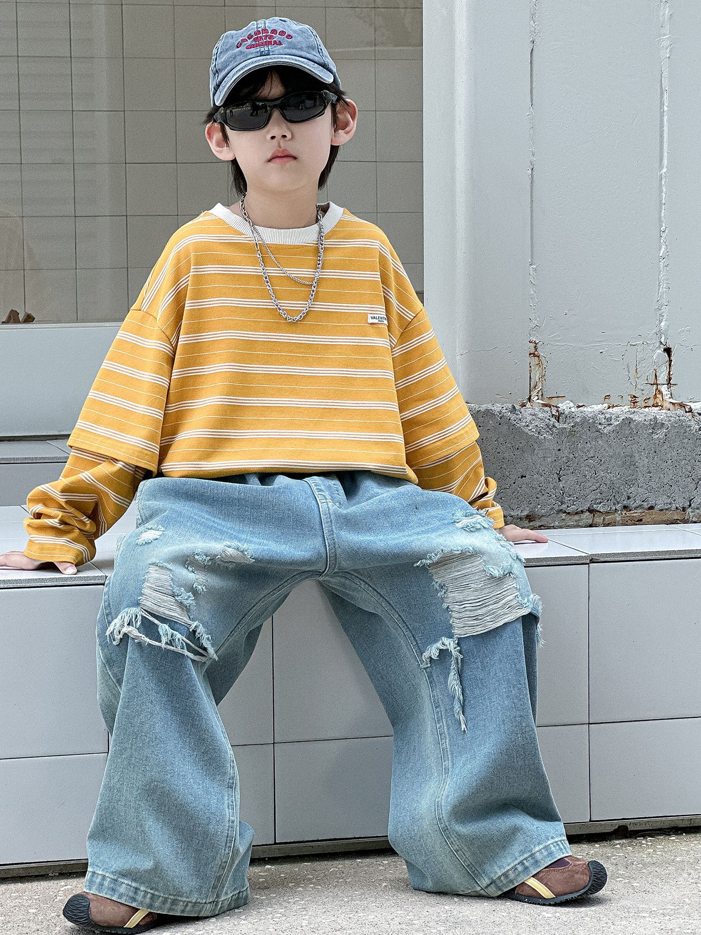 소년 가을 청바지 어린이 한국어 버전 2025 새로운 찢어진 소년 아기 아동복 유행 와이드 레그 팬츠 다용도스토어 가기