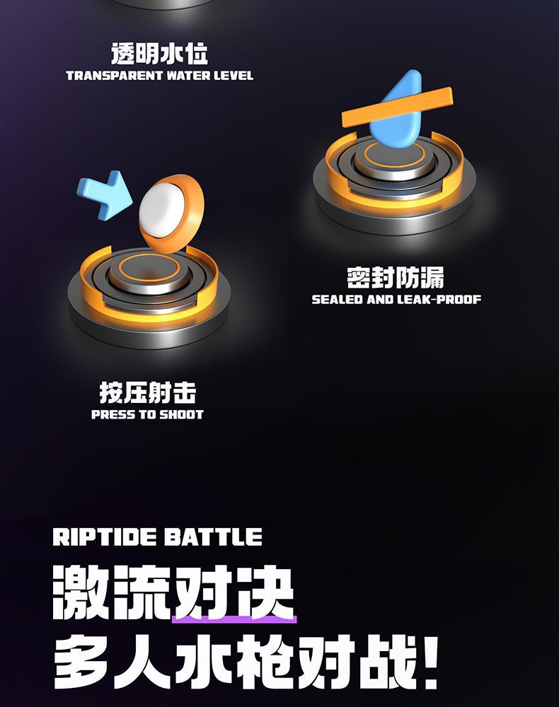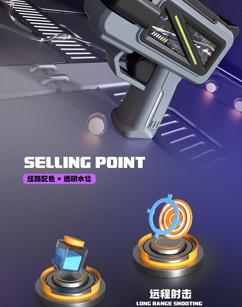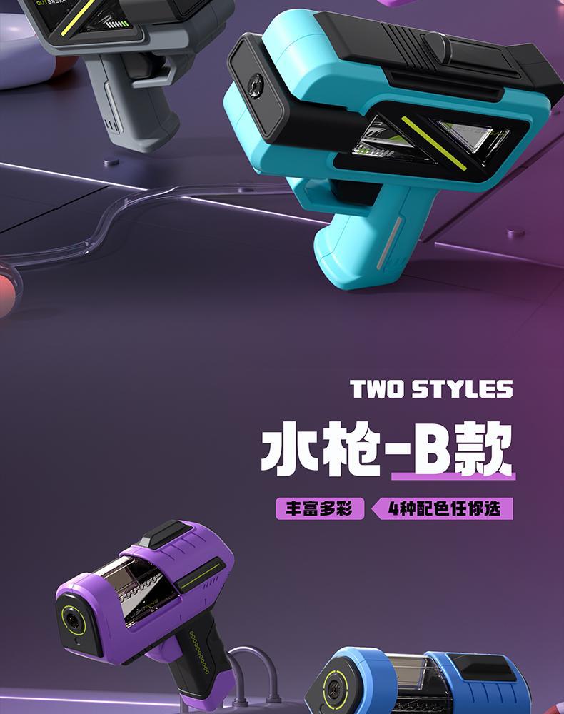 • 트렌디한 블랙 테크놀로지 물총 4개 [블루+그레이+그린+퍼플]