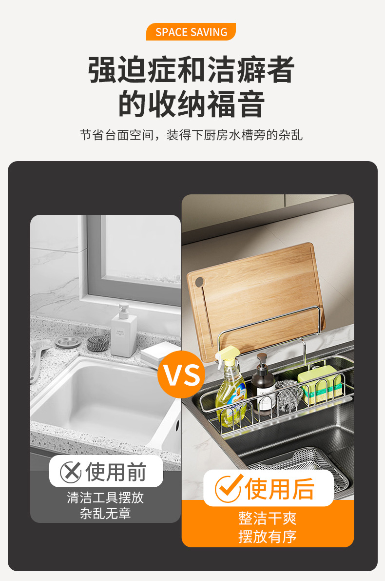 주방 배수 바구니 싱크대 스테인레스 스틸 행주 보관 벽걸이 형 펀치없는 보관 랙 스폰지 걸레 랙 걸이 바구니스토어 가기