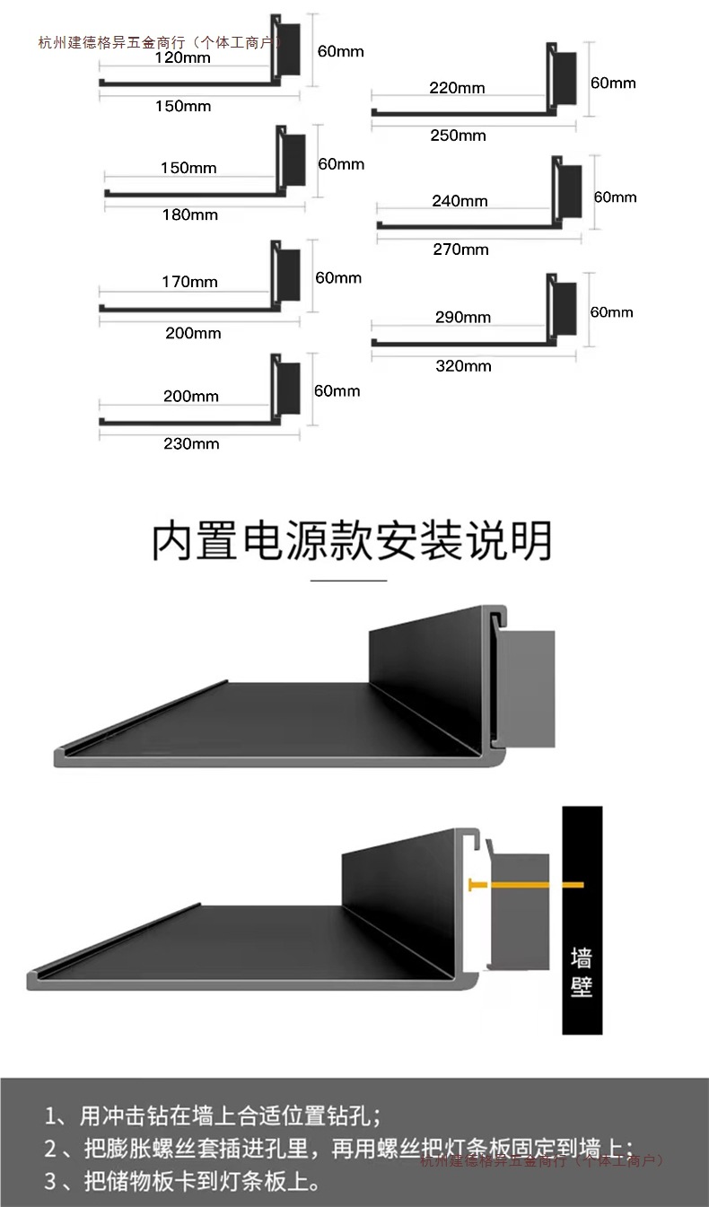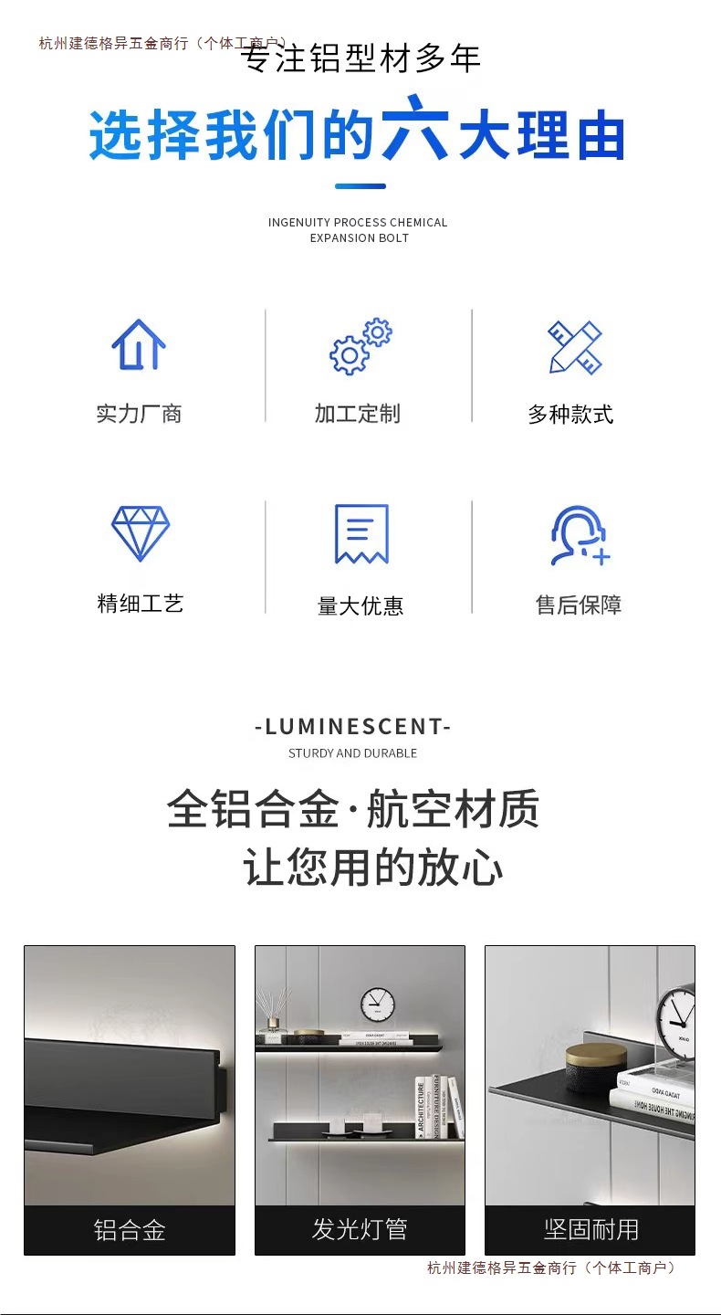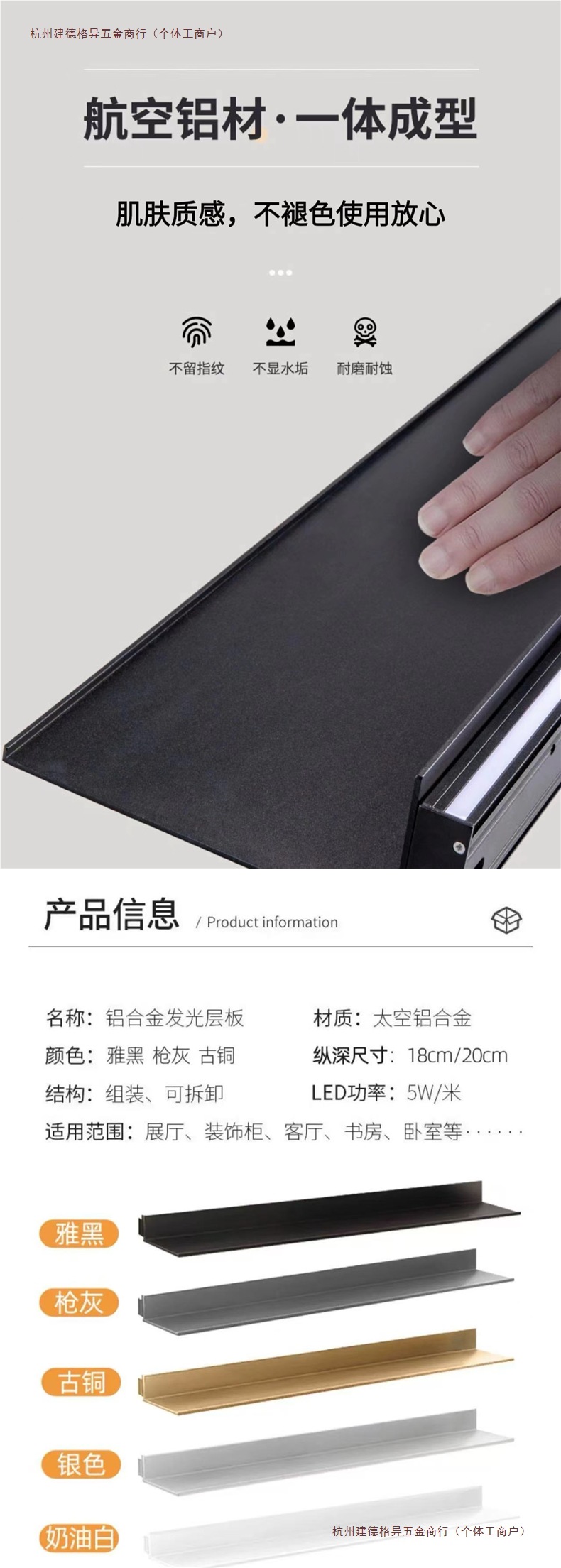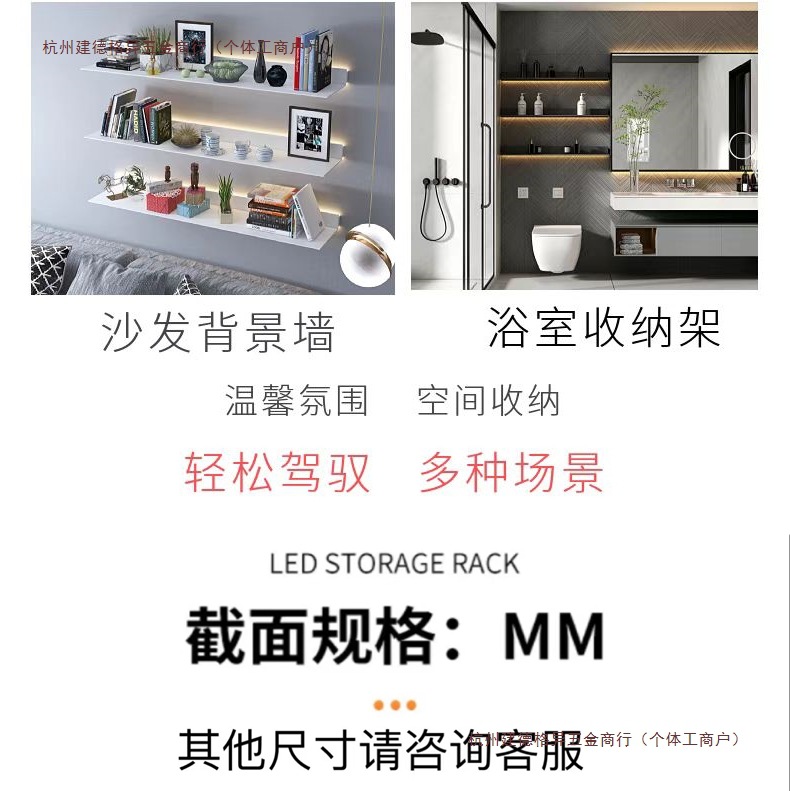 알루미늄 합금 발광 라미네이트 LED 선반 보관 벽걸이 형 디스플레이 L 자형 선반 책장 (조명 금속 파티션 포함)스토어 가기