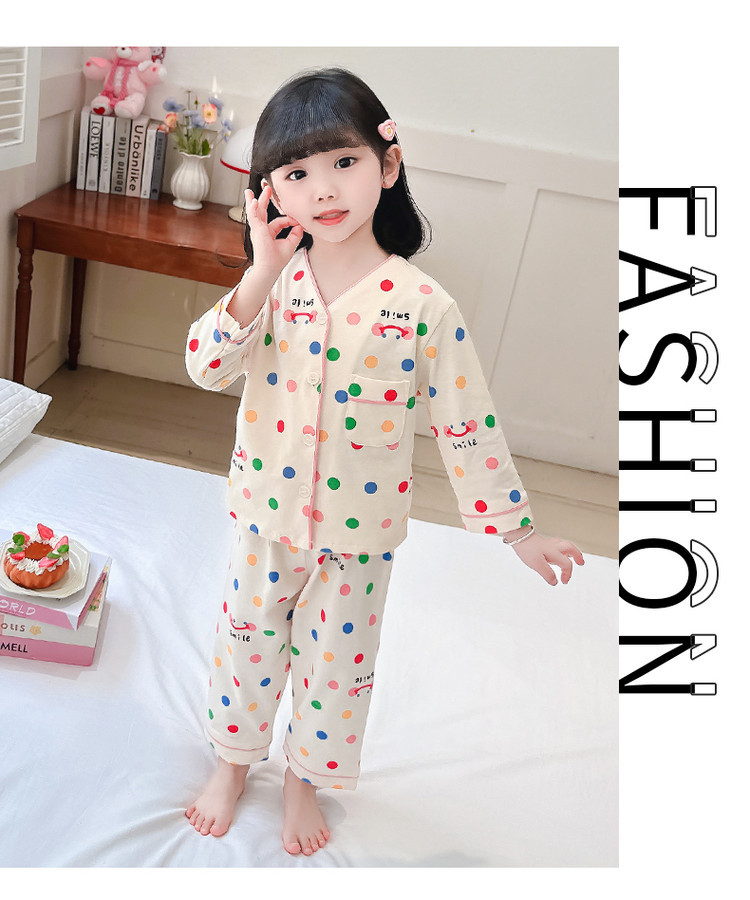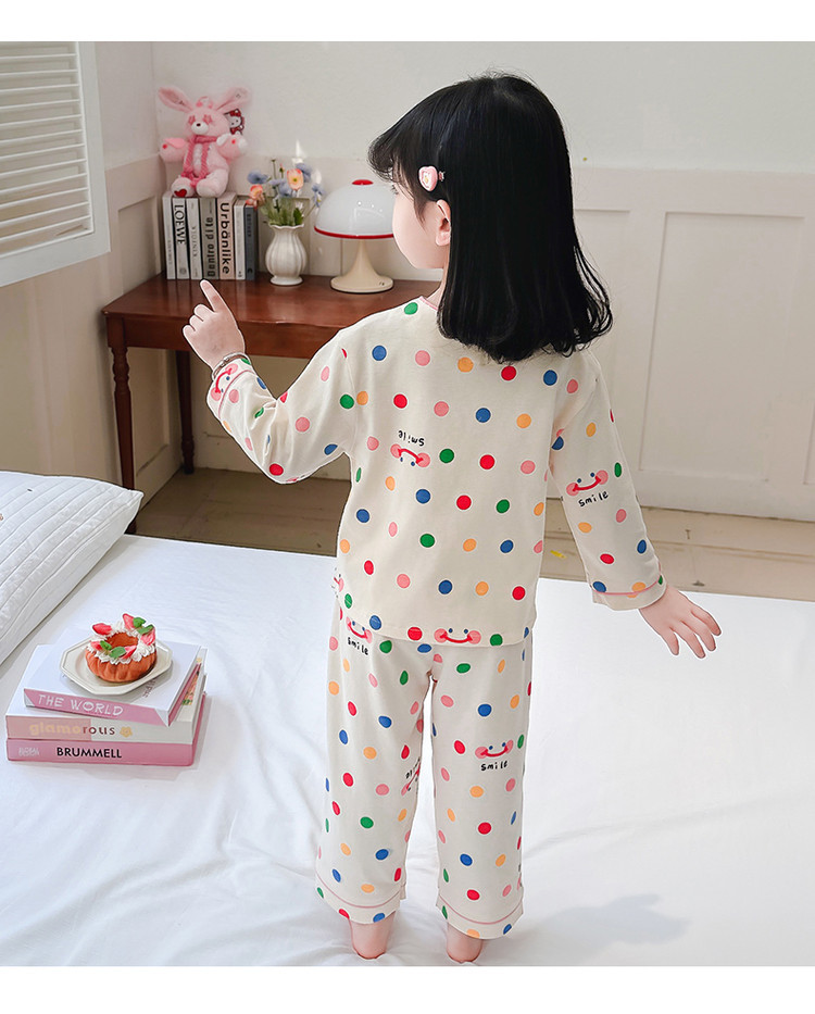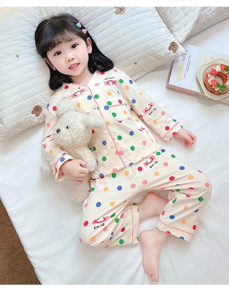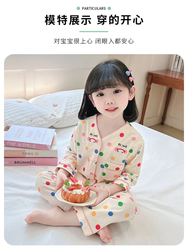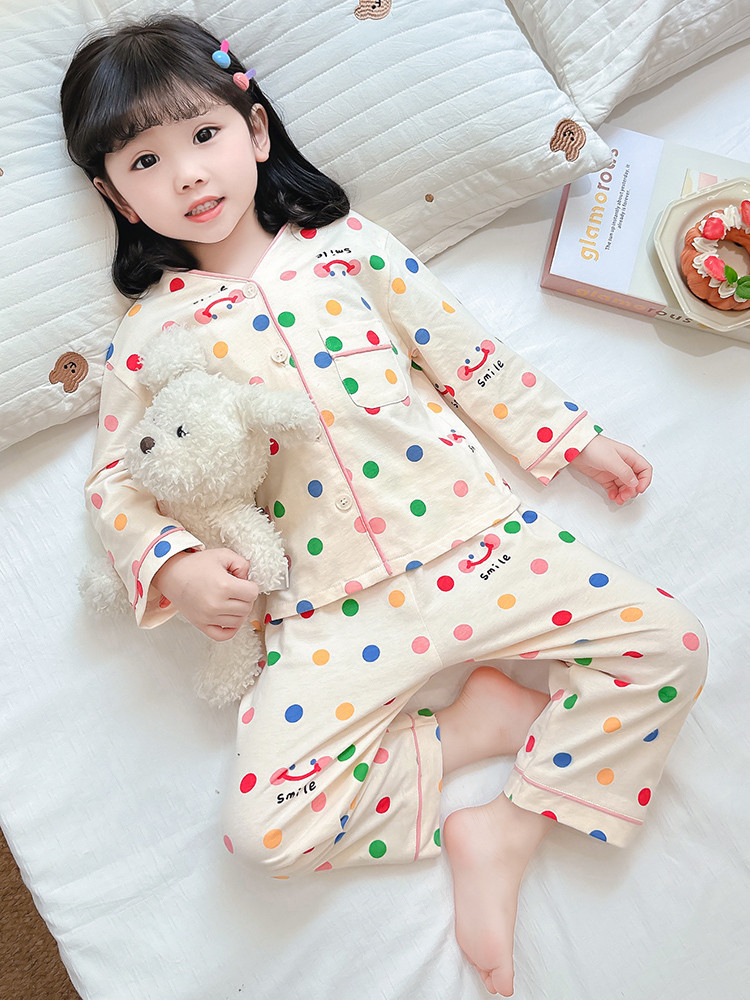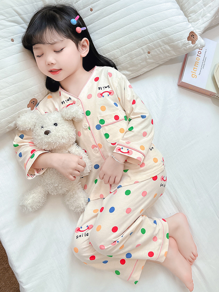 2025 어린이 잠옷 봄과 가을 다채로운 도트 아기 소녀 카디건 정장 가을 긴팔 에어컨 가정 의류스토어 가기